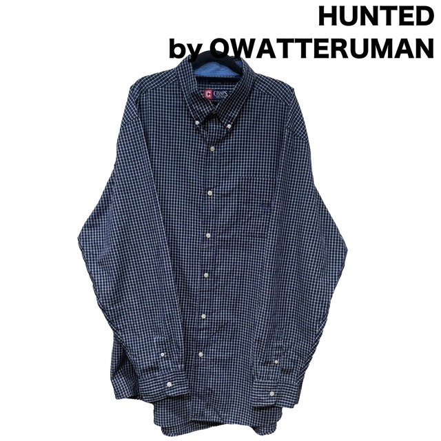 【サイズ】 - 肩幅: 57cm - 身幅: 70cm - 着丈: 93cm - 袖丈: 70cm 【カルチャー的背景】 ボタンダウン仕様のチェックシャツは、アメリカントラッドの延長線上でカジュアルに定着した定番アイテム。 今回の個体はタグに「EASY CARE」「60% COTTON 40% POLYESTER」「MADE IN BANGLADESH」の表記があり、量産期のケアしやすいコットン混紡シャツとして流通していたことが読み取れる。 胸ポケットのリース状刺繍など、プレッピー/トラッド寄りのディテールを取り入れつつ、ポリエステル混の素材選定でデイリーユースに落とし込んだモデルと言える。 タグ表記と生産国を根拠に、推定年代は00sとする。 【商品概要】 ・ブランド:CHAPS ・アイテム:ボタンダウン 長袖チェックシャツ(胸ポケット刺繍入り) ・カラー:ネイビー×ホワイト系チェック ・素材:60% Cotton / 40% Polyester ・生産国:Bangladesh ・サイズ表記:2XT/2TGL ・推定年代:00s(推定) 【シャツとしての特徴】 ゆとりのあるオーバーサイズ寄りのサイジングで、肩幅57cm・身幅70cm・着丈93cmという実寸はレイヤード主体の着方に向く作り。 生地はコットン寄りの混紡で、張り過ぎない目付きと薄手〜中肉の厚み感があるためシャツジャケット感覚でも使える。 ボタンダウンカラーと胸ポケットのリース刺繍がプレッピーな印象を与えつつ、ポリエステル混紡による形崩れしにくさとアイロン負担の軽さが日常使いに適している。 裾はラウンドでシャツイン/アウトどちらでも合わせやすい仕様。 【オワッテルマンのおすすめポイント】 ・ボタンダウンでカジュアルにもキレイめにも振れる ・胸の刺繍がさりげないアクセント ・ポリ混で扱いが楽、デイリーでガシガシ使える ・オーバーサイズ気味でレイヤードに最適 ・ネイビー系チェックで着回しの幅が広い 【注記】 ・こちらはオンライン限定販売です。オワッテルマン実店舗では購入出来ませんのでご注意ください。 ・発送は火水金がメインです。ご購入のタイミングによっては4日ほど発送まで時間が空く場合がありますのでご了承のほどよろしくお願いします。