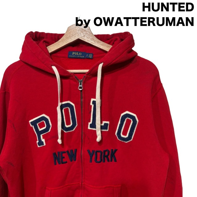 【サイズ】 - 肩幅 49cm - 身幅 54cm - 着丈 63cm - 袖丈 63cm 【カルチャー的背景】 胸元に大きく配したフェルト/シェニールのアプライドロゴと下段のNEW YORK刺繍が特徴の一着。 タグはネイビー地にイエローの"POLO RALPH LAUREN"表記、サイドにS/Pのサイズ表記と"MADE IN VIETNAM"が確認でき、金属ジップ+裏起毛スウェットの作りから2000年代前後の量産ラインの一枚と推定できます。 デザインは大学のカレッジウェアやアメカジの定番を踏襲しており、プレッピーとストリートの境目で着られてきたプロダクトです(推定の根拠:タグ仕様と生産国、縫製仕様)。 【商品概要】 ・ブランド:POLO RALPH LAUREN ・アイテム:フルジップパーカー(アプライドロゴ) ・カラー:レッド(胸ロゴ:ネイビー×生成り) ・素材:裏起毛スウェット(コットン系と推定) ・生産国:ベトナム製 ・サイズ表記:S / P ・推定年代:00s(タグの仕様・生産国・縫製からの推定) 【パーカーとしての特徴】 ややショルダーの落ちるリラックス寄りのシルエットで、ボディは裏起毛のスウェット生地。胸のPOLOのアプライドは厚手のフェルト/シェニールで立体感があり、単体でのアクセント力が高いです。 フルジップ+フード+ドローコードの標準的な作りで着脱は楽、スウェットならではの柔らかさでタウンユースに馴染みます。 経年による色褪せと毛羽立ち、特にロゴの縁やリブに使用感あり。写真で確認できる通り、袖口や胸周り、身頃に黒いインク/ペン跡、点状のシミ、リブに丸い跡などのダメージが複数あり、状態はユーズド寄りです。 ジップは金属製で動作は概ね良好ですが、全体的に「味」が出た個体とご理解ください。 【オワッテルマンのおすすめポイント】 ・赤ボディに大判POLOロゴで一枚で存在感が出る ・カレッジ/プレッピーテイストをそのまま使えるデザイン ・裏起毛で秋〜春先のライトアウター代わりに便利 ・小さめサイズで女性や細身の人にはちょうど良いフィット感 ・汚れやペン跡を味として活かすスタイルにも向く 【注記】 ・こちらはオンライン限定販売です。オワッテルマン実店舗では購入出来ませんのでご注意ください。 ・発送は火水金がメインです。ご購入のタイミングによっては4日ほど発送まで時間が空く場合がありますのでご了承のほどよろしくお願いします。