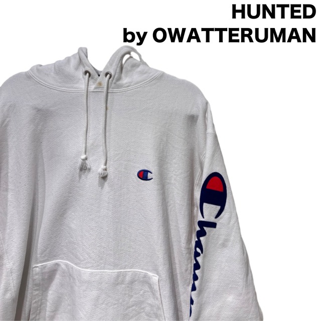 【サイズ】 L - 肩幅 58cm - 身幅 66cm - 着丈 68cm - 袖丈 70cm 【カルチャー的背景】 Championの定番構造である「REVERSE WEAVE(リバースウィーブ)」は、横縮みを抑えるための縦使いの生地方向や肉厚なボディが特徴で、アスレチックウェアからストリートまで幅広く受け継がれてきたモデルです。今回の個体はタグに「REVERSE WEAVE」「MADE IN HONDURAS」「82%COTTON/18%POLYESTER」の表記があり、工場生産期の量産ラインで作られたロット(2000年代以降の生産と推定)に当たることが読み取れます。両袖に大きく入ったChampionのスクリプトプリントと伝統的なCロゴ刺繍の併用は、ストリート/スポーツミックスの着こなしと相性が良いディテールです。 【商品概要】 ・ブランド:Champion ・アイテム:リバースウィーブ プルオーバーパーカー(両袖ロゴ) ・カラー:ホワイト(白) ・素材:表記あり 82% Cotton / 18% Polyester ・生産国:Made in Honduras(タグ表記) ・サイズ表記:L(タグ表記) ・推定年代:00s(タグ・生産国・素材表記より推定) 【パーカーとしての特徴】 リバースウィーブらしい肉厚でしっかりとした生地感、肩が落ちるゆったりシルエットでゆるく着られる一着です。フード紐は太めの丸紐でハトメ付き、カンガルーポケット、リブの袖口と裾でしっかりとした作り。胸の小さなC刺繍と両袖に入る大きなChampionロゴプリントがアイキャッチになり、シンプルな白ボディでも存在感が出ます。コンディションとして、フード紐付近とポケット周辺に茶色い点状のシミが複数確認できること(写真参照)、生地表面の毛羽立ちや小さなネップが見られることを確認しています。プリント・刺繍部分に大きな剥がれや破れは見られません。 【オワッテルマンのおすすめポイント】 ・リバースウィーブ特有の肉厚ボディで季節の変わり目に頼れる一着 ・両袖の大きなChampionロゴで着ただけでストリート感が出る ・白ベースなのでインナーやアウターとのレイヤードが組みやすい ・ゆったりしたシルエットでルーズな着こなしにぴったり ・胸の小さなC刺繍でブランドらしさを小技で効かせている 【注記】 ・こちらはオンライン限定販売です。オワッテルマン実店舗では購入出来ませんのでご注意ください。 ・発送は火水金がメインです。ご購入のタイミングによっては4日ほど発送まで時間が空く場合がありますのでご了承のほどよろしくお願いします。