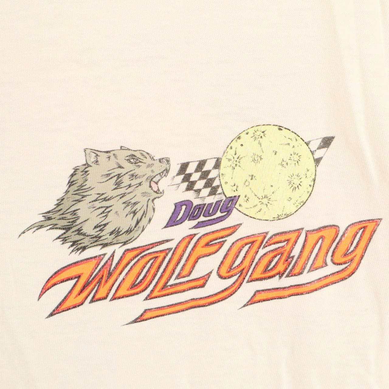 Doug Wolfgangは1970〜90年代にかけてスプリントカー界で一時代を築いた名ドライバー。Knoxville Nationalsにおいて5回の優勝を記録しており、このTシャツはそれぞれの優勝マシンを年号とともに紹介する豪華な構成。アメリカ中西部の地方レース文化の象徴とも言える存在で、地元ファンからは"Wolf"の愛称で親しまれた。