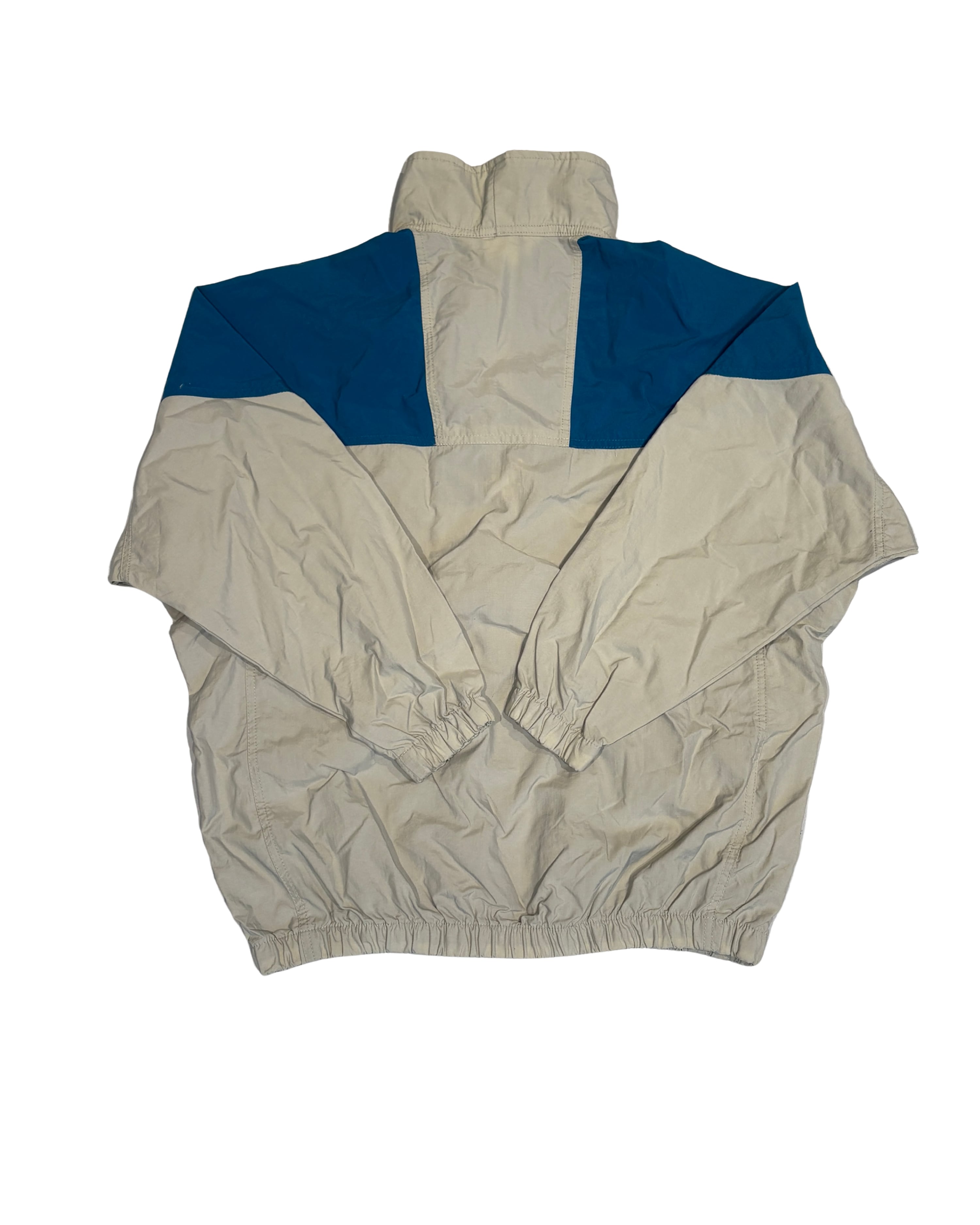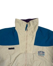→ フルジップ仕様、スタンドカラー、裾・袖口ゴム入りの軽量ナイロンジャケット。防風性を意識した作りで、90年代らしい配色切り替えとシンプルな機能構成。