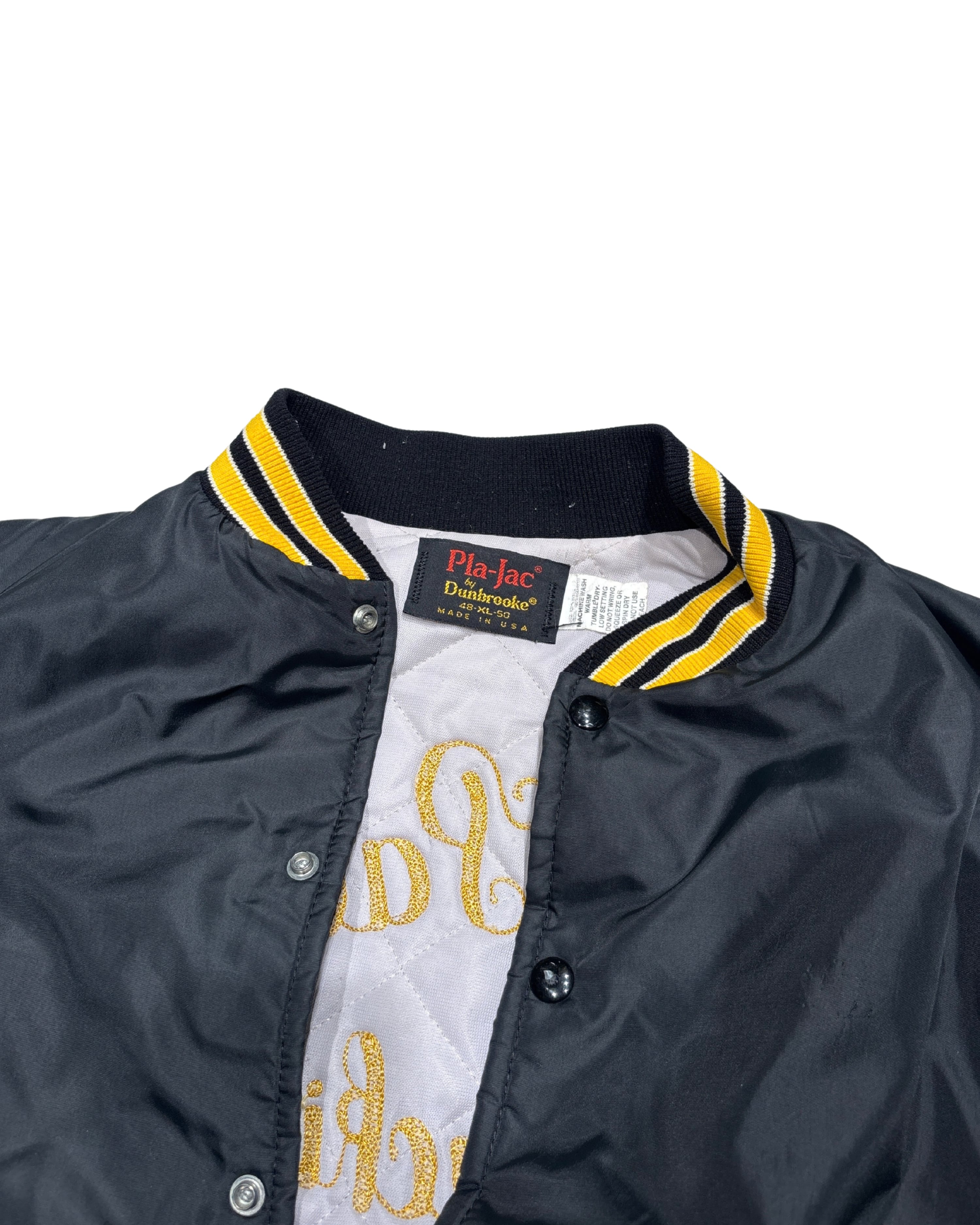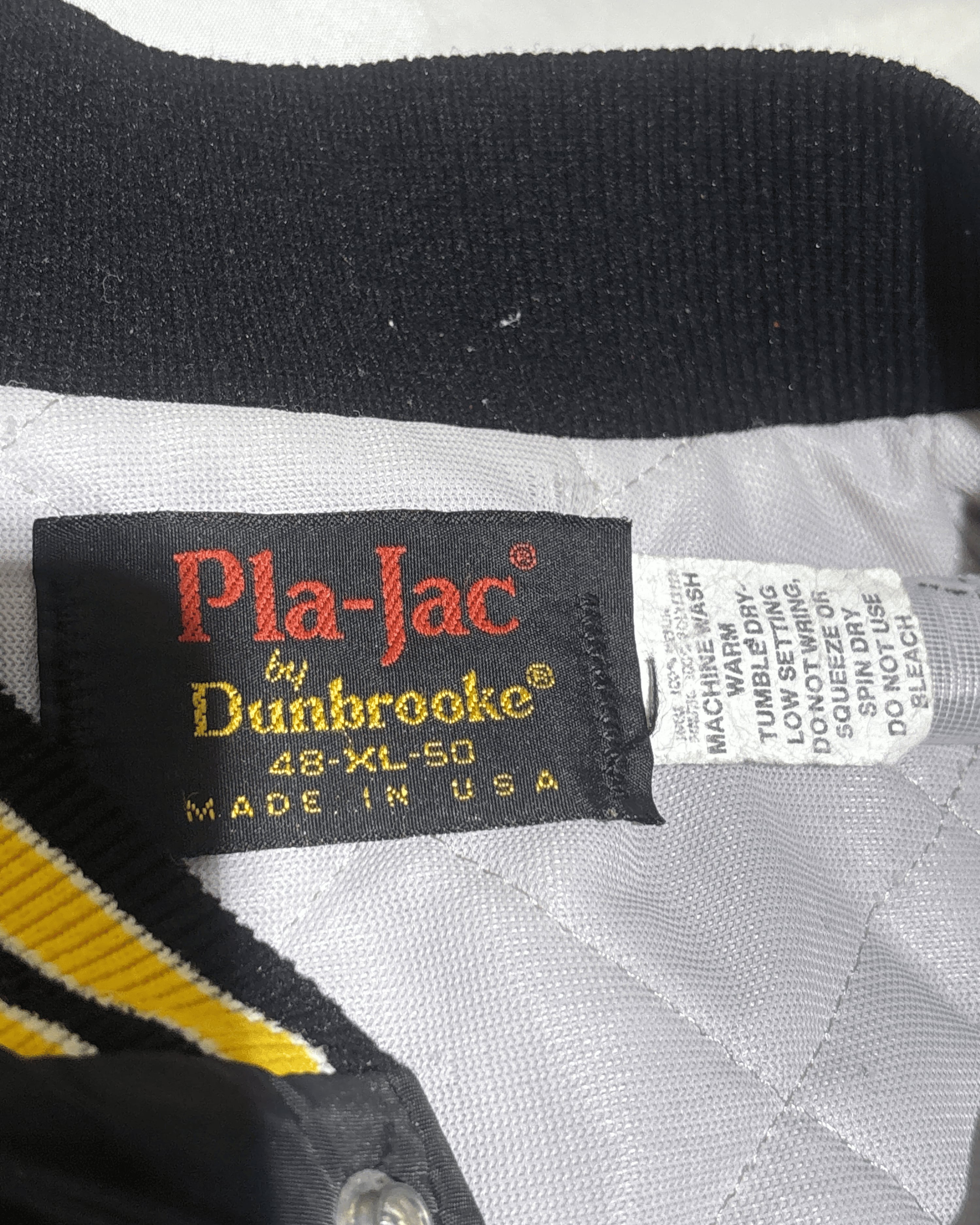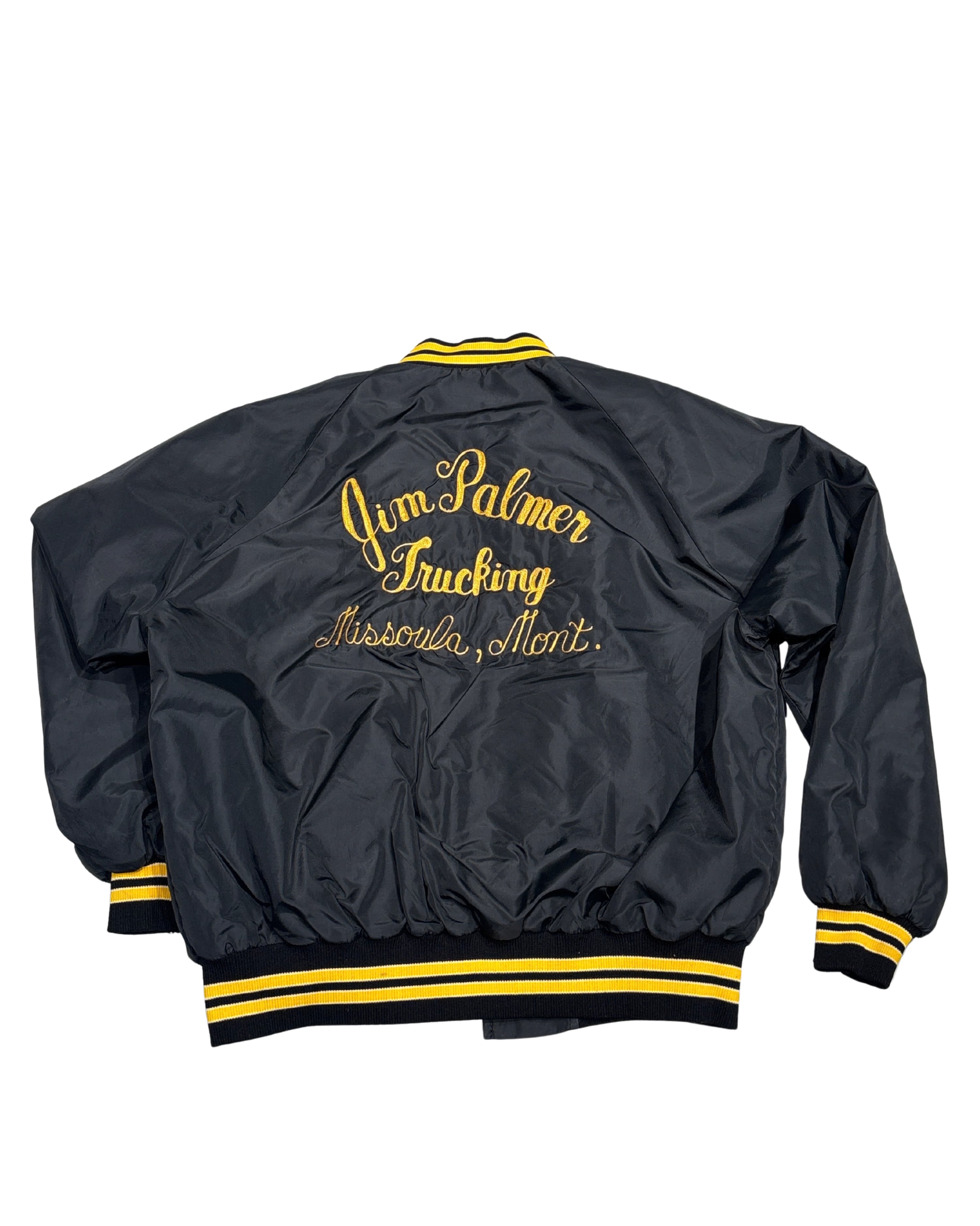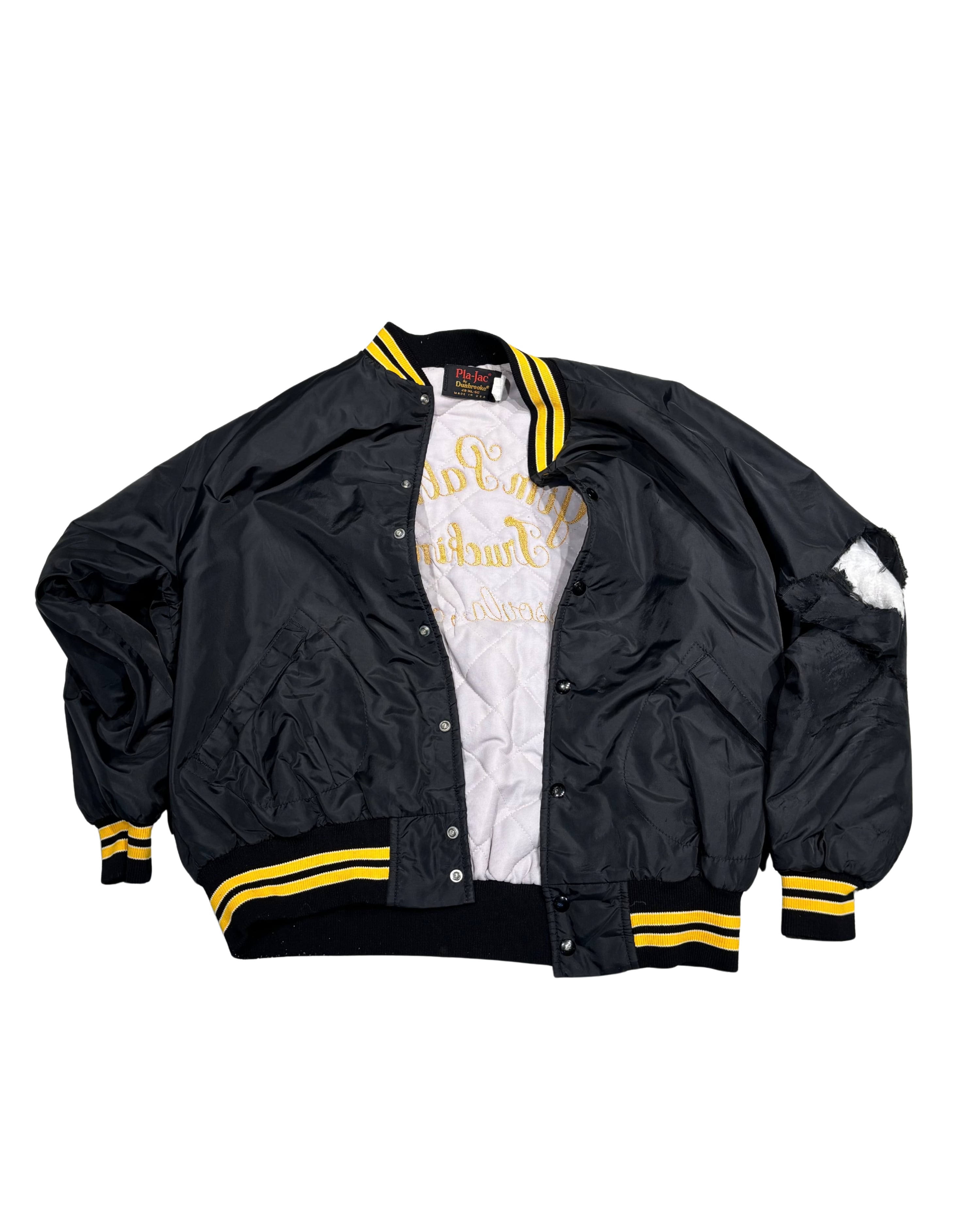 → Pla-Jacはアメリカのワーク・スポーツ向けアウターを多く手掛けていたブランド。本個体はトラッキング系企業名の刺繍が入った、当時のユニフォーム用途を想定したスタジアムジャケット。