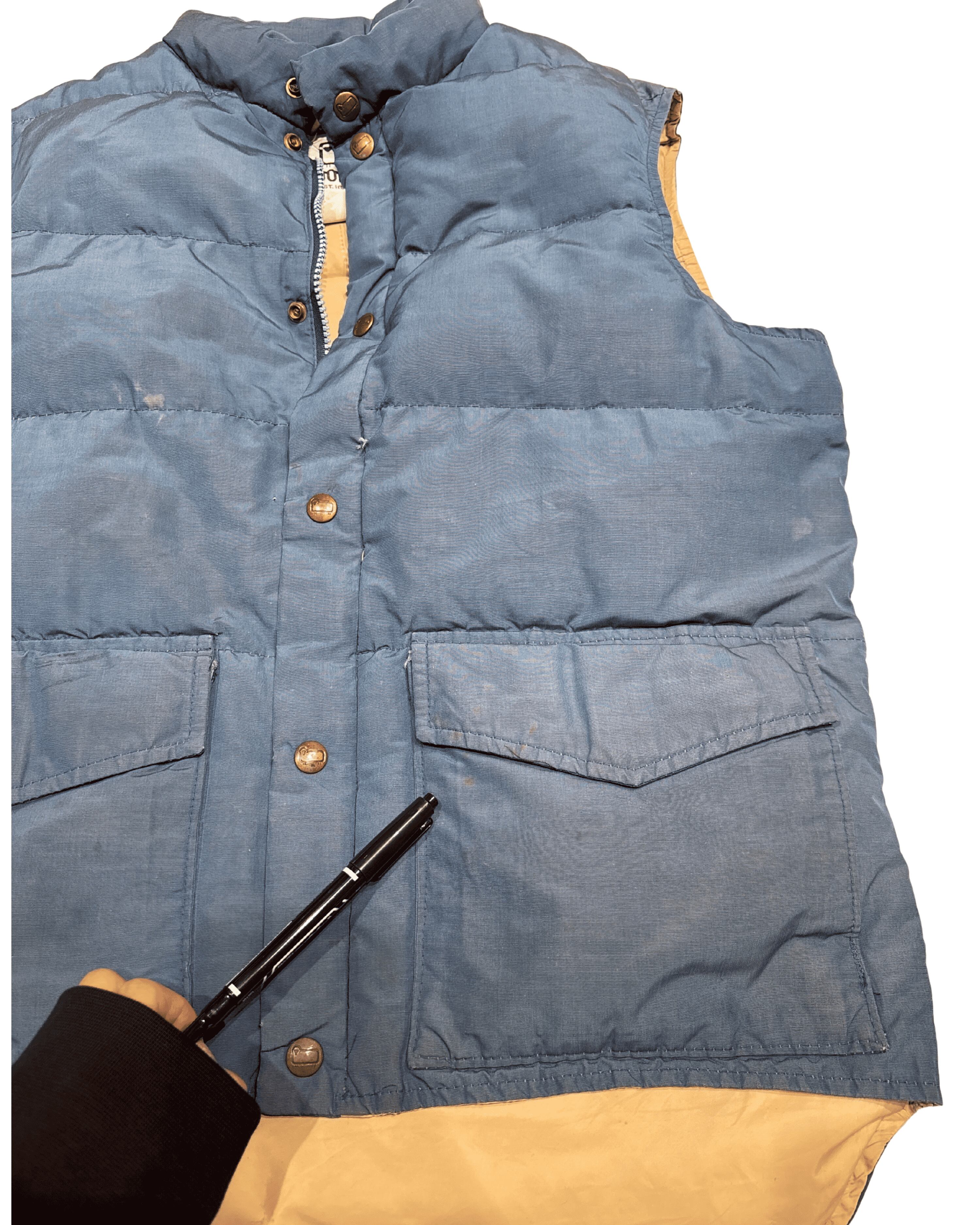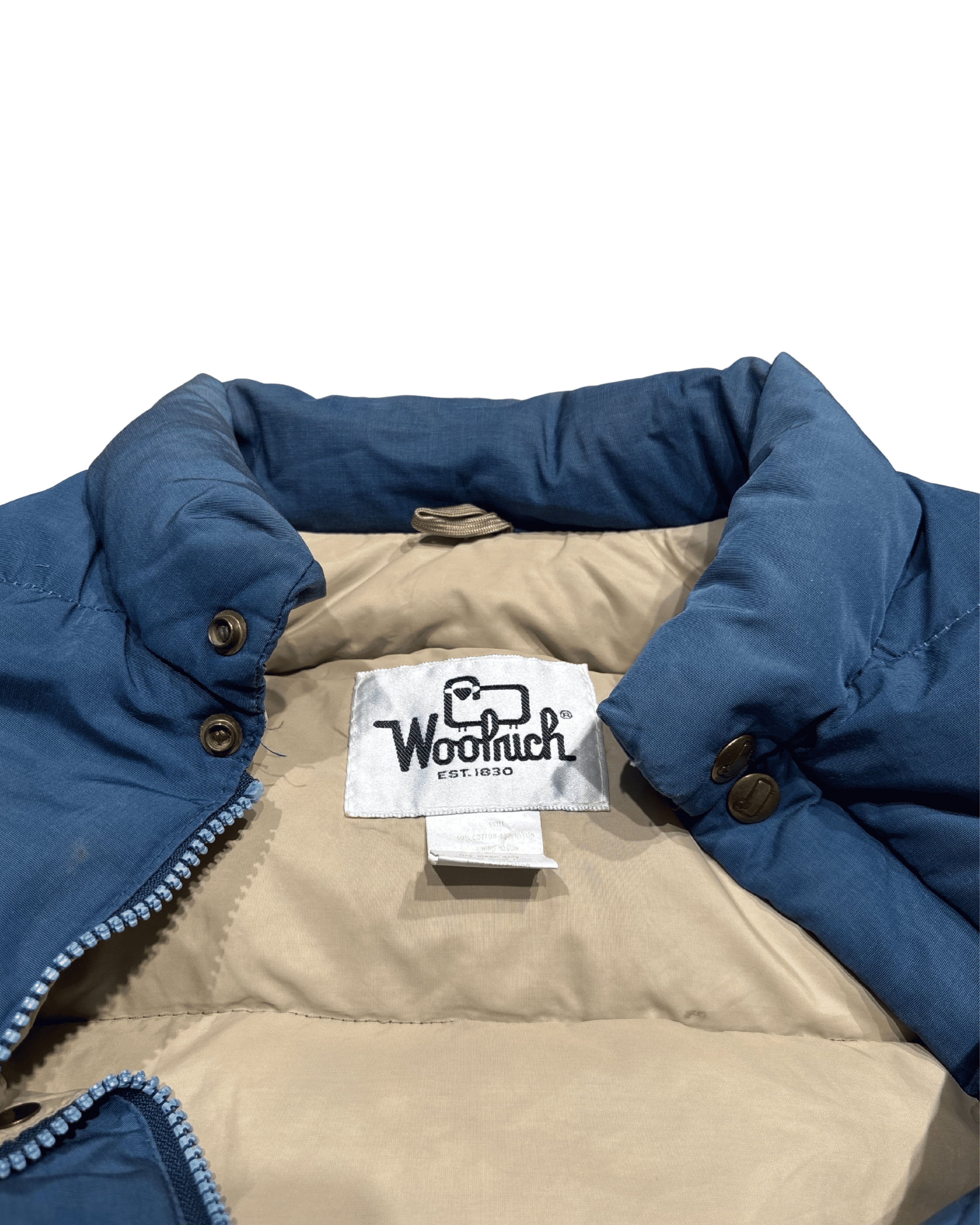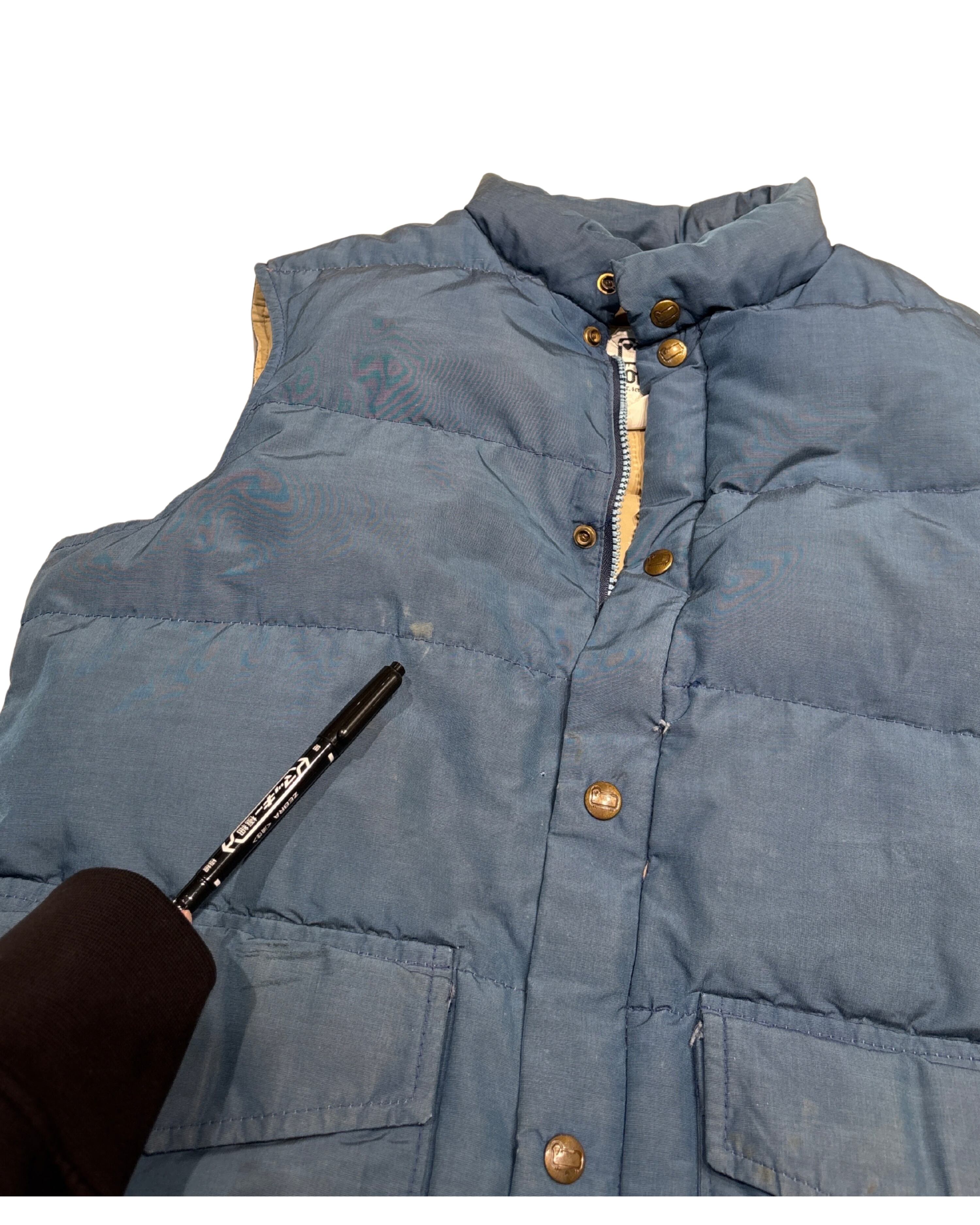 → Woolrichはアメリカのアウトドア・ワークウェア文脈を代表するブランド。本個体は中綿入りのダウンベストで、防寒性と動きやすさを両立するためのレイヤリング用アイテムとして使われてきたタイプ。