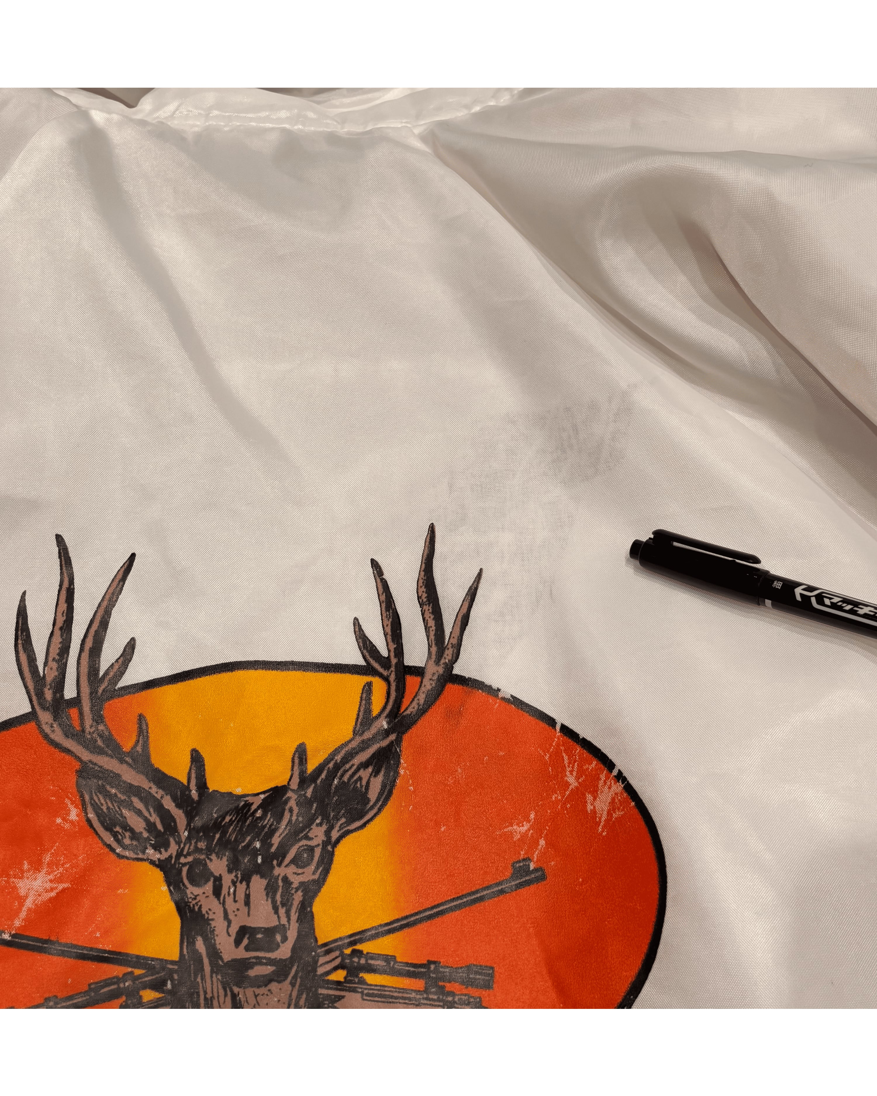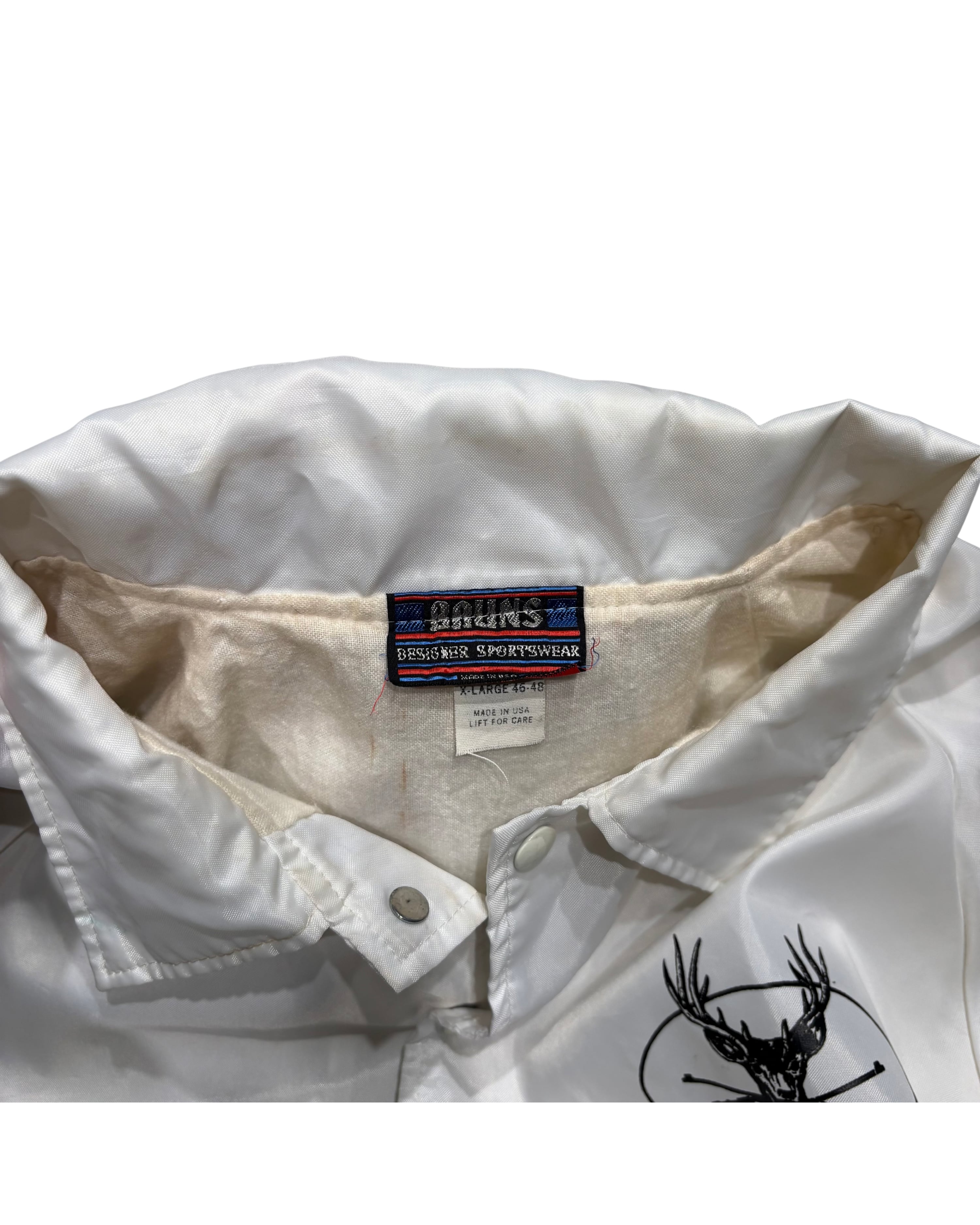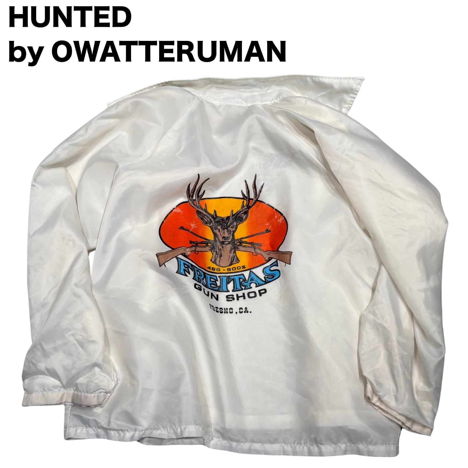 → アメリカのローカルガンショップ「FREITAS GUN SHOP」のプリントが入ったコーチジャケット。ショップ物・販促用ウェアの文脈に属する一着で、量販品とは異なるローカル色の強い個体。