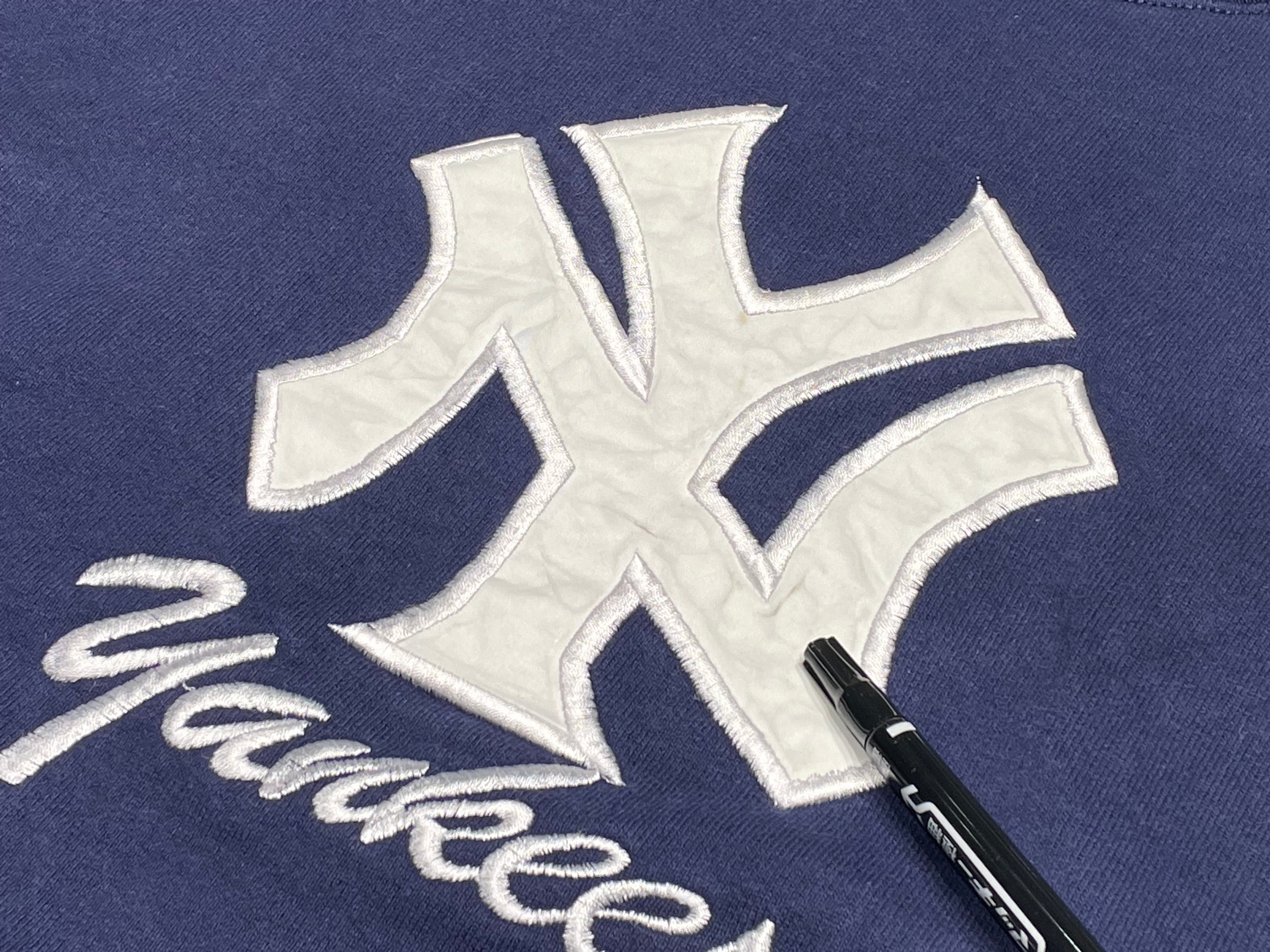フロントに大きく配されたNYロゴ+筆記体Yankees刺繍が主役。