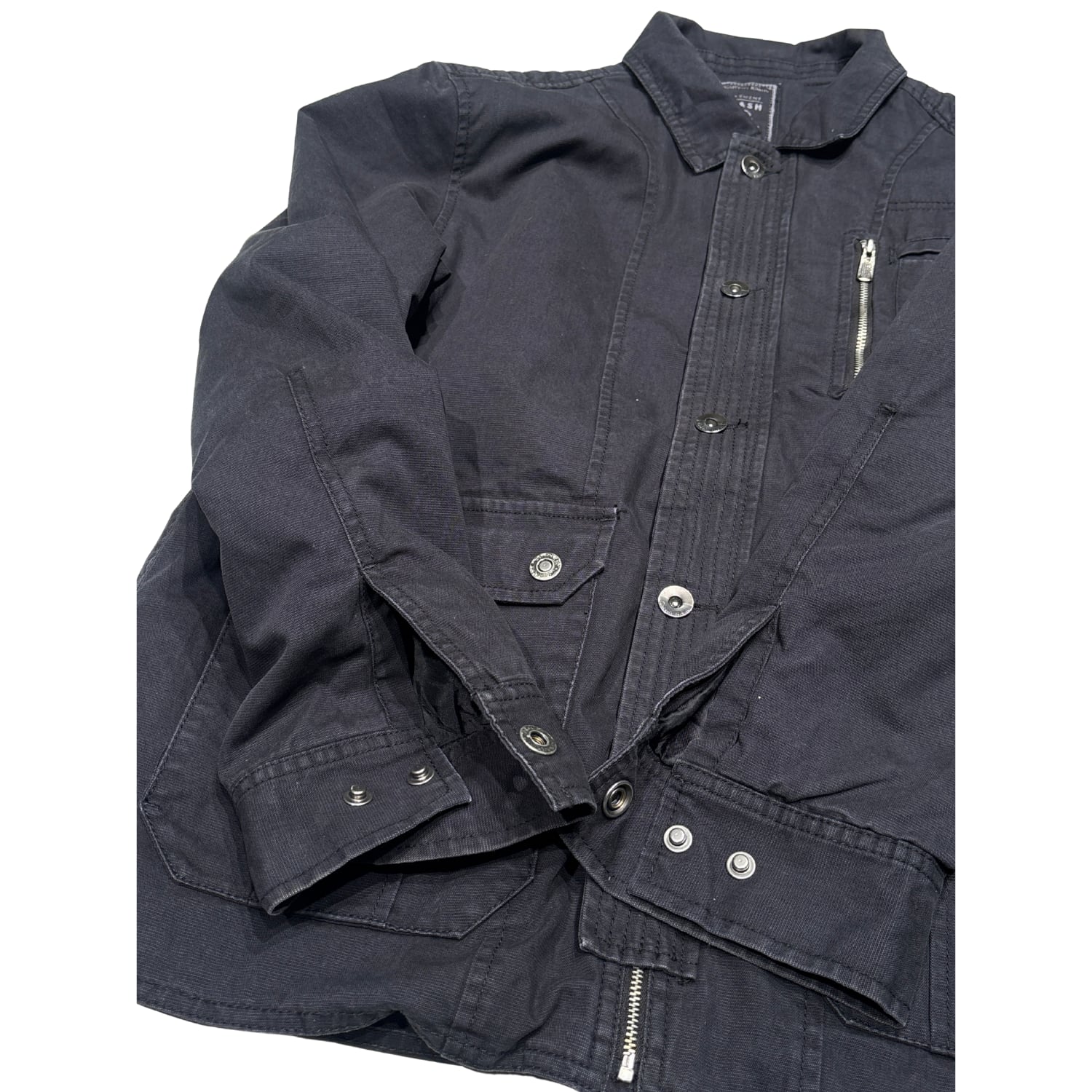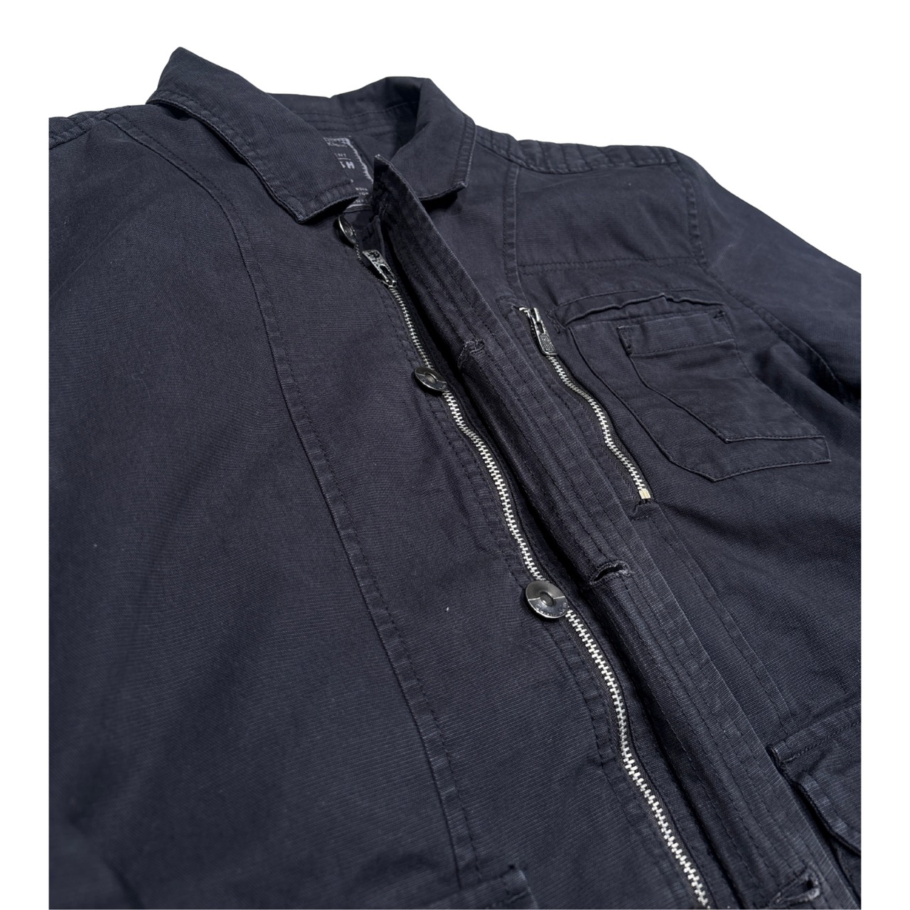 フロントはボタン+ジップの二重構造、胸・腰に実用ポケットを備えた実戦仕様です。
