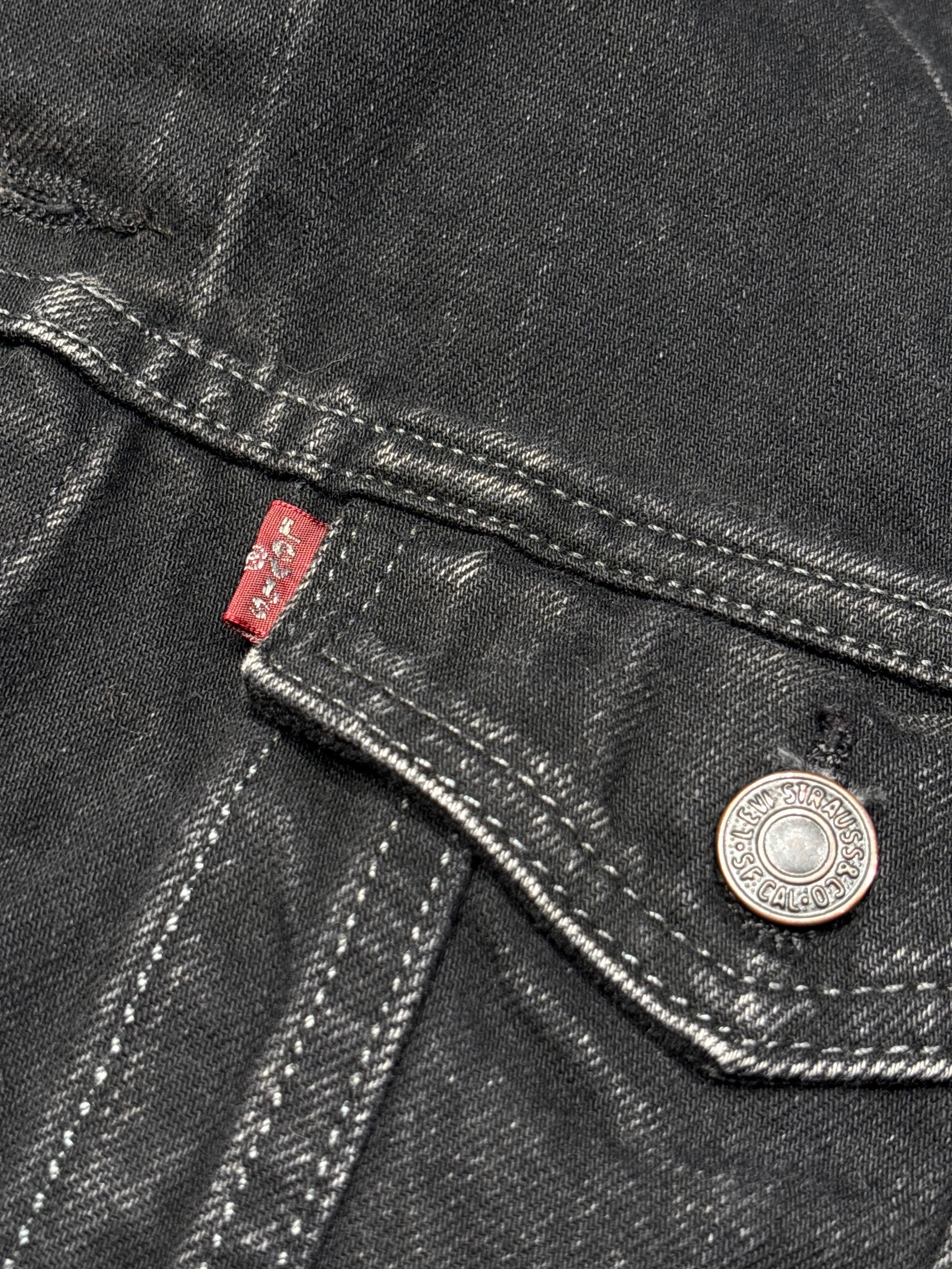 この一着はクラシックなトラッカージャケットをベースにしつつ、ブラックデニムでまとめた比較的新しい世代のモデルです。