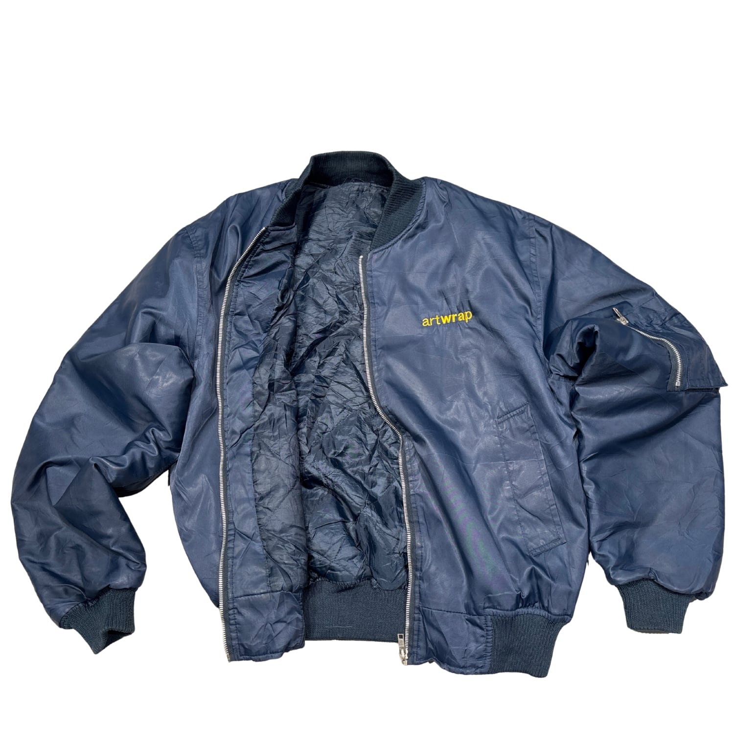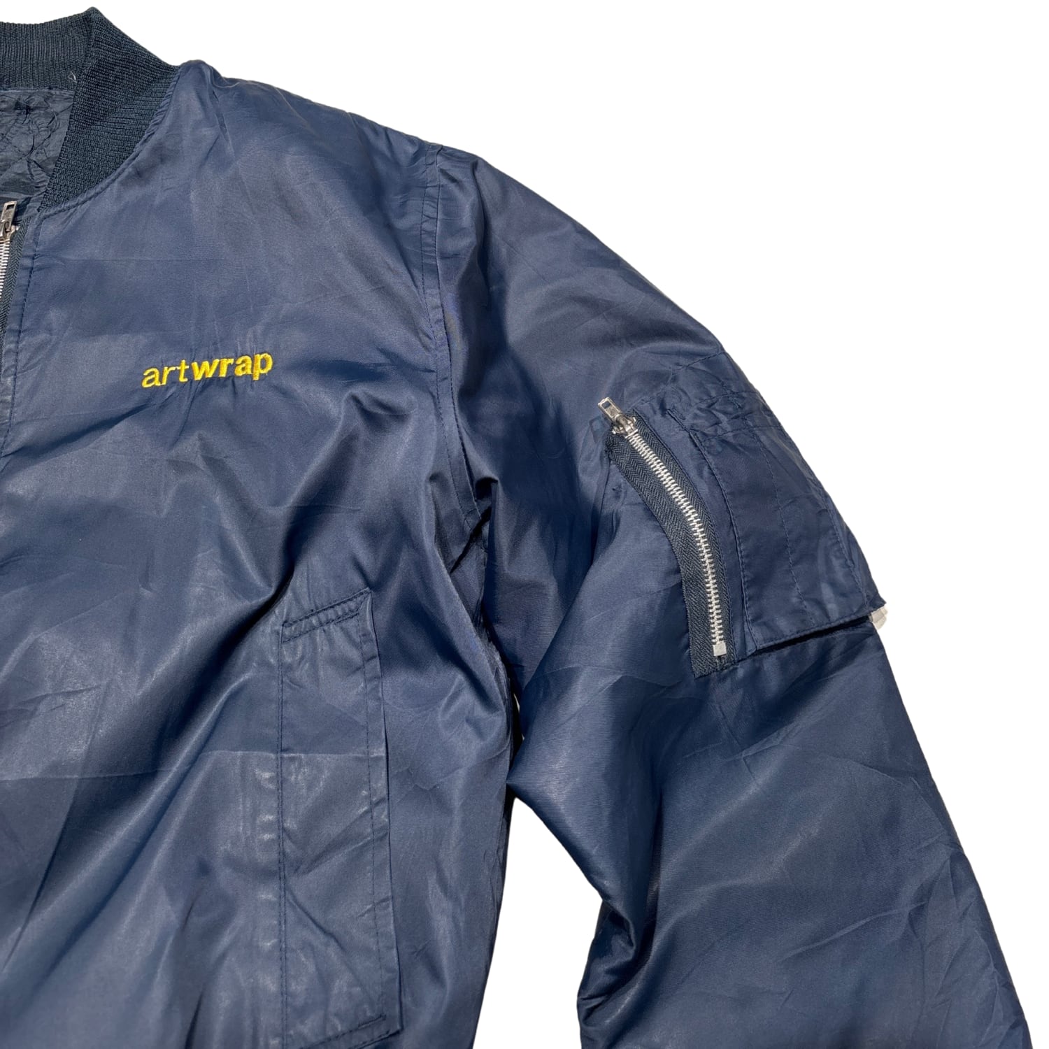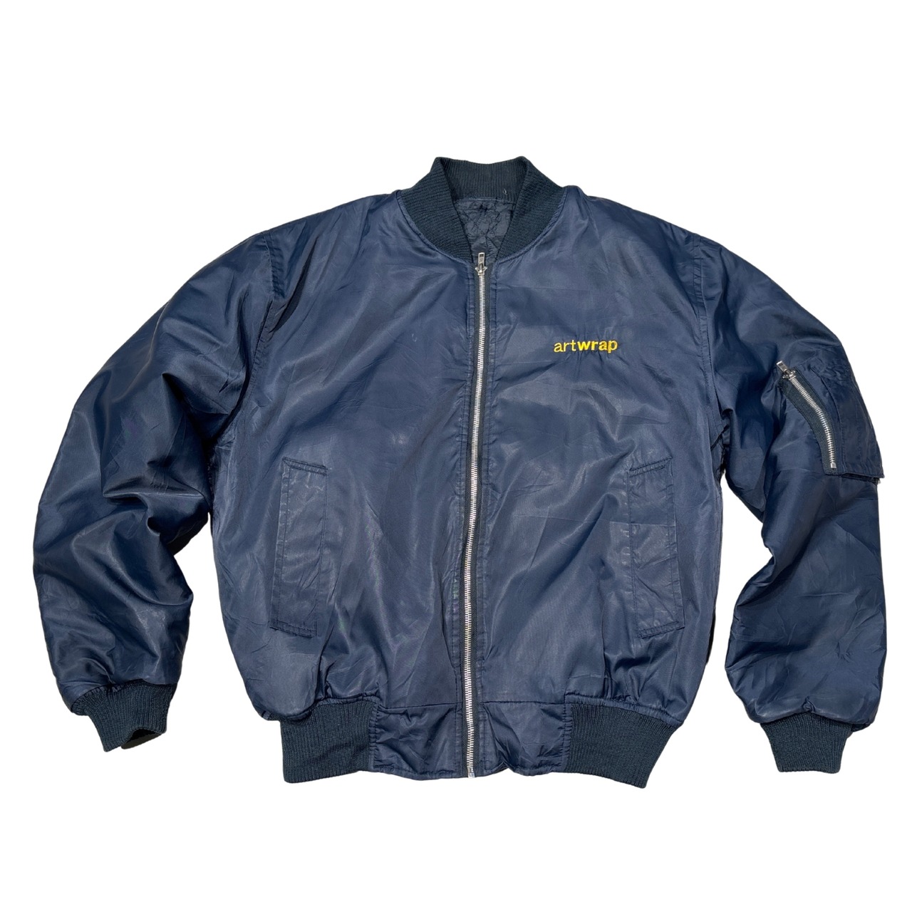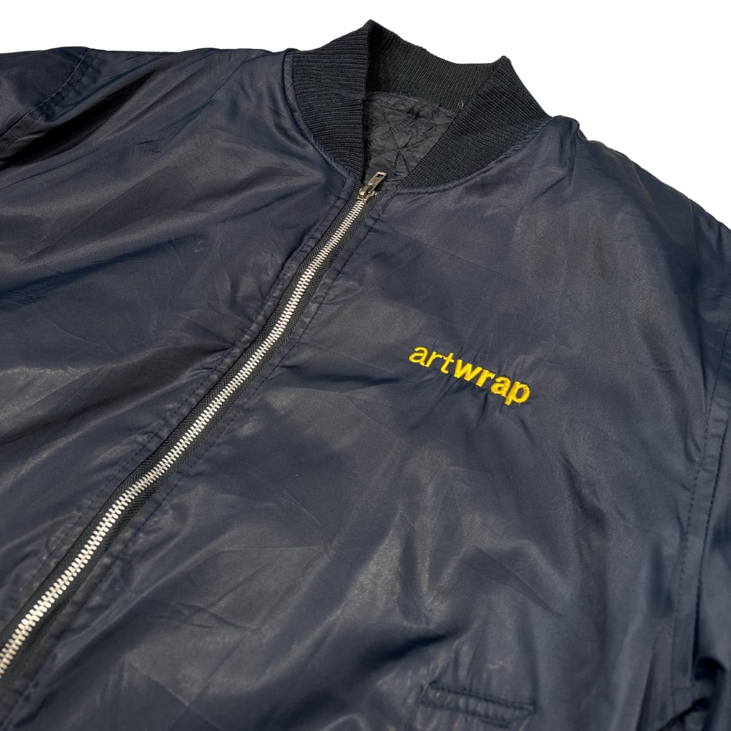 「artwrap」の刺繍が入った、企業・制作系のユニフォーム用途を思わせるMA-1タイプ。