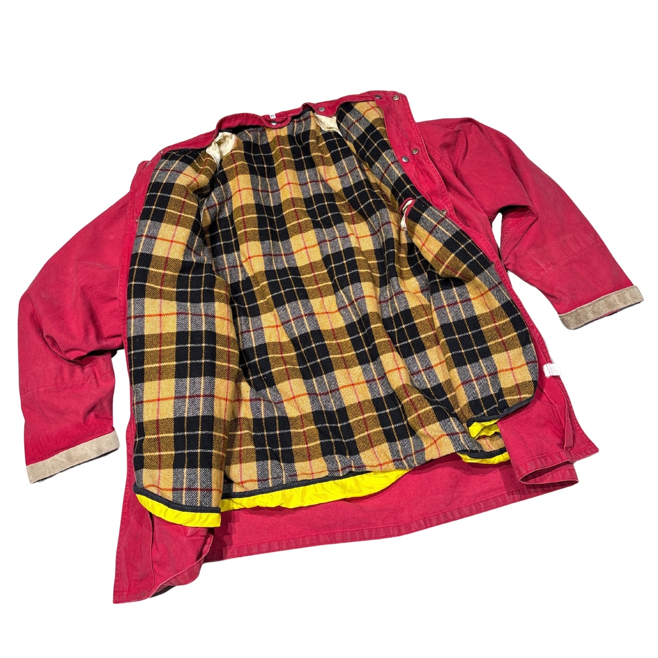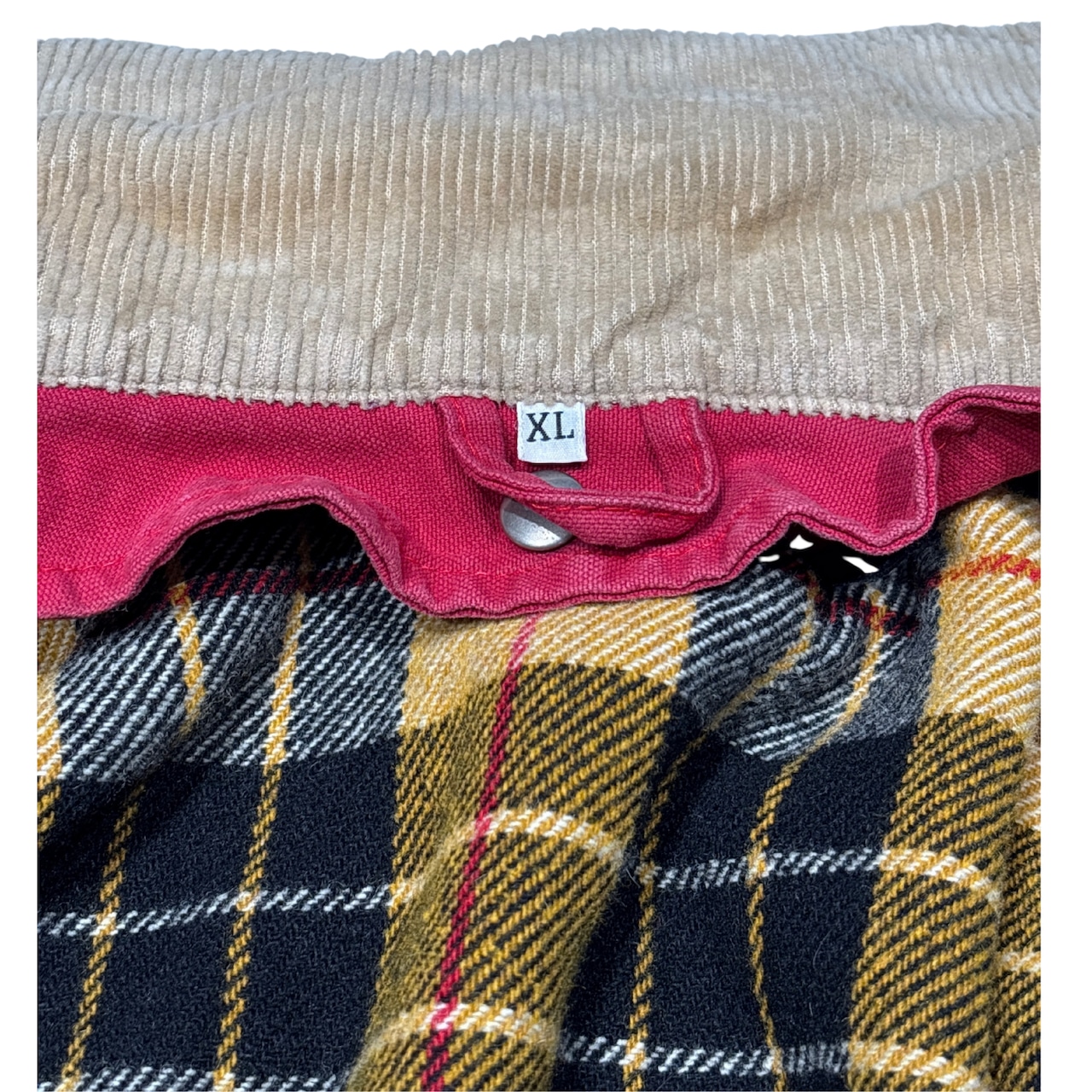 重めのキャンバス地に、コーデュロイ襟とチェック柄ライニングを組み合わせた、完全防寒仕様のワークジャケット。