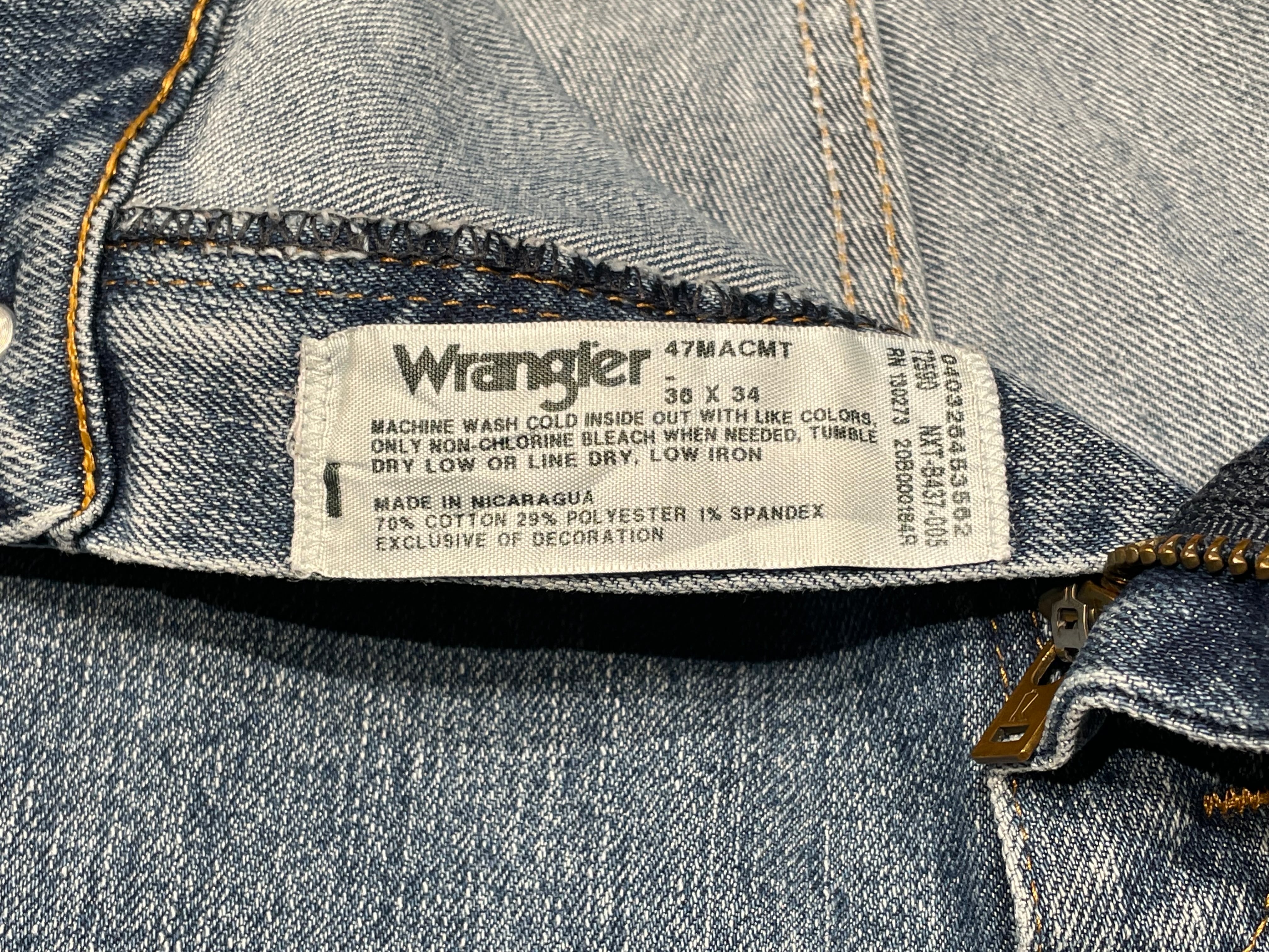 この個体はニカラグア製。量産期らしい安定した縫製と、過度に加工されていない自然な色落ちが特徴で、いかにも「普通に穿かれてきた」空気を残しています。