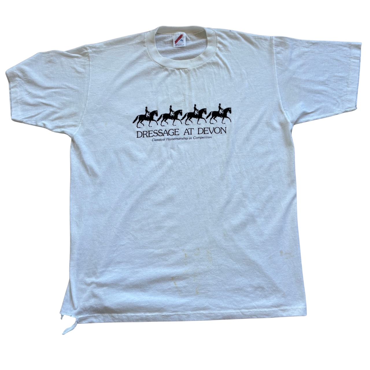 【ナニコレUSA製 JERZEES】80〜90's カウボーイデザインDRESSAGE AT DEVON プリントTシャツ(L)