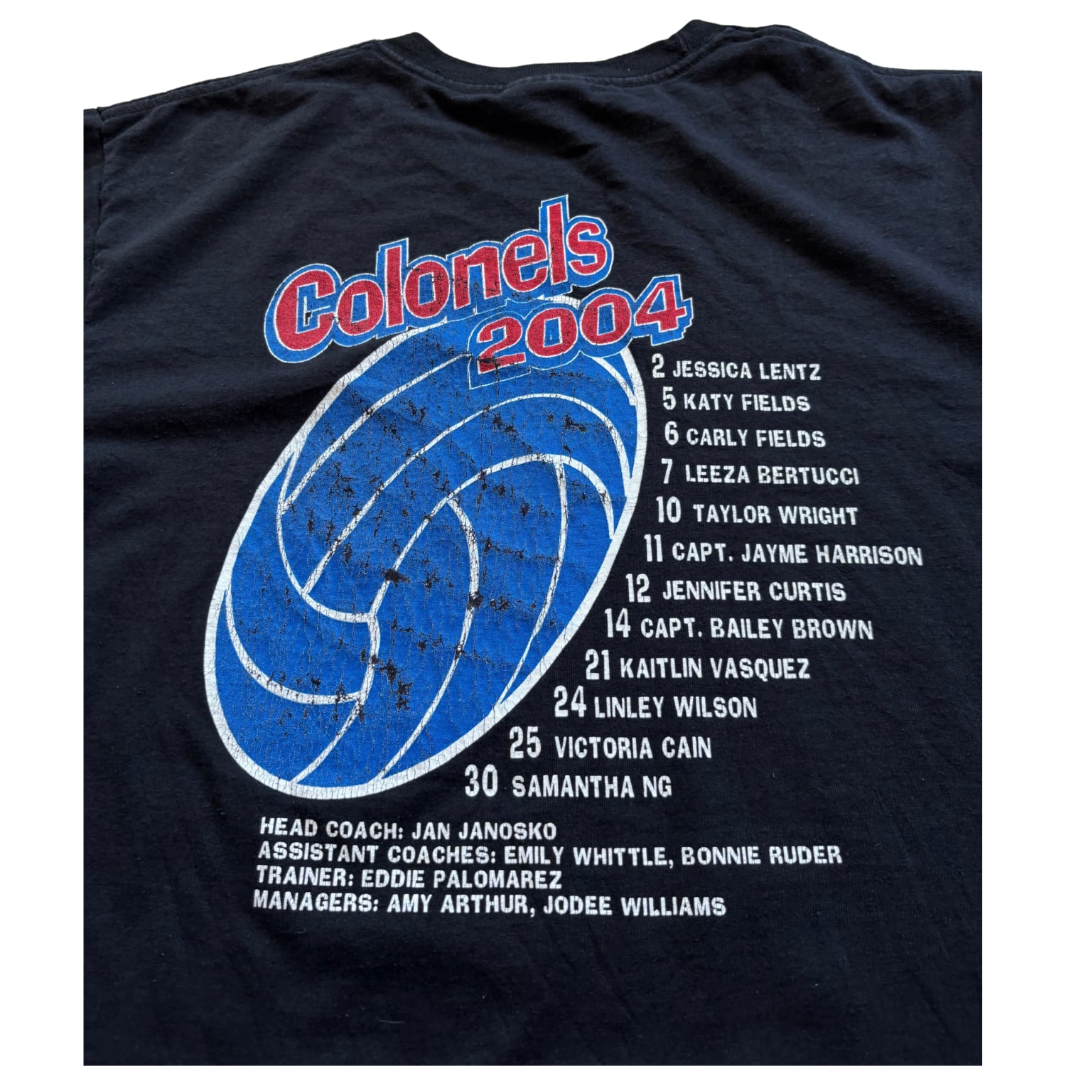 2004年シーズンの女子バレーボールチーム「Colonels」のチームTシャツ。