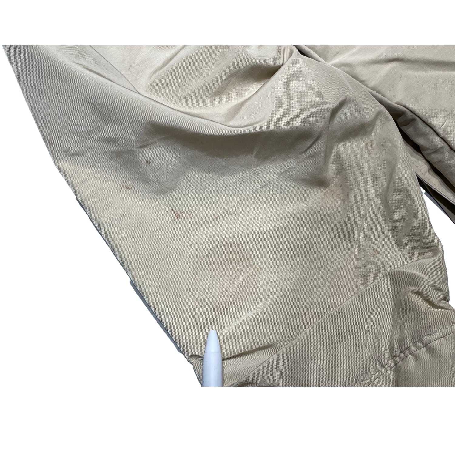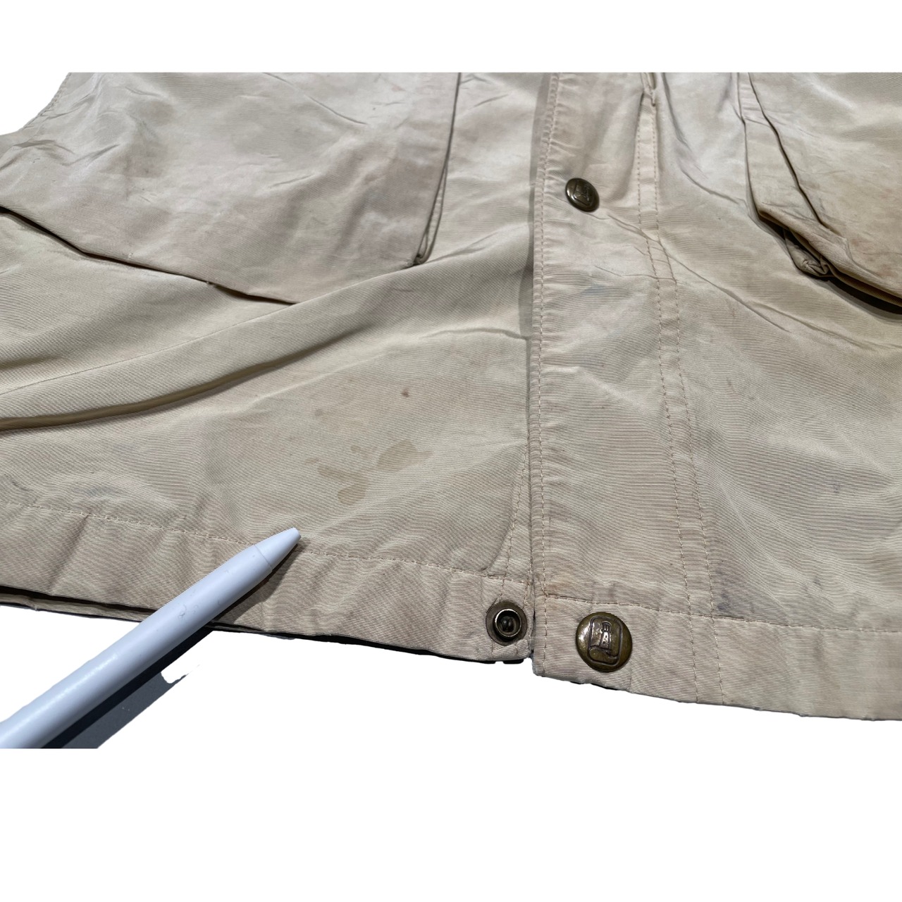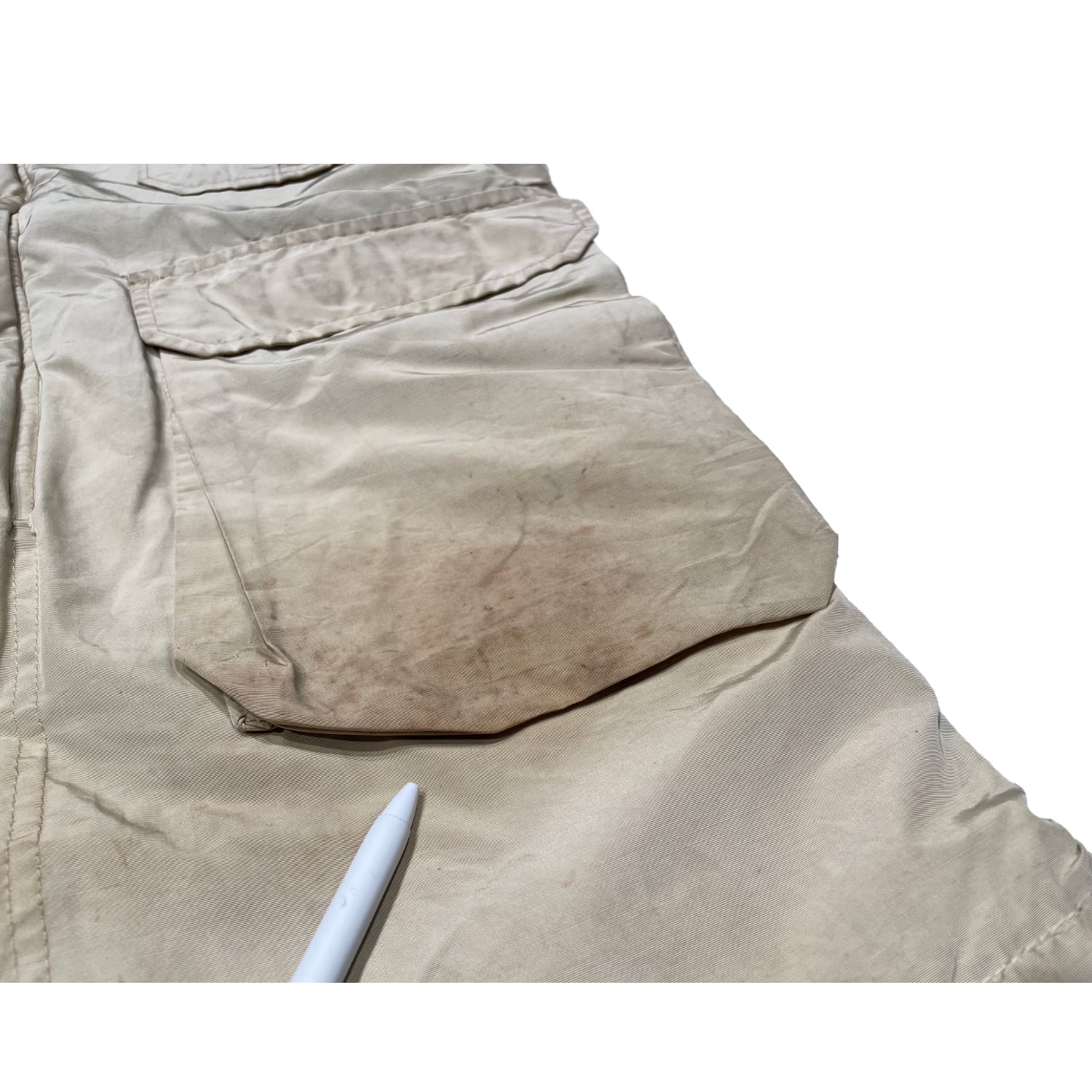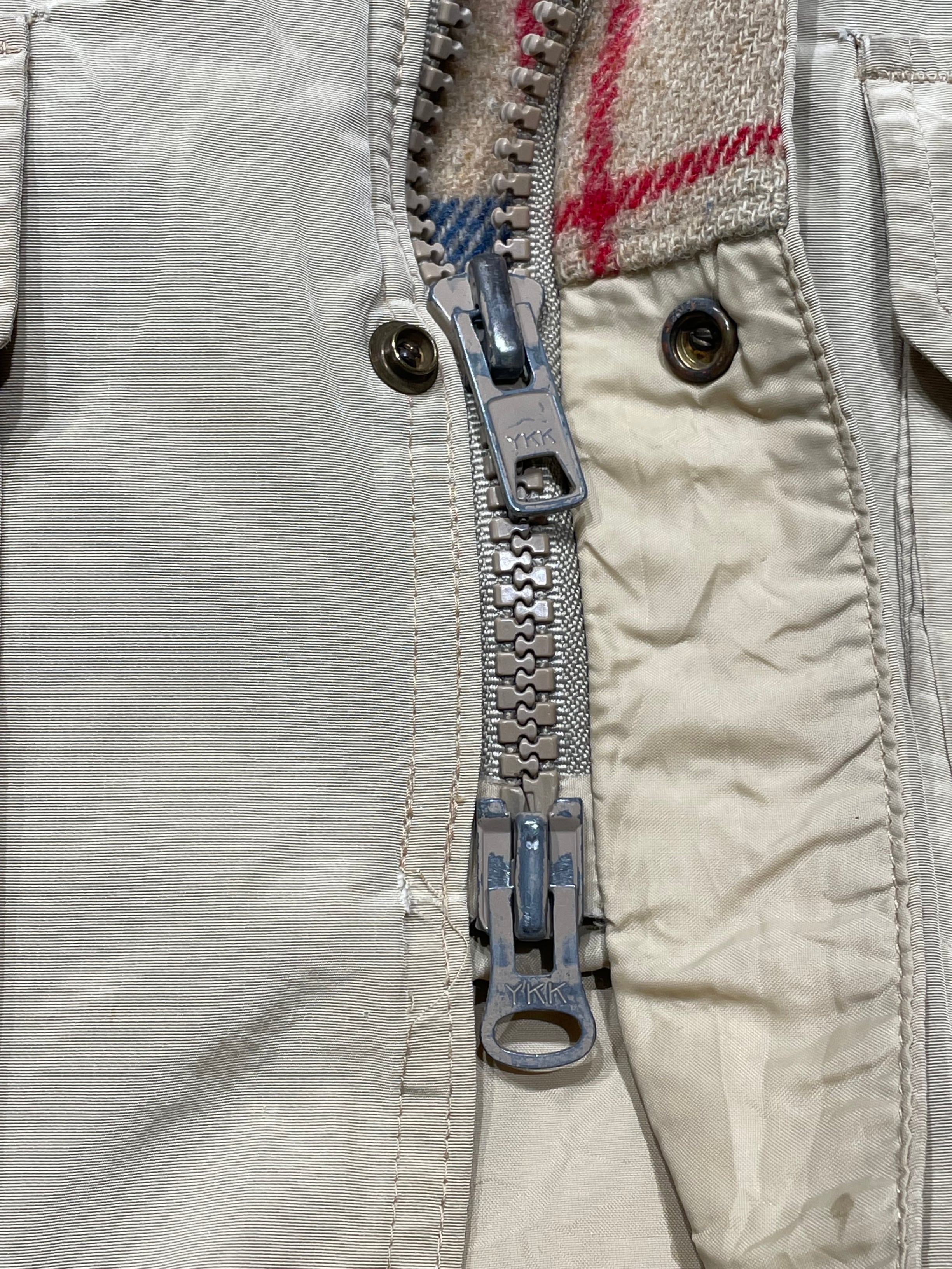 ・状態:全体的に使用感あり。袖口・裾・前身頃下部に薄汚れあり。致命的な破れはなく、YKKダブルジップの可動も良好。