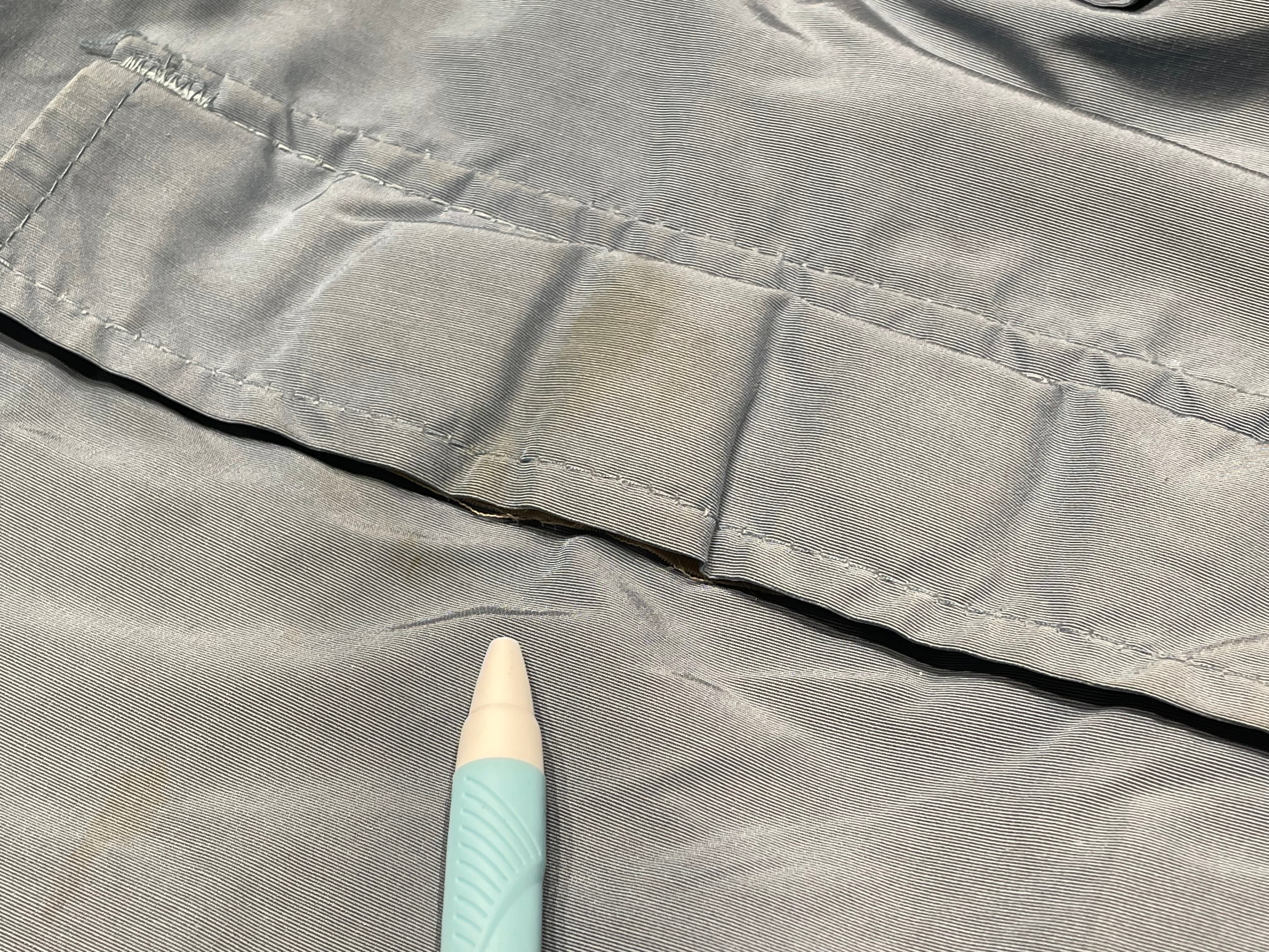 致命的な破れはなく、YKKダブルジップ可動良好。