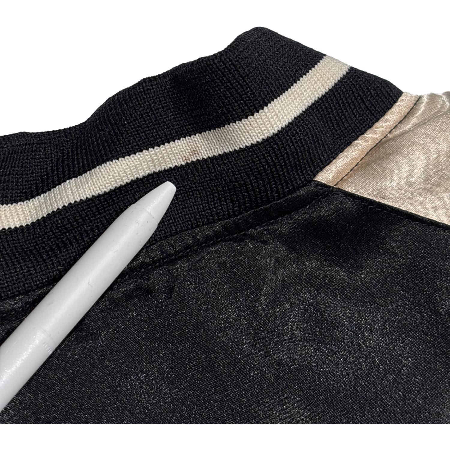 この一着もその流れにあるタイプで、艶のあるサテン地、前後と両袖に配された龍刺繍、リブライン入りのリブ仕様と、スカジャンの文法をきっちり踏んだ構成。