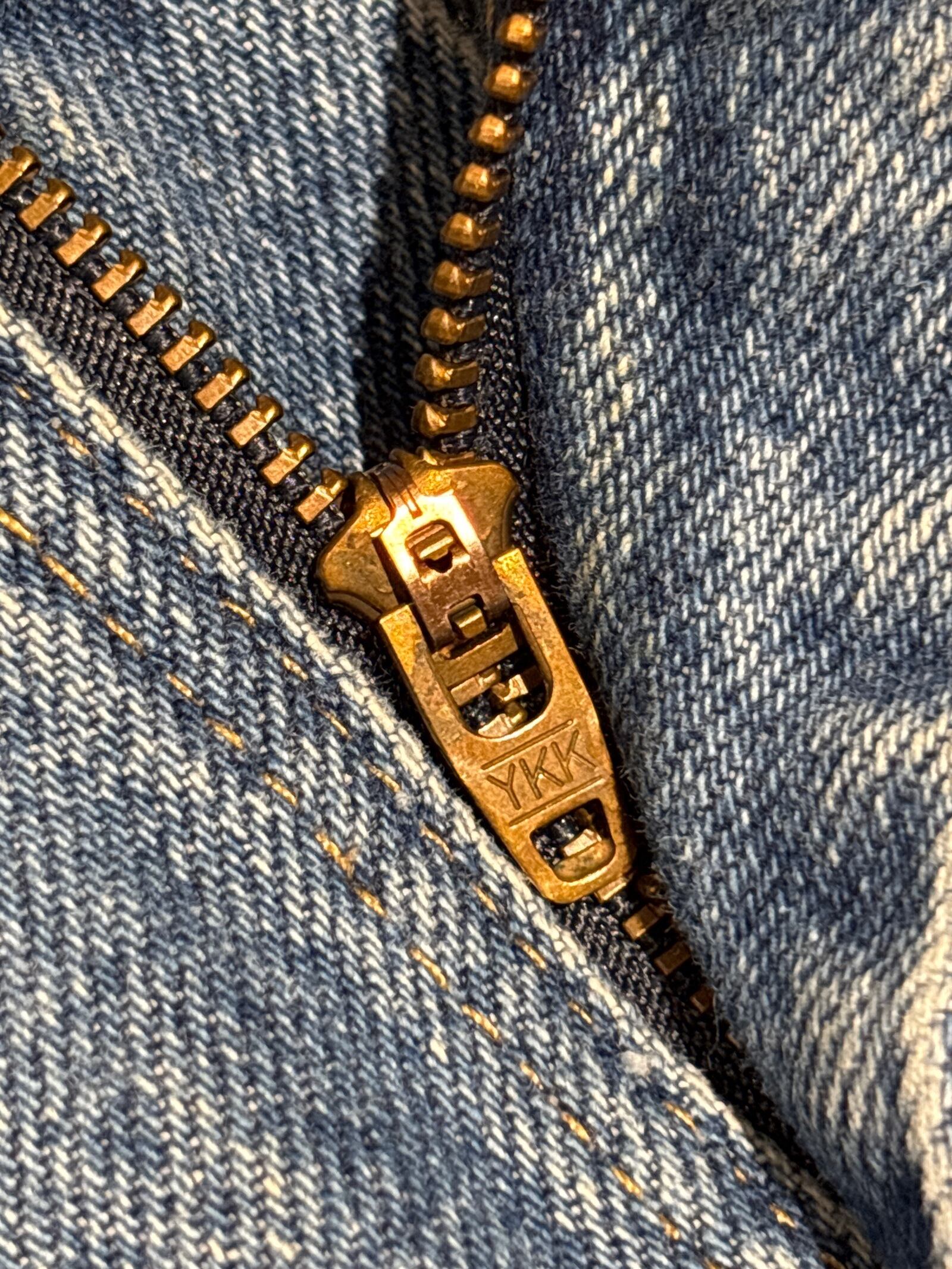 本個体はメキシコ製・YKKジップ仕様。90年代後半以降に多く見られる組み合わせで、ワーク寄りの空気感がまだ色濃く残る時期の一本と判断できます。