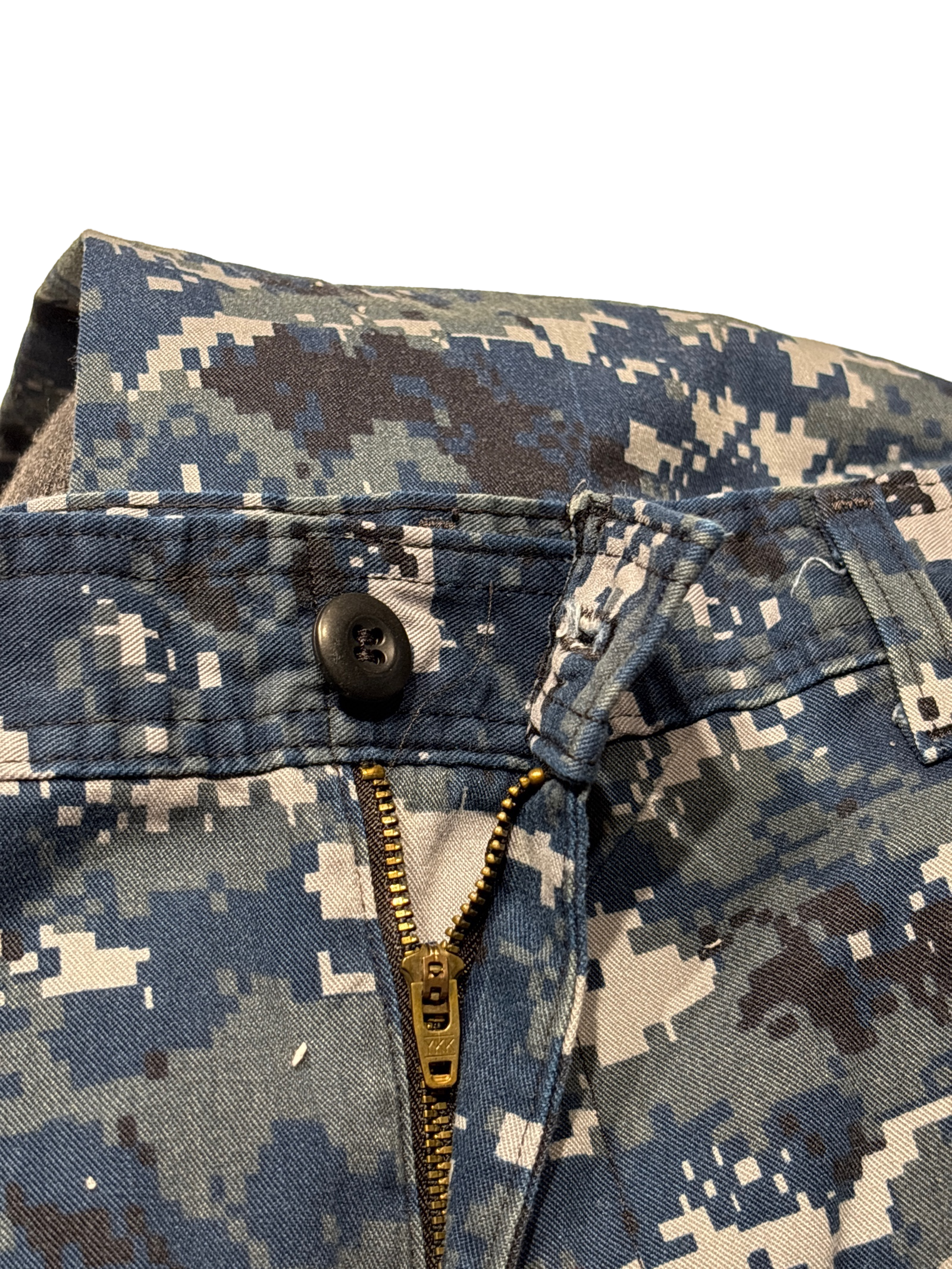 U.S. NAVY系のデジタルカモを思わせる配色は、当時のミリタリーサープラスやカーゴパンツブームと強く結びついています。