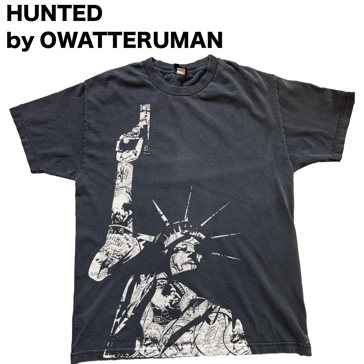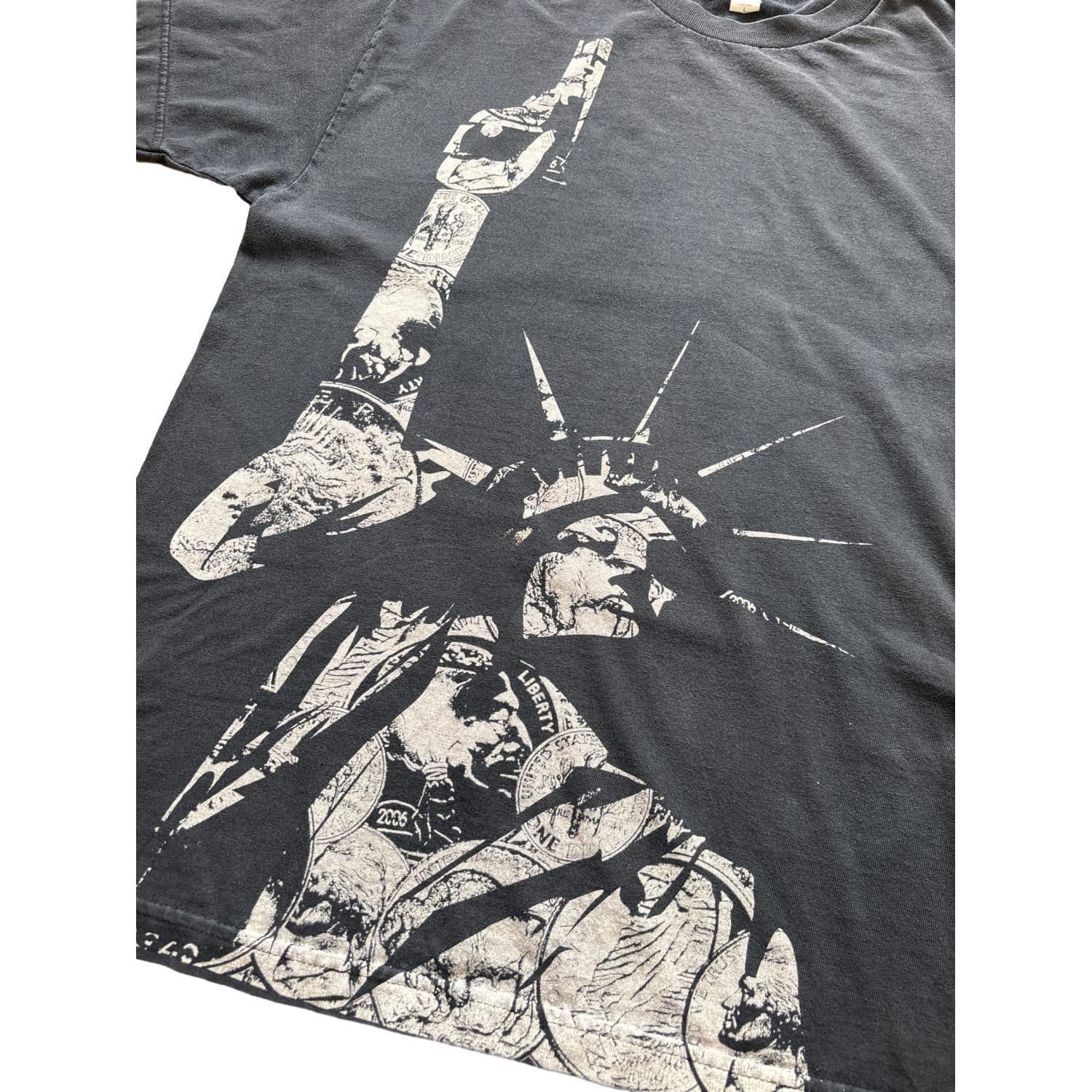 本個体は、背面に手書き調のメッセージとスタチュー・オブ・リバティを再構築したグラフィックを配置した一枚。