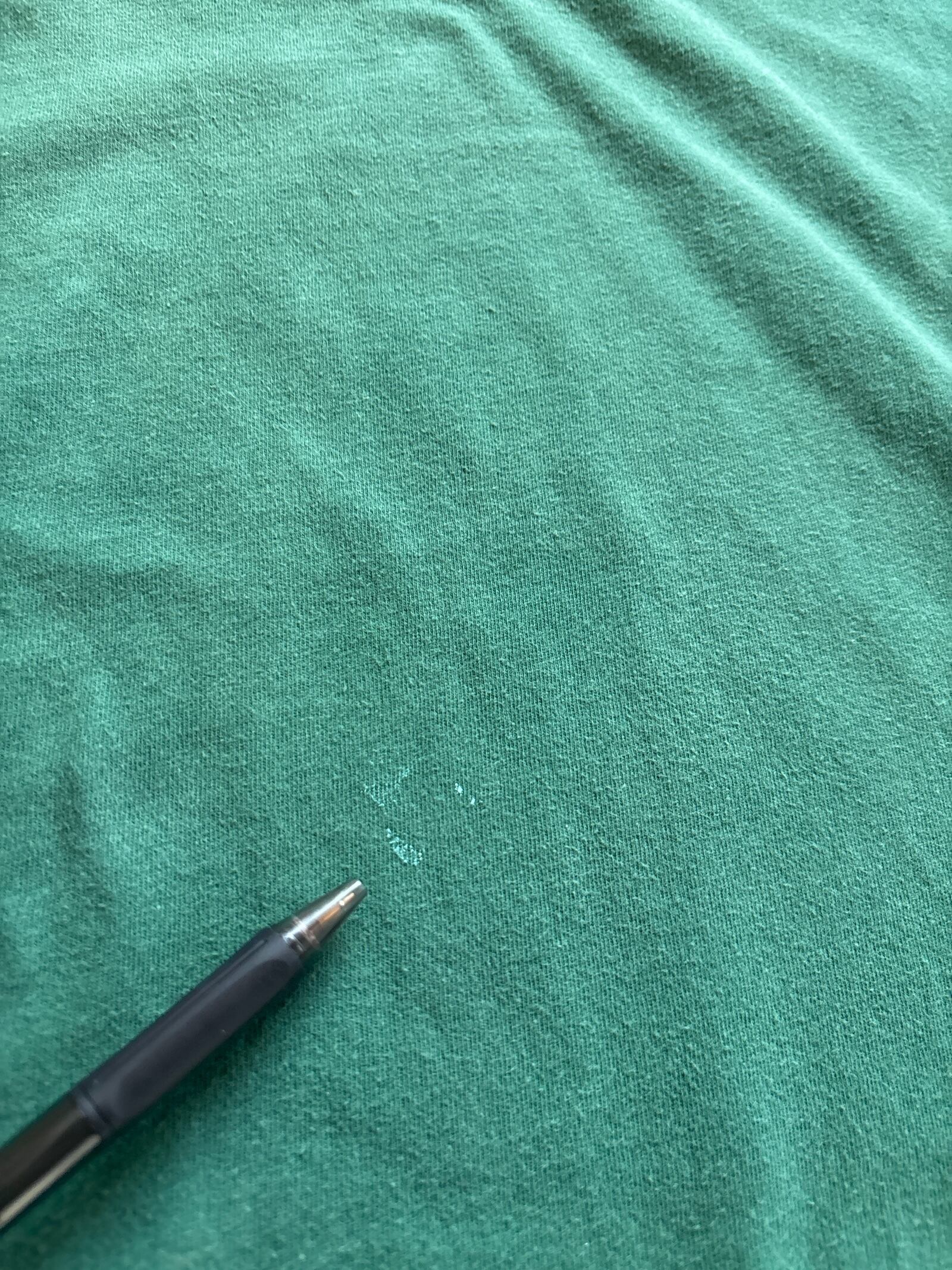 グリーンボディにホワイトプリントの配色が強すぎず、合わせやすいのもポイント。