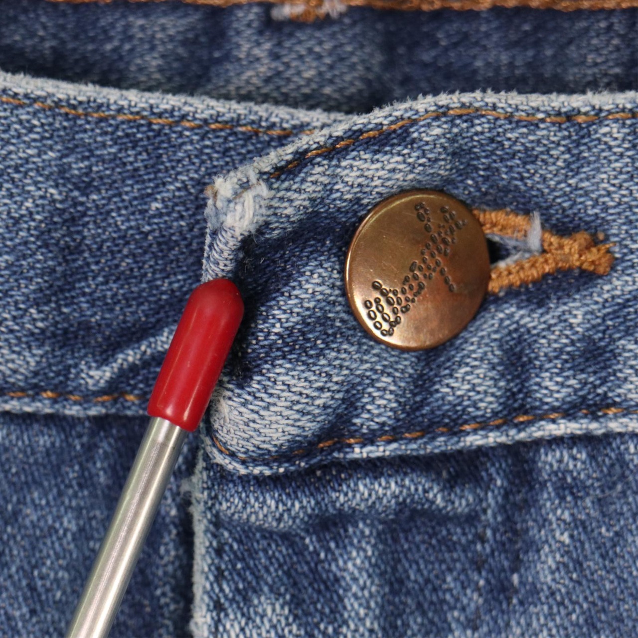レザーパッチ、銅リベット、当時らしい色味と縫製から見て、1990年代後半頃の個体と推定されます。