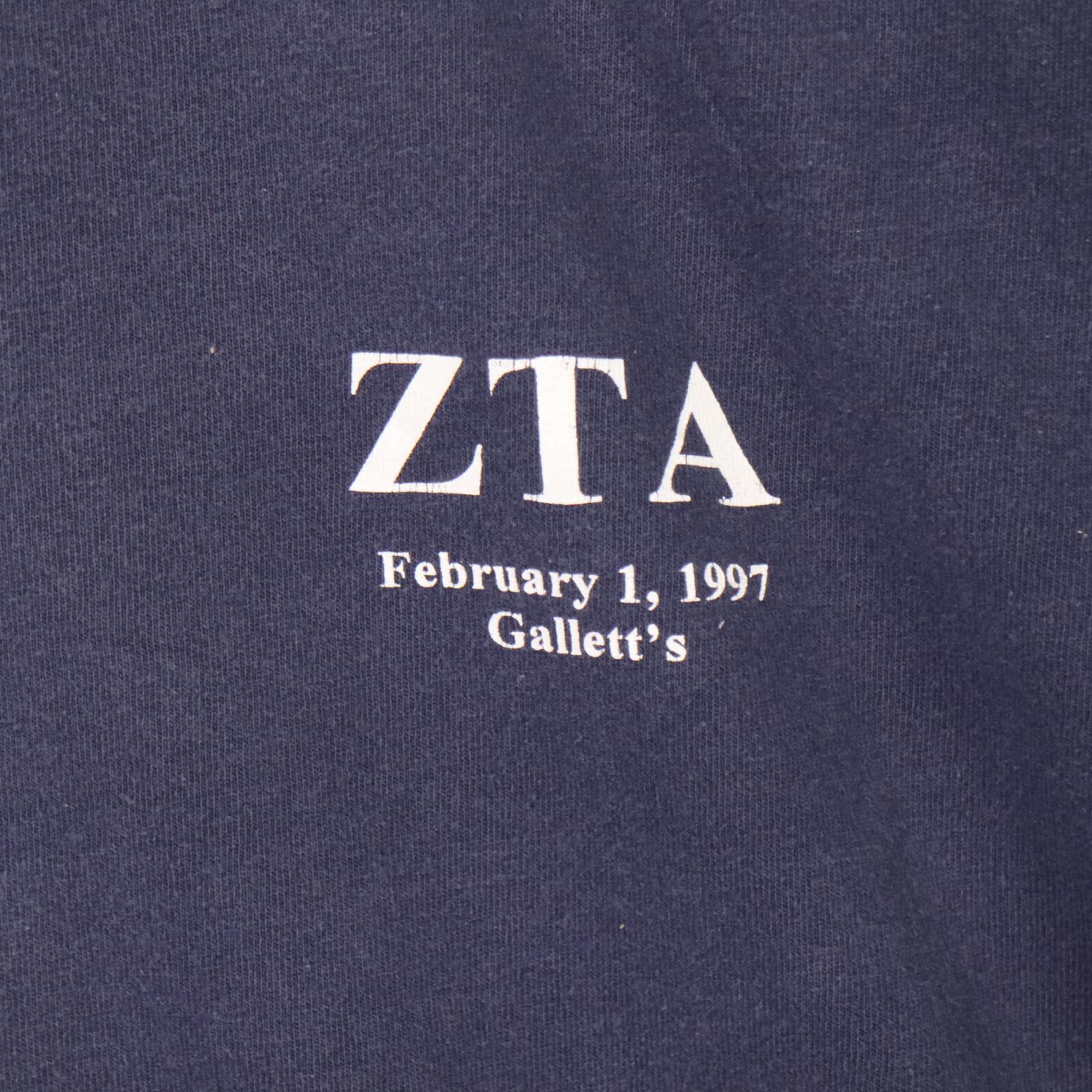 フロントは控えめなZTAロゴと日付、バックには団体名とモチーフを大きく配置した、いかにも90年代らしいバランス。