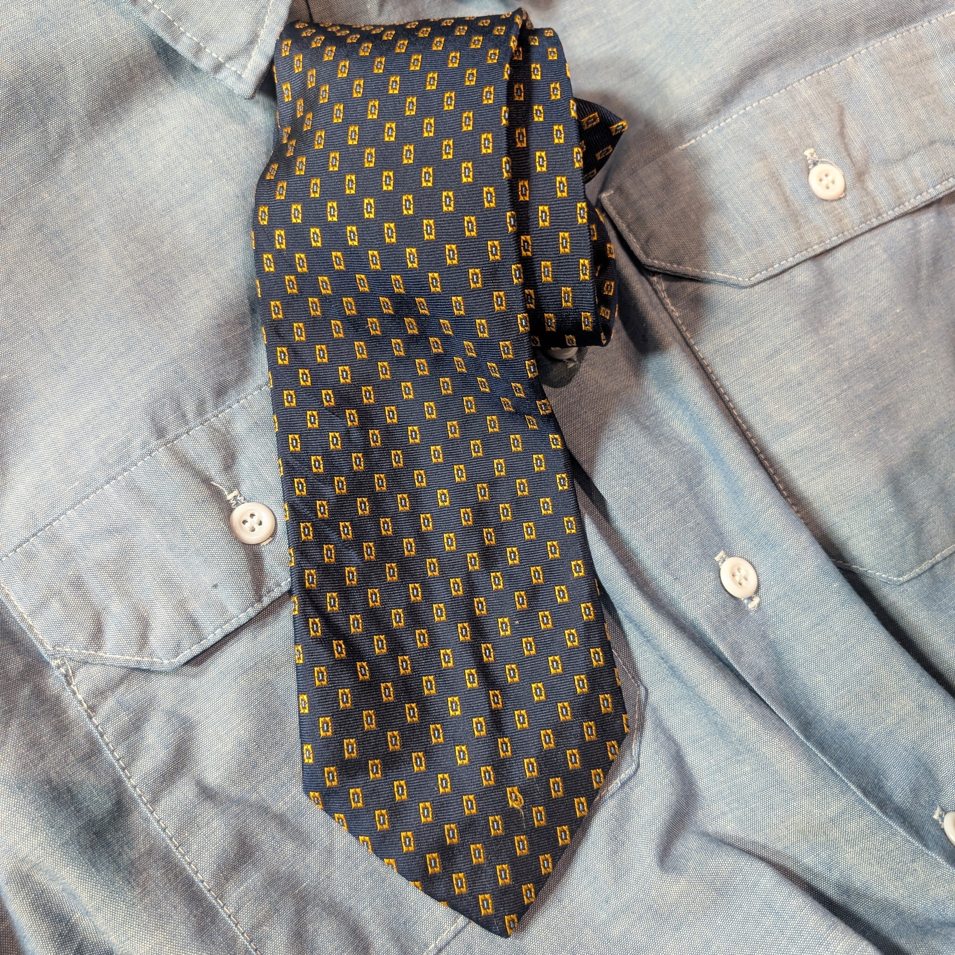 この小紋(こもん)柄は、**アイビーリーグの“制服的ネクタイ”**として長く使われてきた定番意匠。
