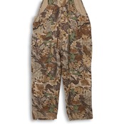 フロント・バックともに収納力の高いポケット構成。サスペンダーは長さ調整可能で、ワークウェアらしい実用性をしっかり備えた作り。迷彩柄ながら落ち着いた配色で、過度に主張しすぎないバランス。