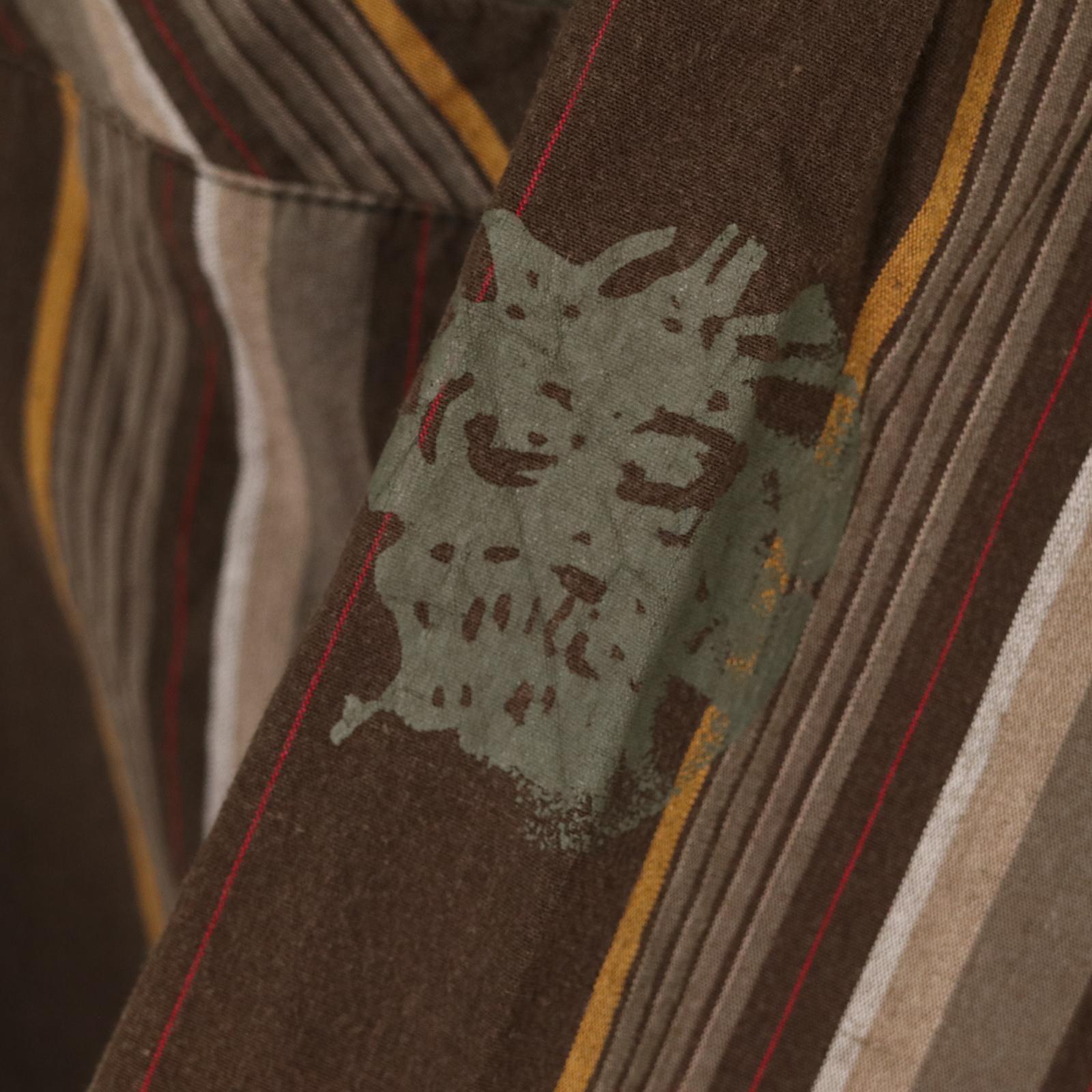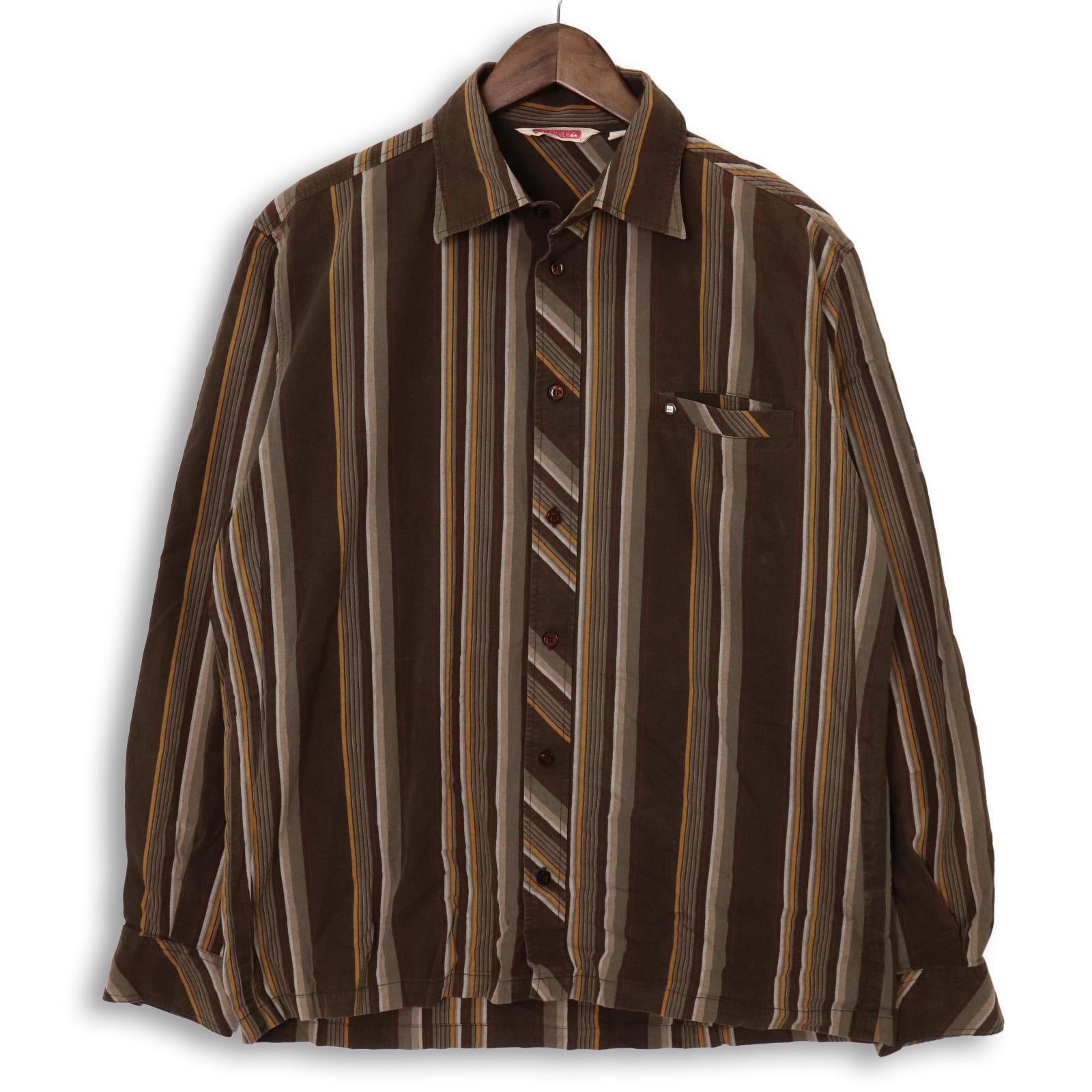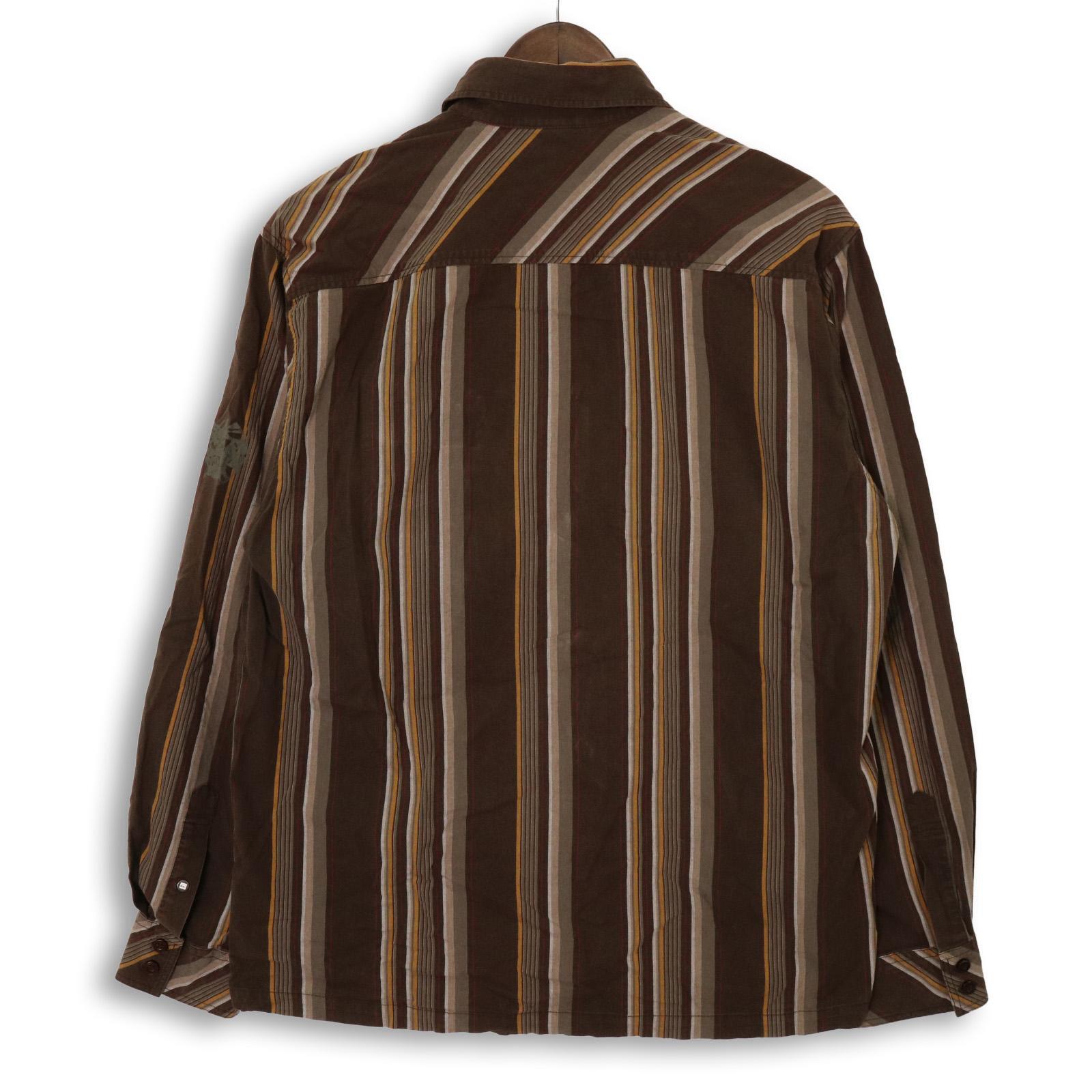 サーフブランドらしいカジュアルさをベースにしつつ、縦ストライプで全体を引き締めたデザイン。配色はブラウンを軸に、ベージュやイエローが差し込まれ、主張しすぎずスタイリングに馴染む構成。胸ポケット付きのベーシックなシャツ型。