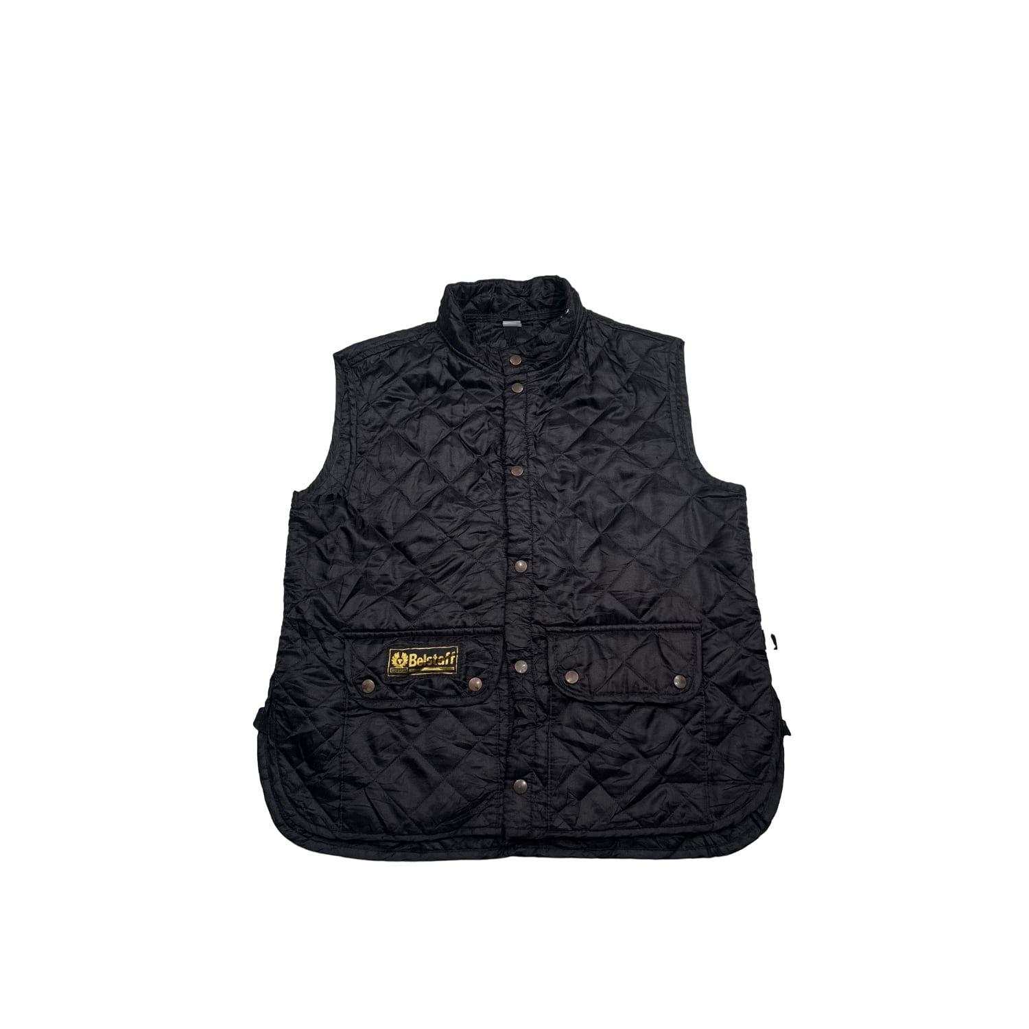 ダイヤモンドキルト仕様のボディにスナップボタンフロントを採用。フロントには実用的なフラップポケットを配置し、左ポケットにBelstaffロゴパッチ、サイドにユニオンジャックタグ付き。中綿にはThinsulateを使用し、軽さと保温性を両立した作り。