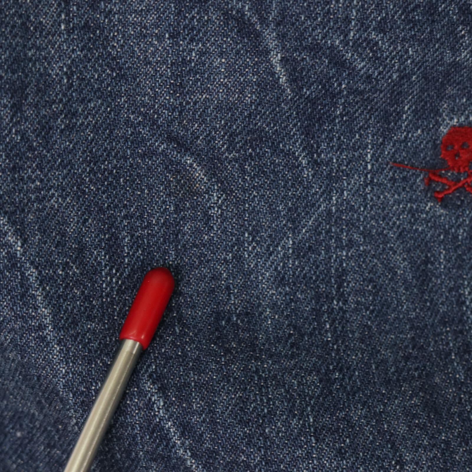 全体に施されたスカル刺繍が最大の特徴。ベースはPoloらしいオーセンティックな5ポケットデニムで、シルエットは癖が少なく、主張のある柄でもスタイリングに取り入れやすいバランスです。