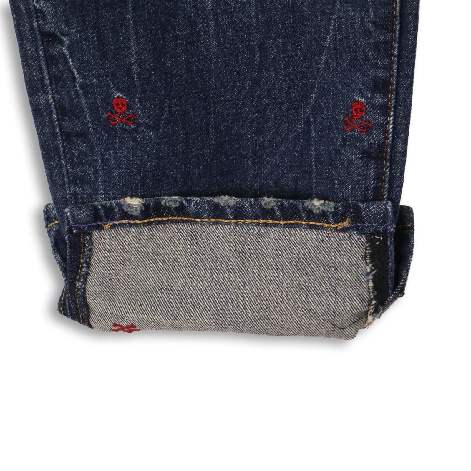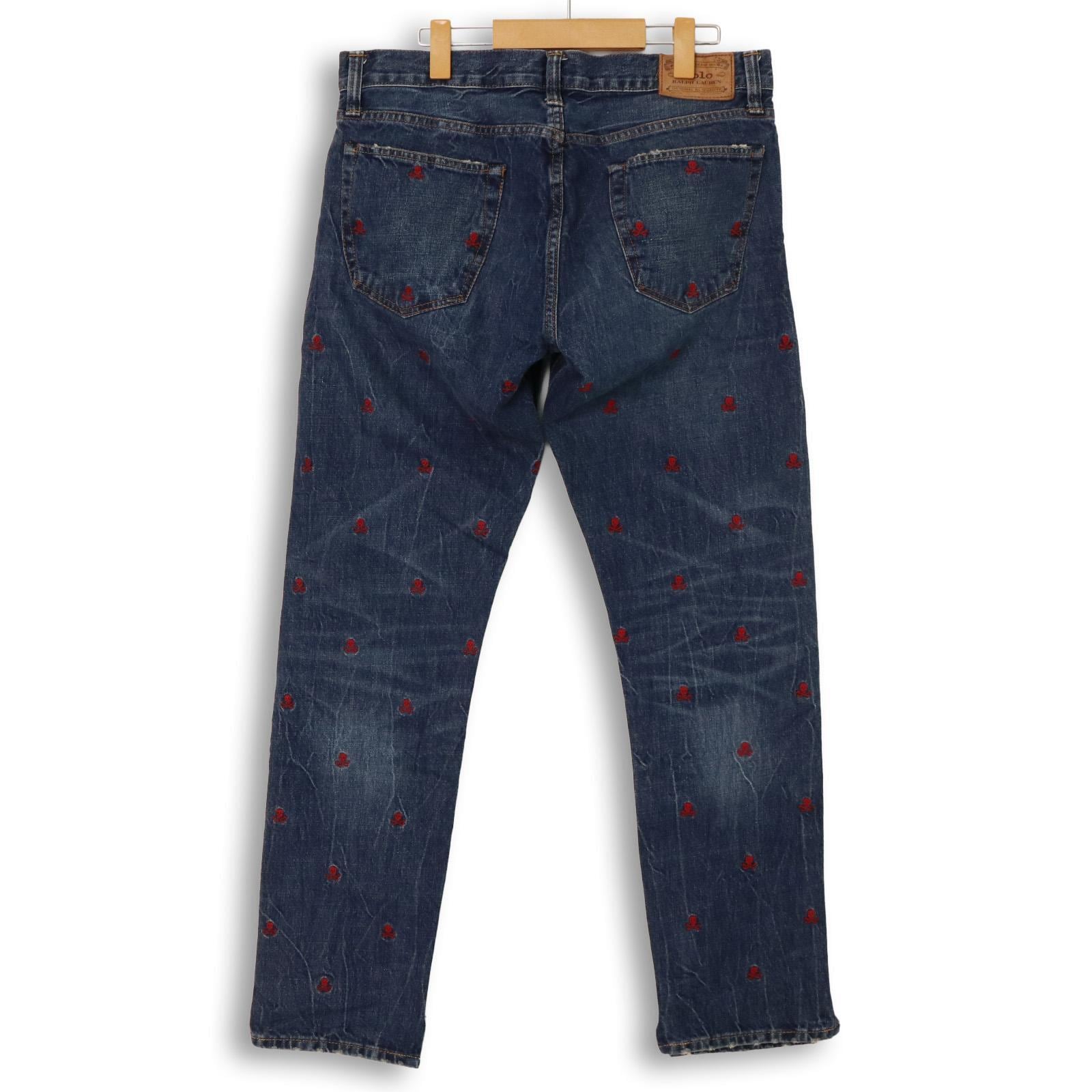 【00s Polo Ralph Lauren】総柄スカル刺繍デニムパンツ