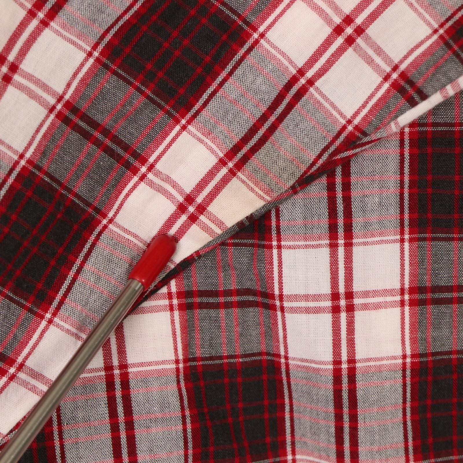Wrangler はカウボーイやロデオ文化と深く結びついたブランドで、ウエスタンシャツはその象徴的アイテム。チェック柄とスナップボタンを組み合わせたデザインは、ワークウェアとしての実用性とアメリカ西部カルチャーの美学を色濃く反映している。