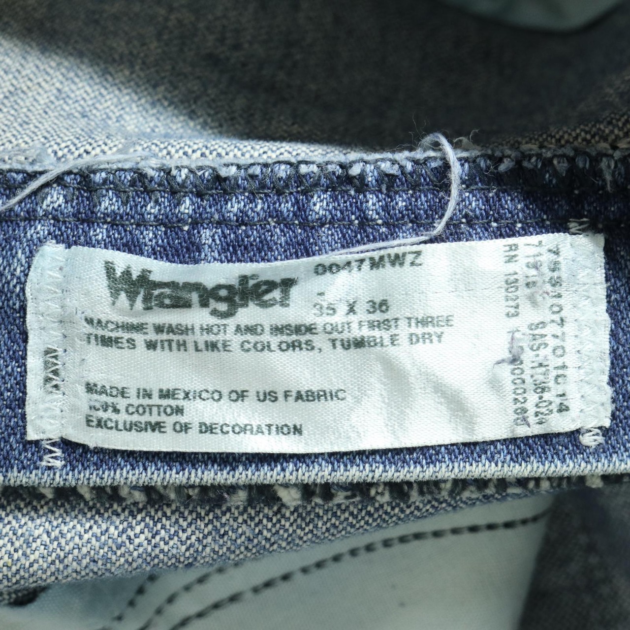 47MWZならではのレギュラーフィット。腰回りに程よい余裕があり、太すぎず細すぎないストレートシルエット。Wranglerらしいやや高めの股上と、実用性を重視した作りが特徴です。