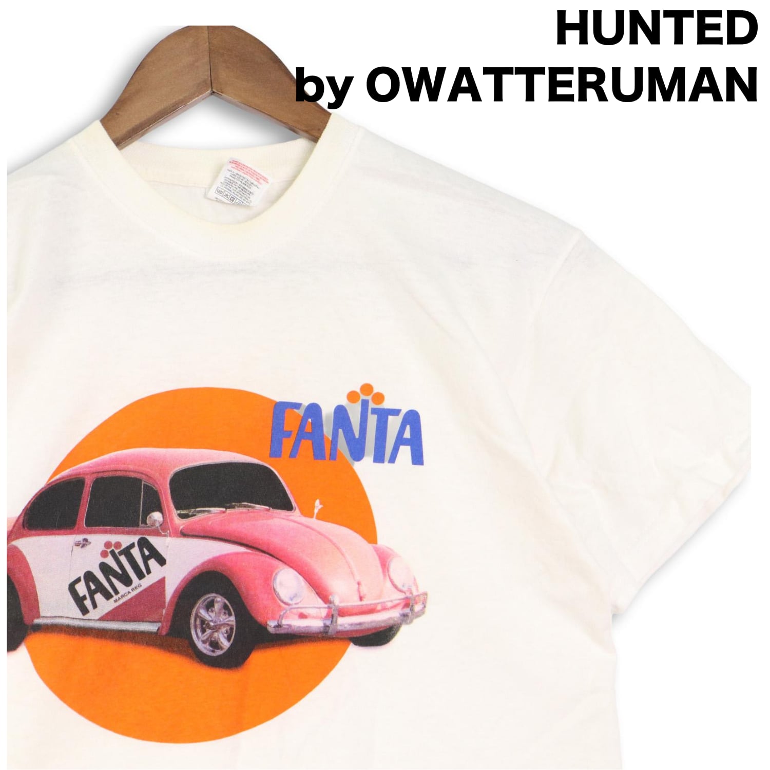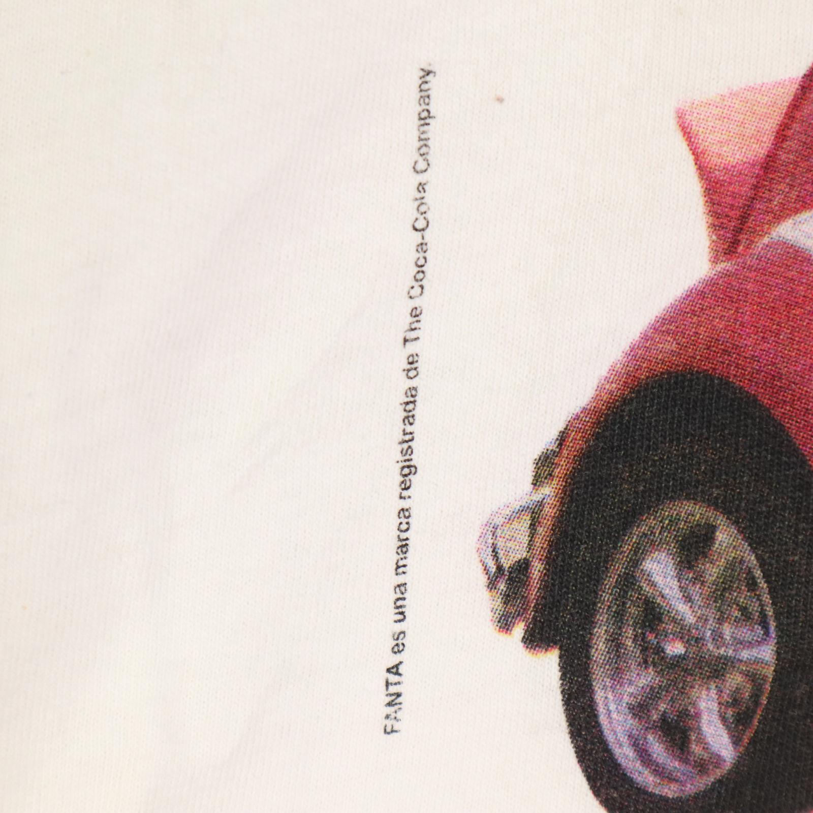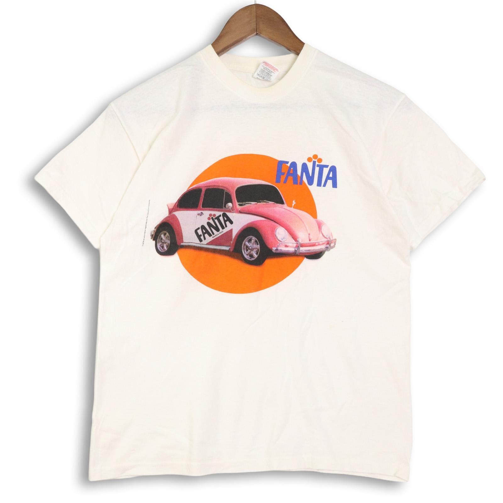 アメリカを代表する炭酸ブランドFANTAのオフィシャルプリント。ポップカルチャーと企業ロゴが直結していた90年代らしい一枚。ビートル風の車両グラフィックも含め、当時の広告的デザイン性を感じられるヴィンテージTです。