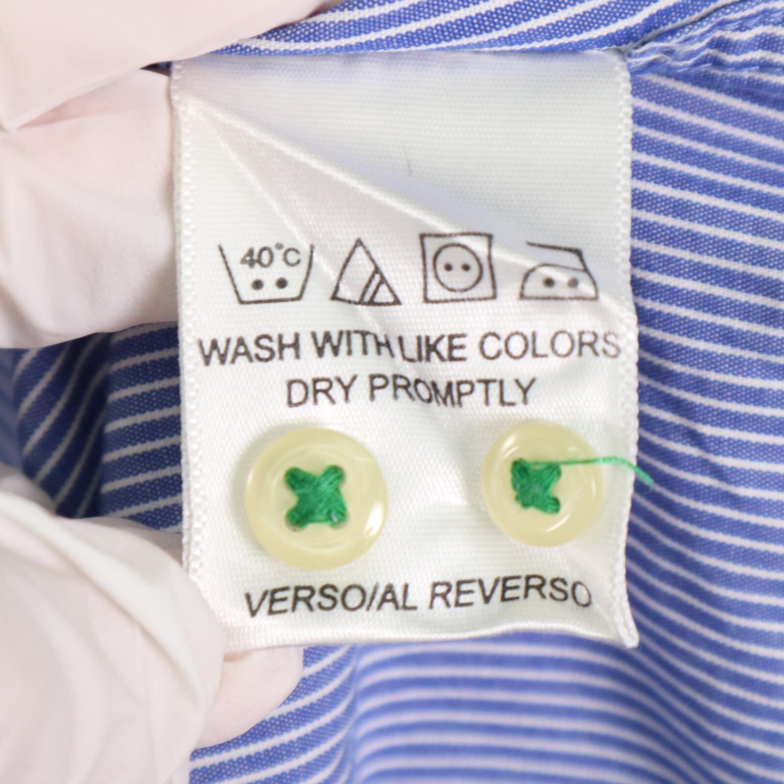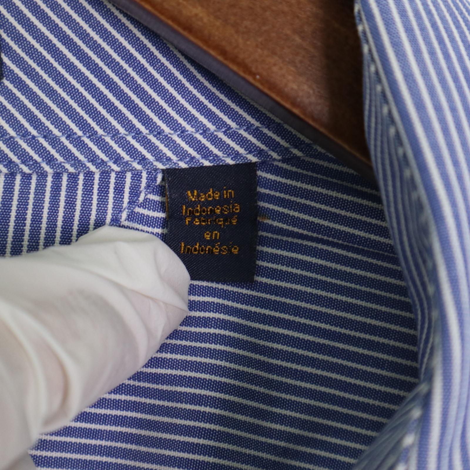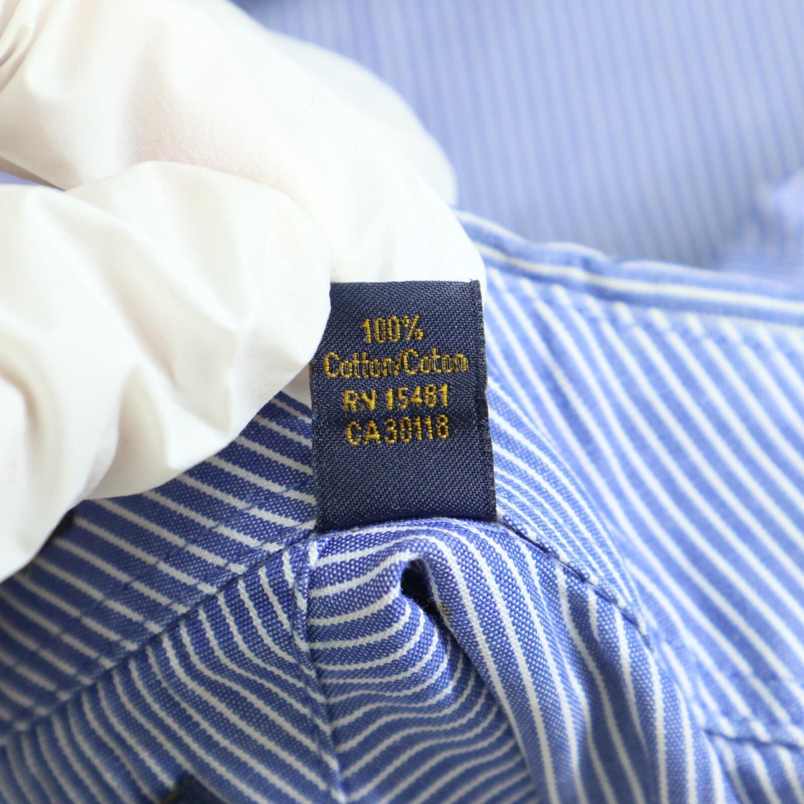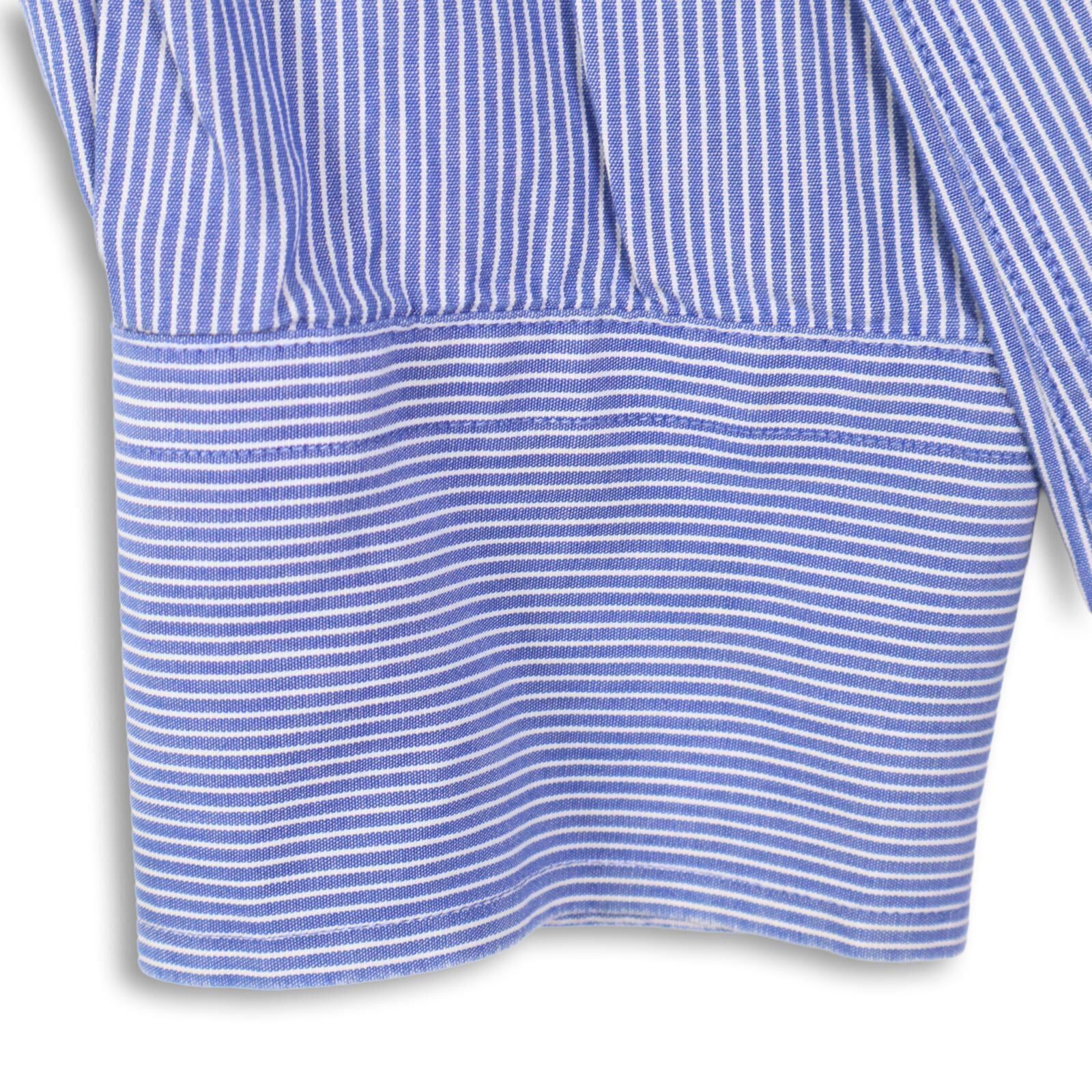 細かいピンストライプ柄、ボタンダウン仕様、胸ポケット付き。バックにはセンタープリーツ入りで可動域も確保。TLC “The Lifetime Collar”タグ付きで、襟の立体感と耐久性を意識した作りになっています。オン・オフ問わず使いやすいクラシックなシルエット。