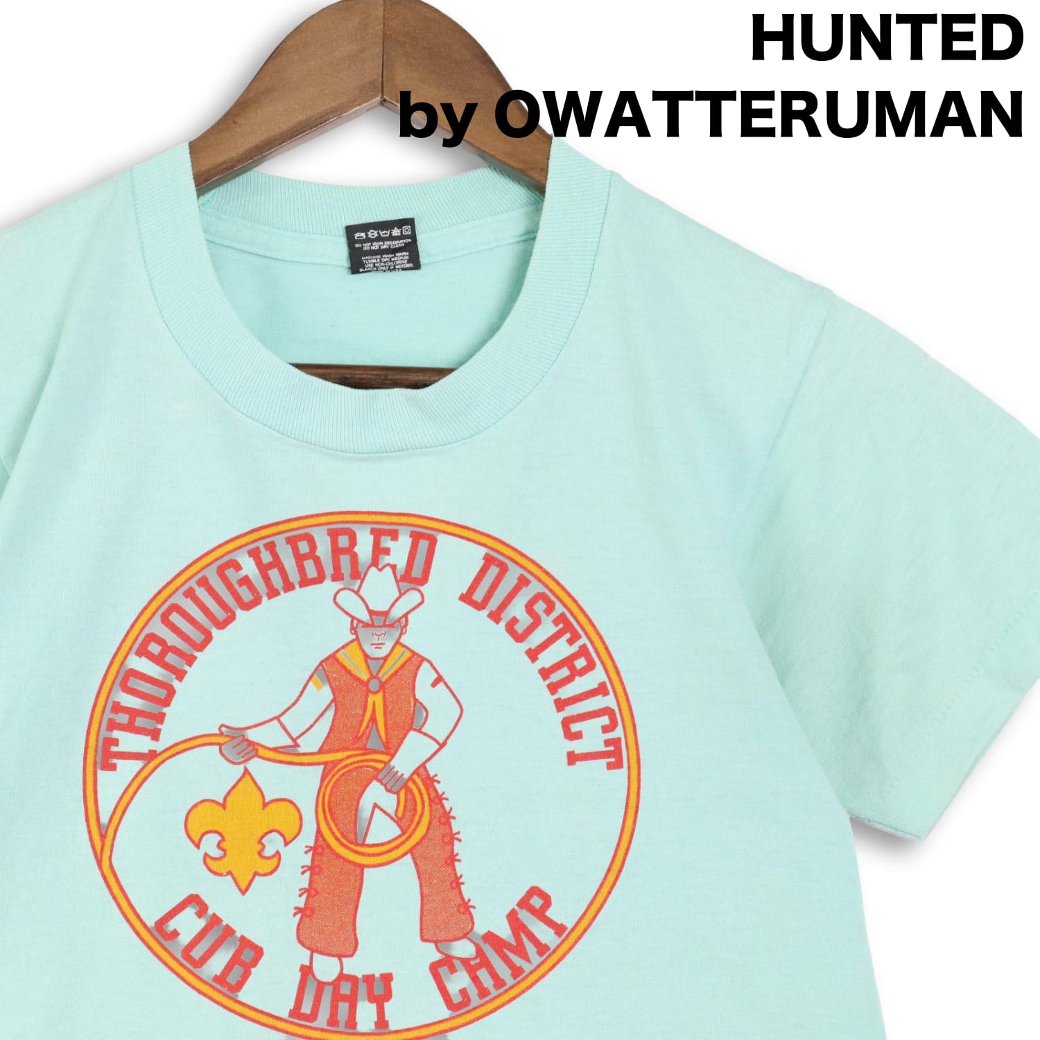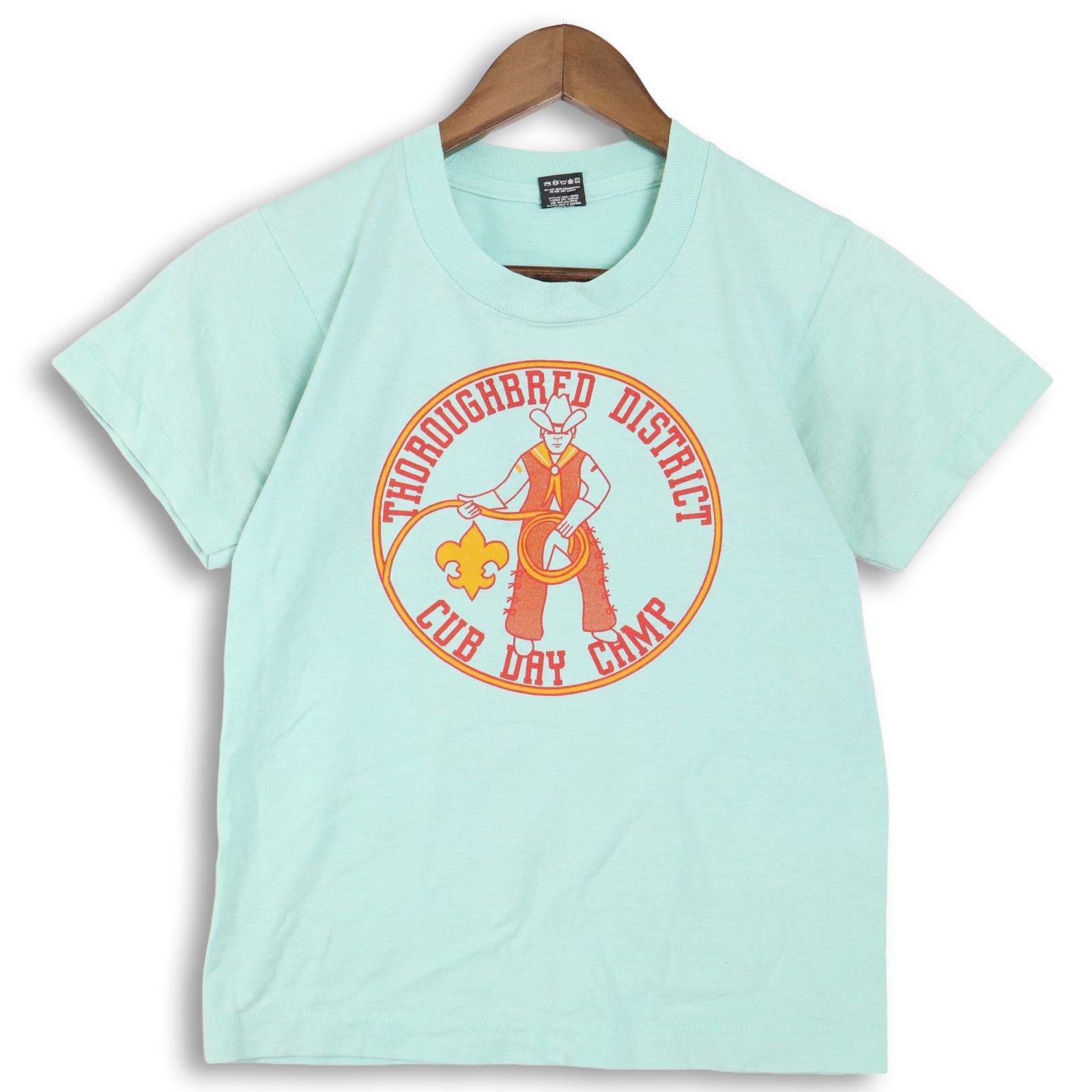 アメリカの地域イベントやカブスカウト系カルチャーを感じさせる一枚。80〜90年代らしいポップな配色とラバープリントの質感は、当時のローカルTらしい空気感。アメリカ製ボディのSCREEN STARS BESTは、ヴィンテージT市場でも安定した人気を誇るタグです。