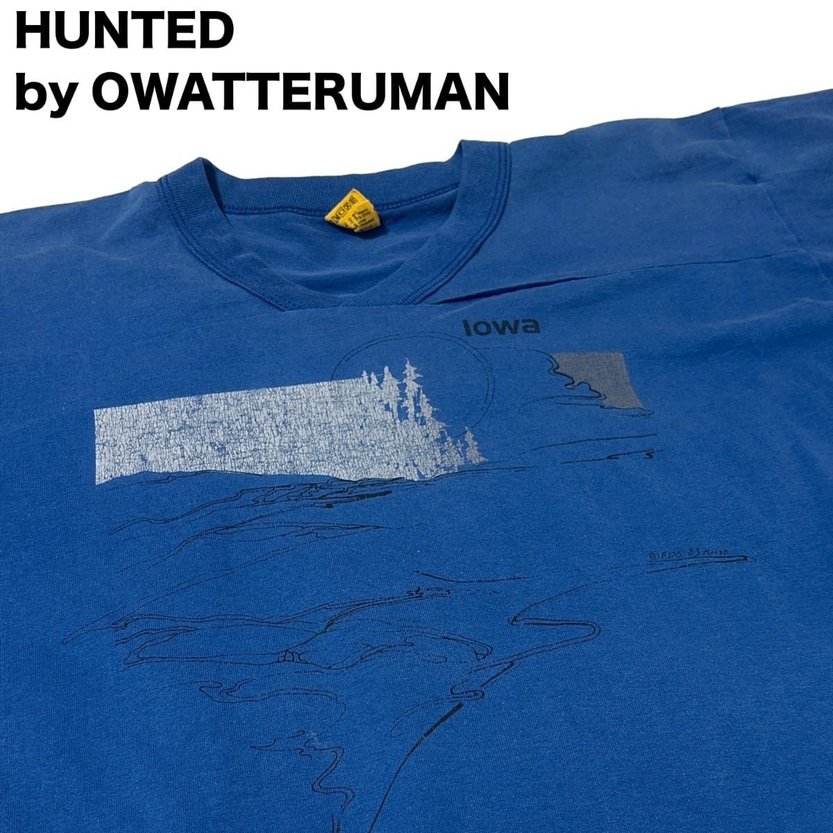 “IOWA”のグラフィックは、風景を抽象的に切り取ったローカル色のあるデザイン。アメリカ中西部の空気感を感じる、素朴で味わい深い一着です。