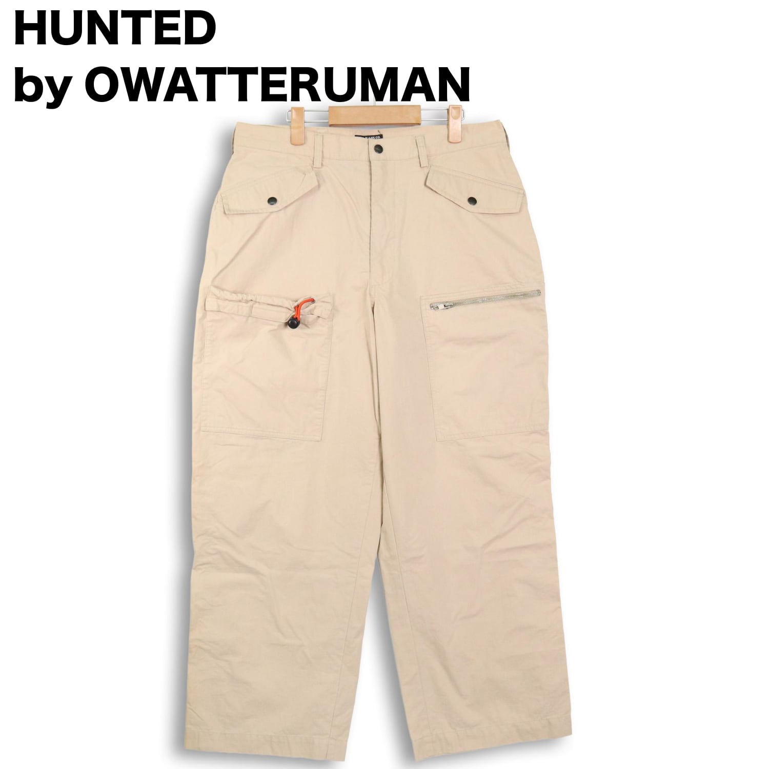 フロントにフラップポケット、サイドには大型カーゴポケットを配置。さらにジップポケットやドローコード付きポケットなど、実用性を重視したディテールが特徴的です。コットン×ナイロン混紡のため、通常のチノよりも軽くハリがあり、ややアウトドア寄りの質感。ストンと落ちるワイド気味のストレートシルエットで、無骨さと上品さを併せ持つバランスです。
