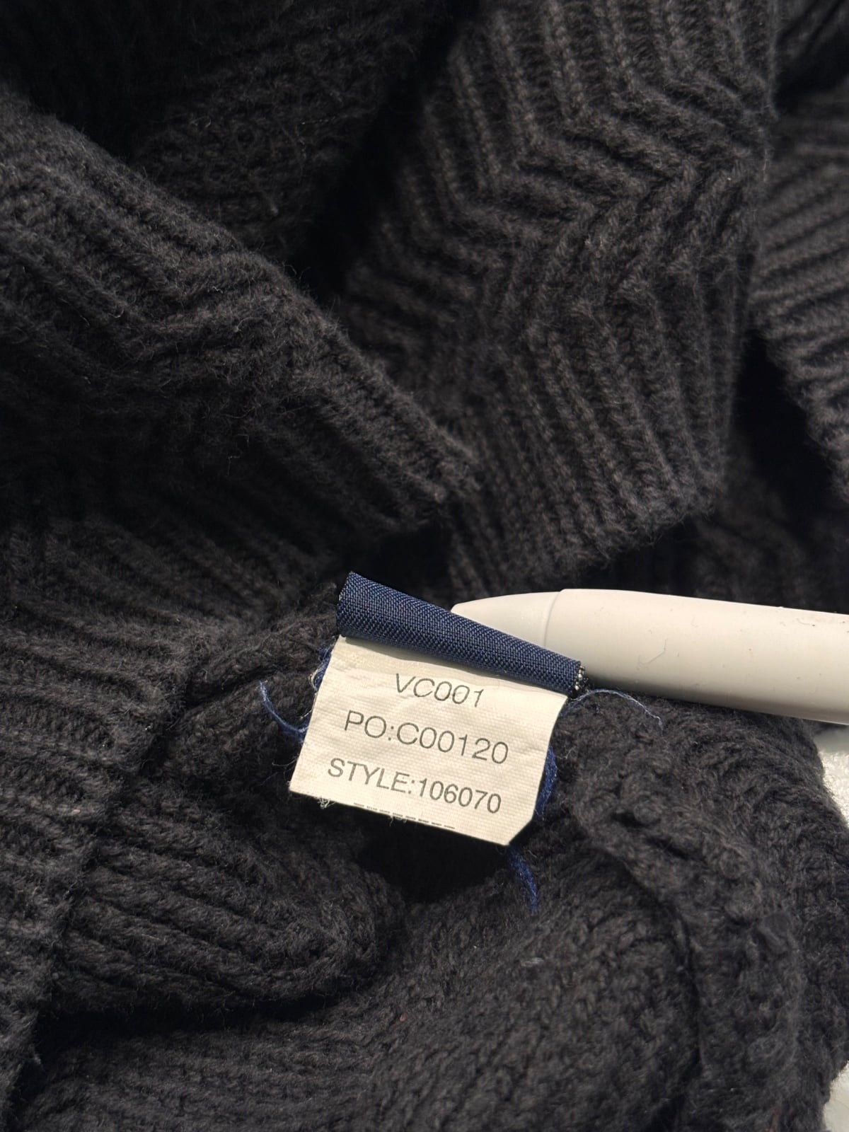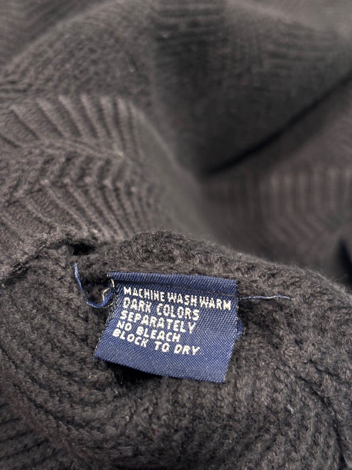 これらのタグ構成と生産地から、2000年代前後の量産期アイテムと推定しており、手法表示の"HAND FRAMED"は編みの仕上げを意識したライン名として使われることが多い点が根拠です。