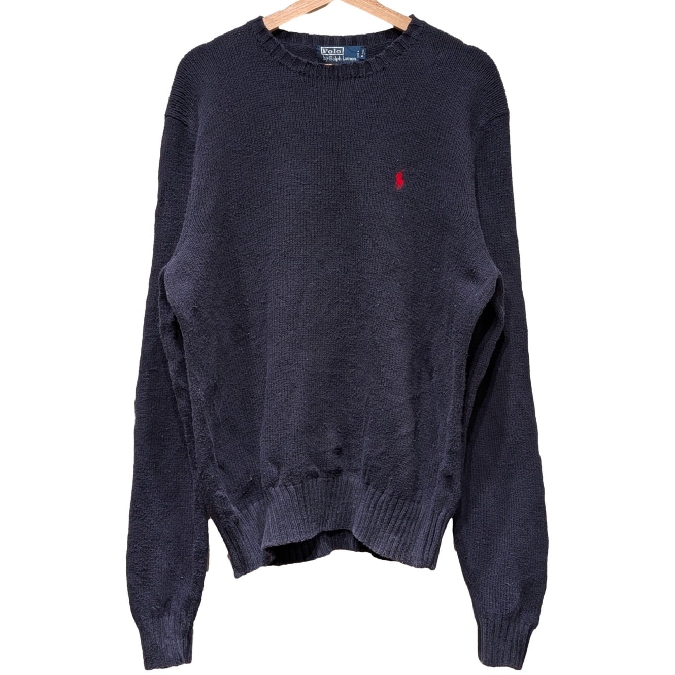 この個体はネイビーベースの織りネームに「Polo by Ralph Lauren」と入る古めのラベル、かつタグにMADE IN CHINA表記があることから、量産期の90s頃と推定。