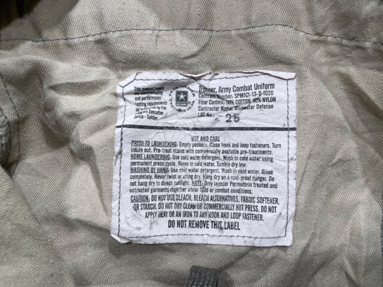 ・ブランド:U.S. Army(Contractor表記あり: Bluewater Defense / Insect Shield)