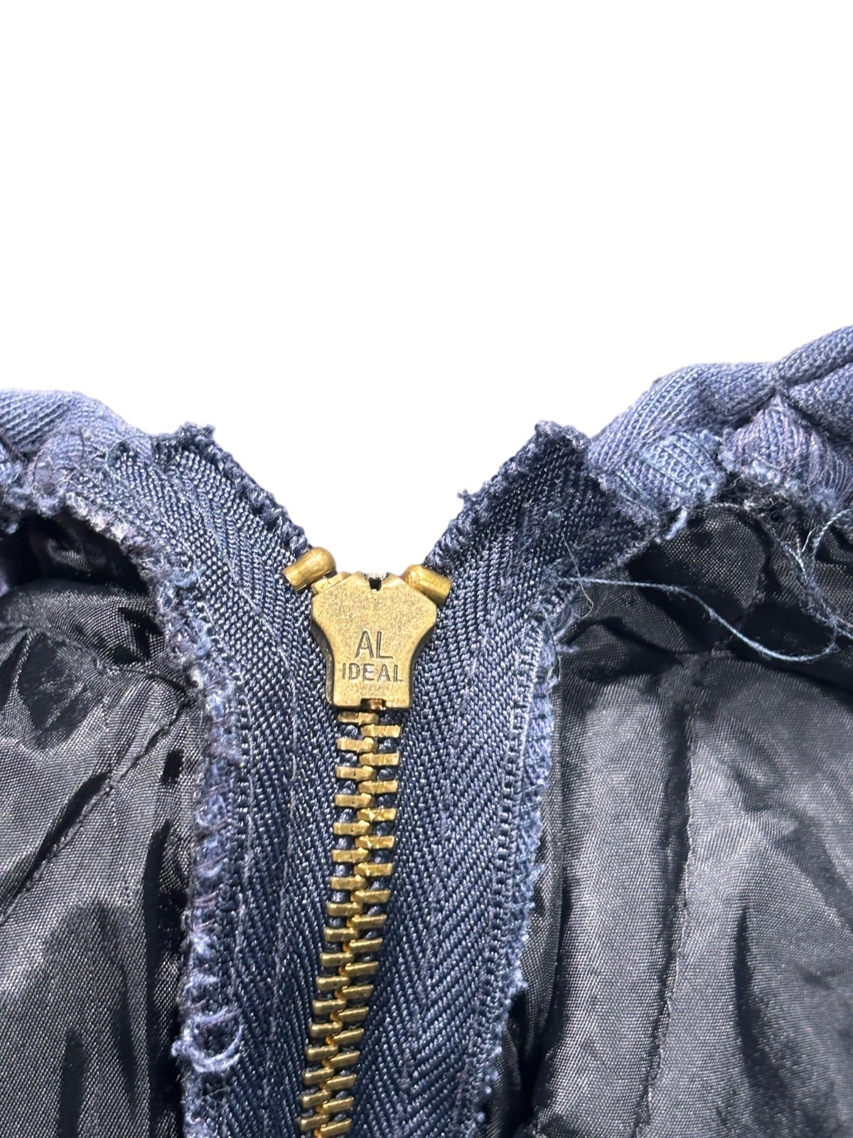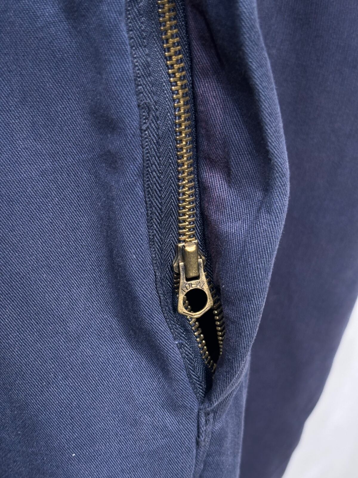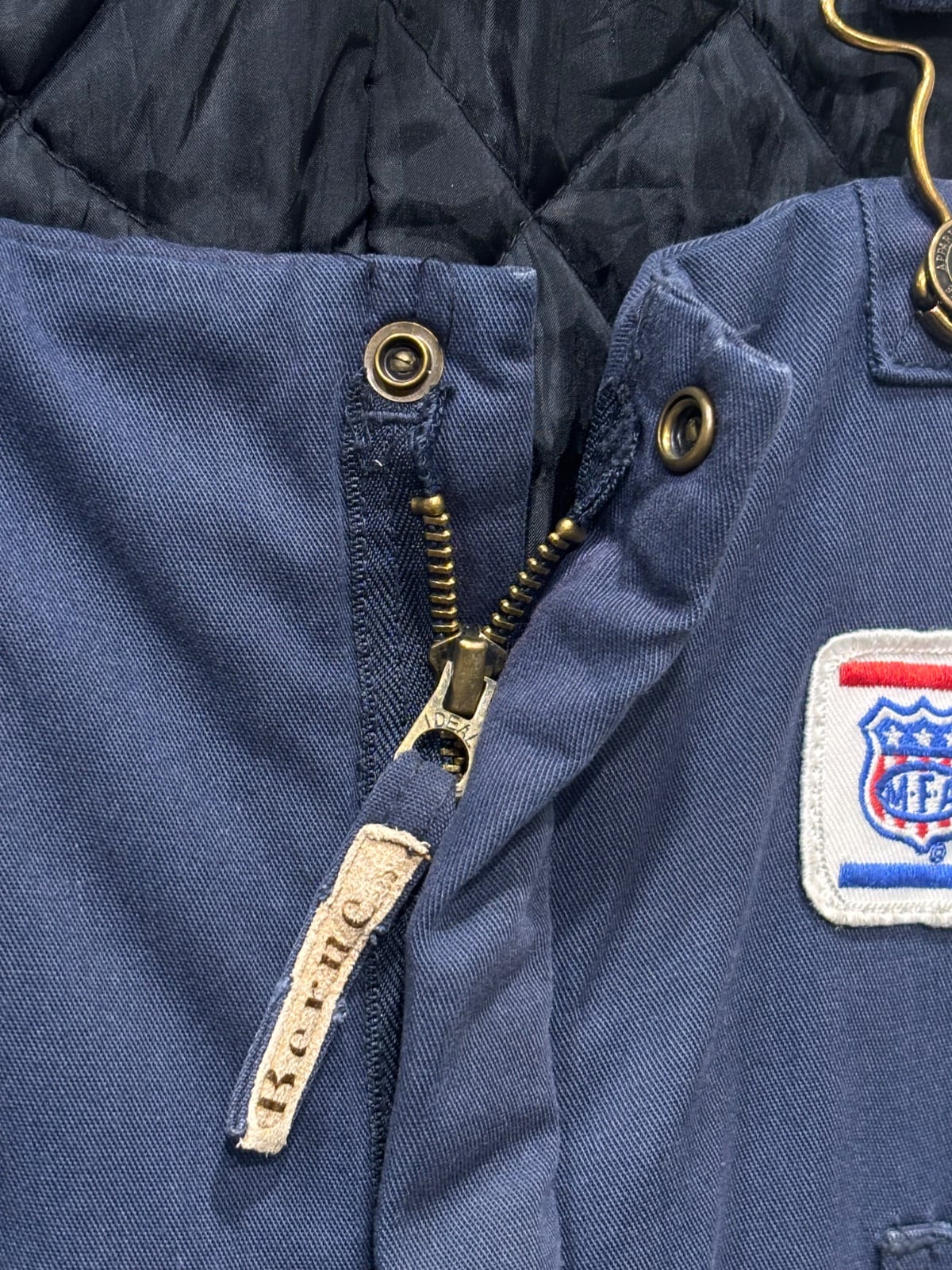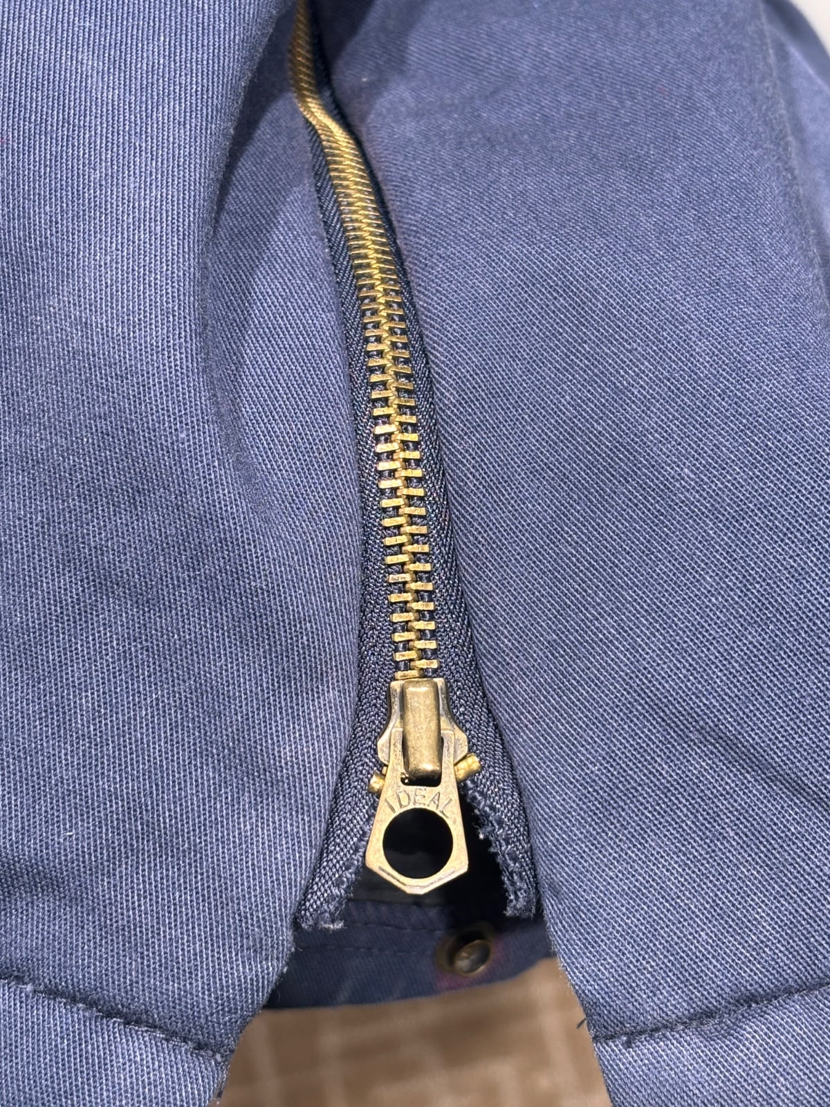 IDEAL刻印の金属ジップやキルティング裏地といった仕様は90s〜のワークジャケット/オーバーオールに見られる組み合わせです。