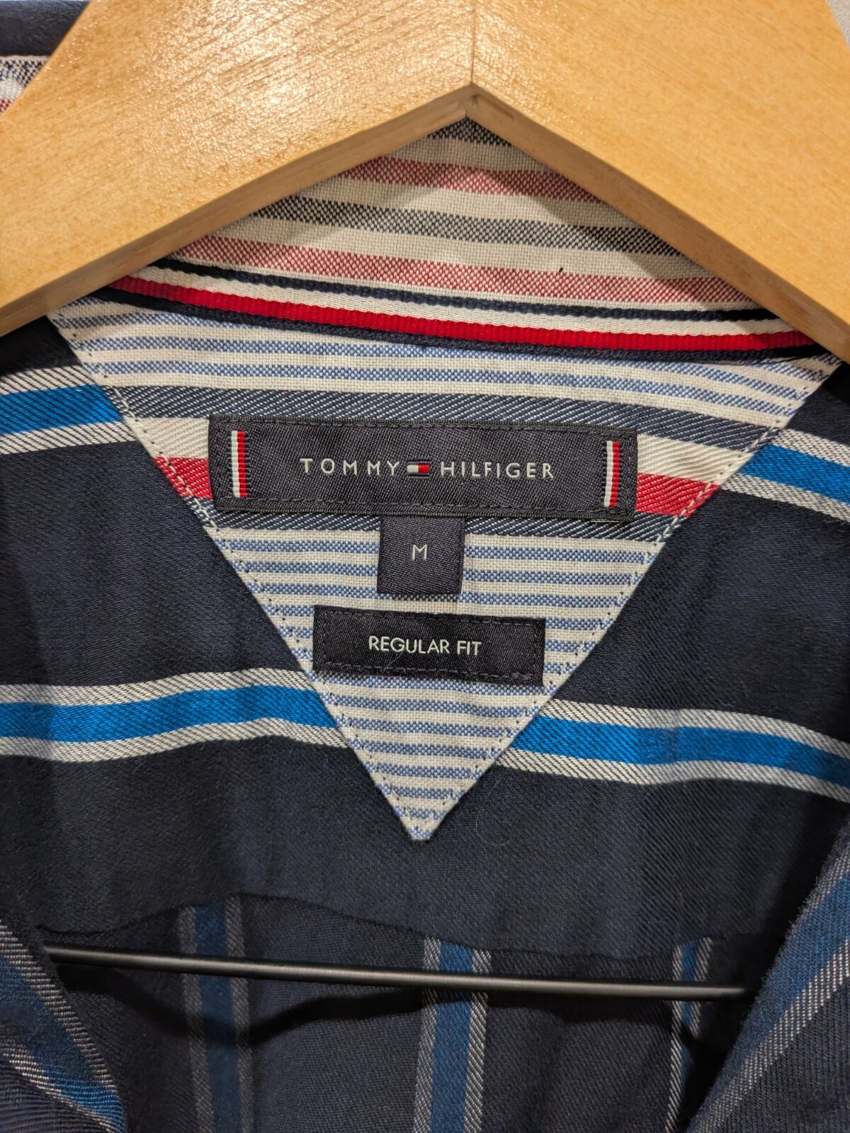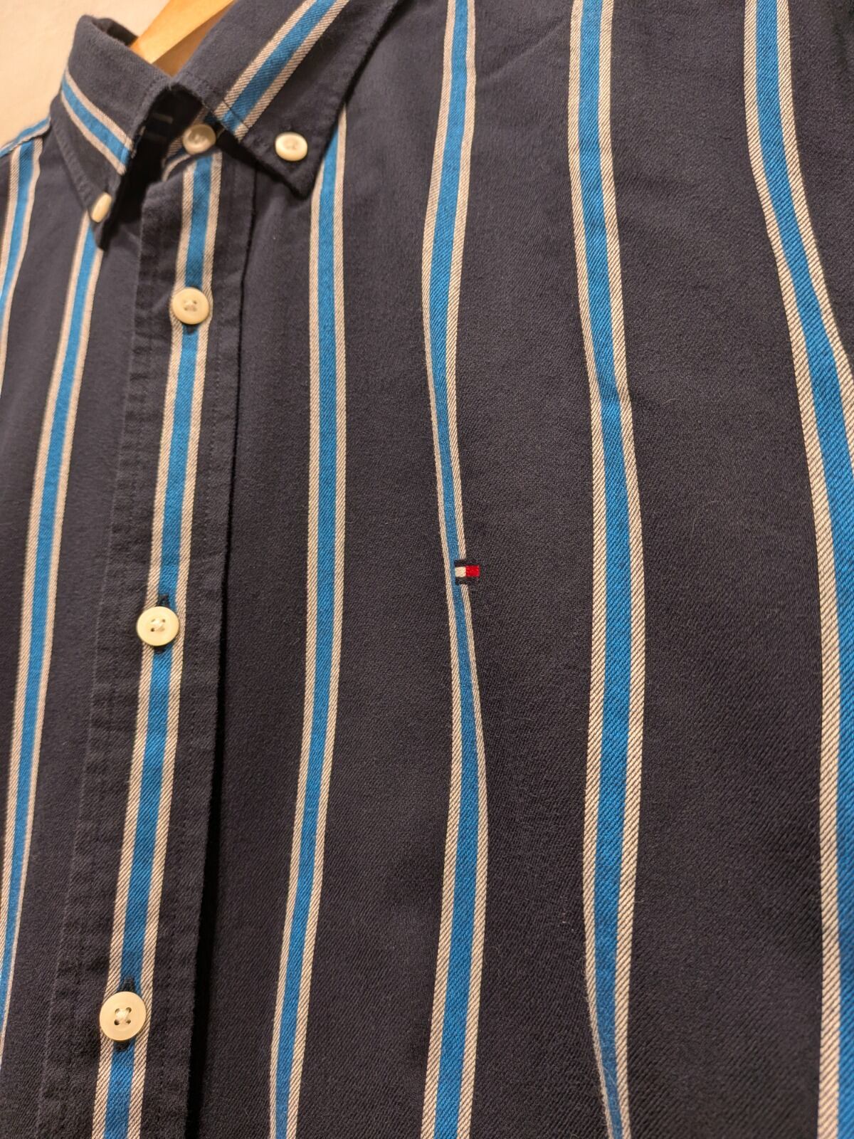タグにある「REGULAR FIT」との表記、80/20のコットン×ポリエステル混紡・MADE IN CHINA表記、そしてラベルデザイン(黒ベースの織りタグ)は、2000年代以降の量産ラインに見られる仕様であることから、推定で00sと判断しています。