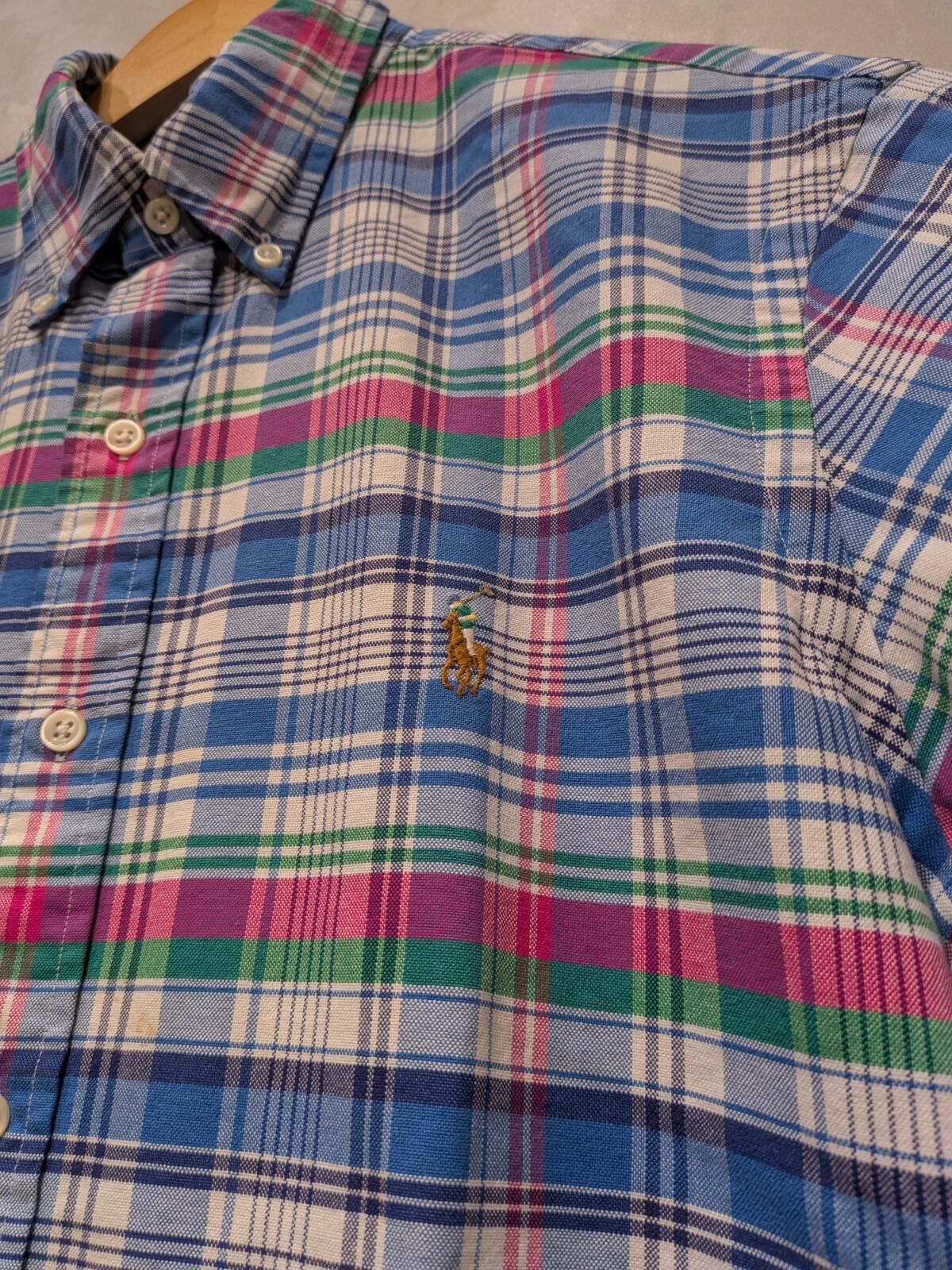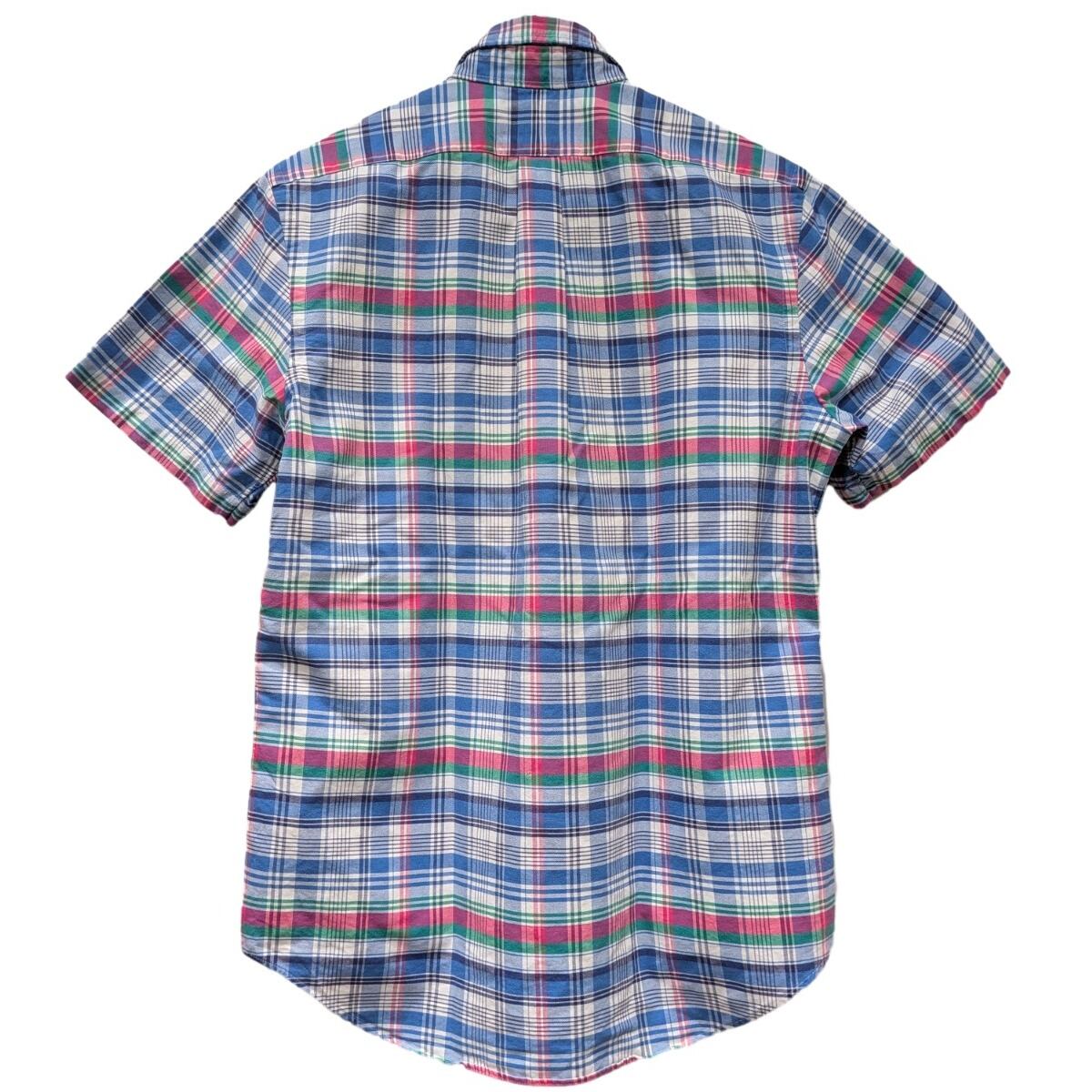 短めの袖丈にボタンダウン、マドラス風の明るめチェック──こうしたシャツは90sから定着したプレッピースタイルの定番です。