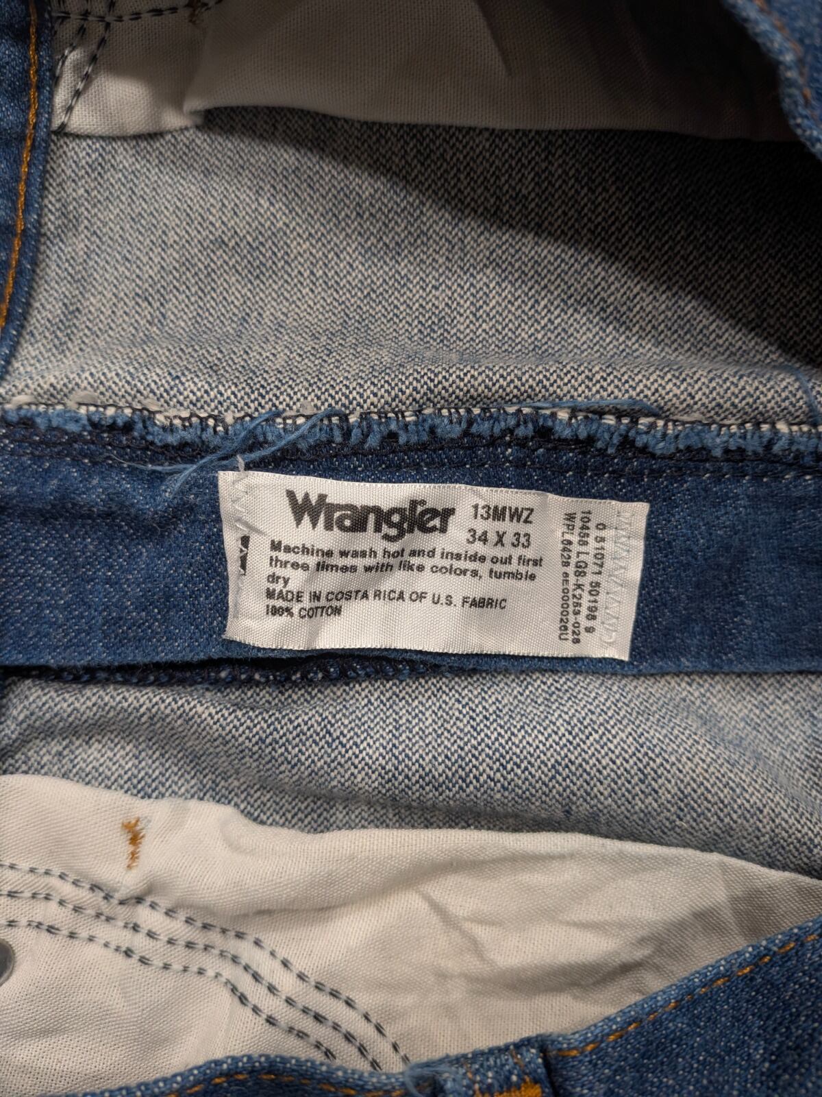 タグに入る"13MWZ"表記と"MADE IN COSTA RICA OF U.S. FABRIC"の記載、さらにYKKのUSA刻印ジッパー等のディテールから、工場生産が海外へ移行した90s頃の個体と推定されます。