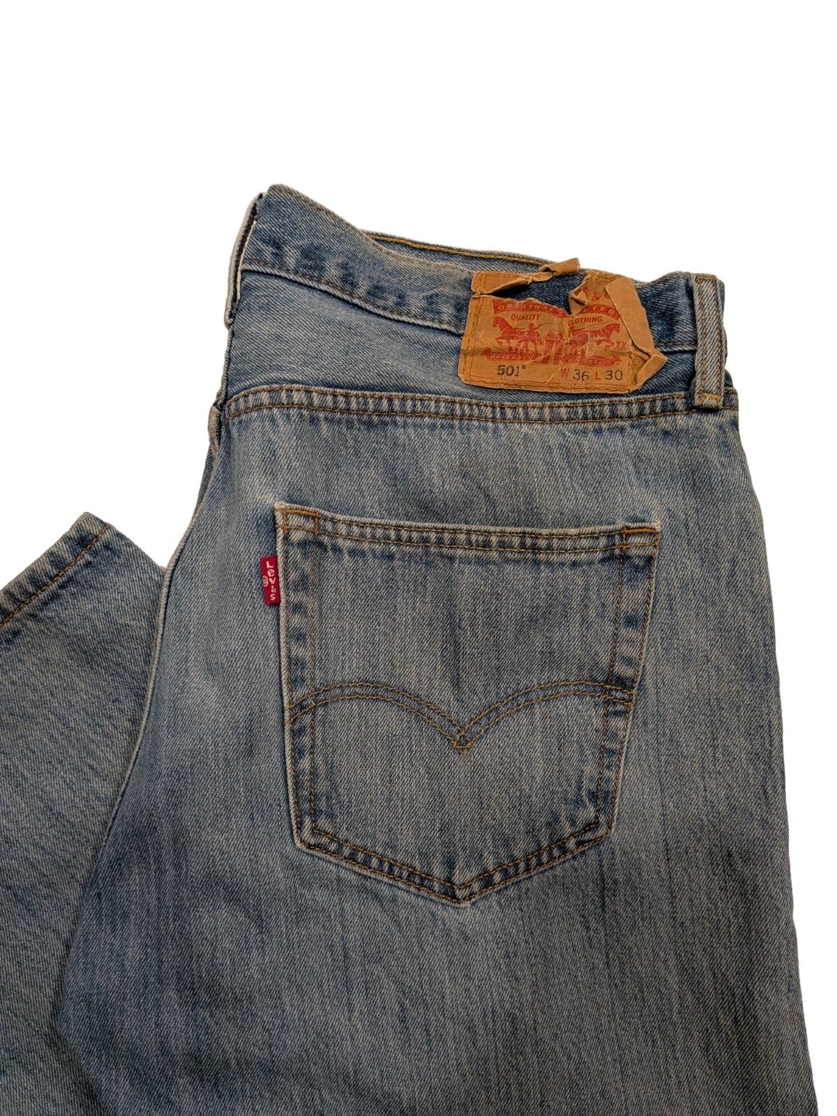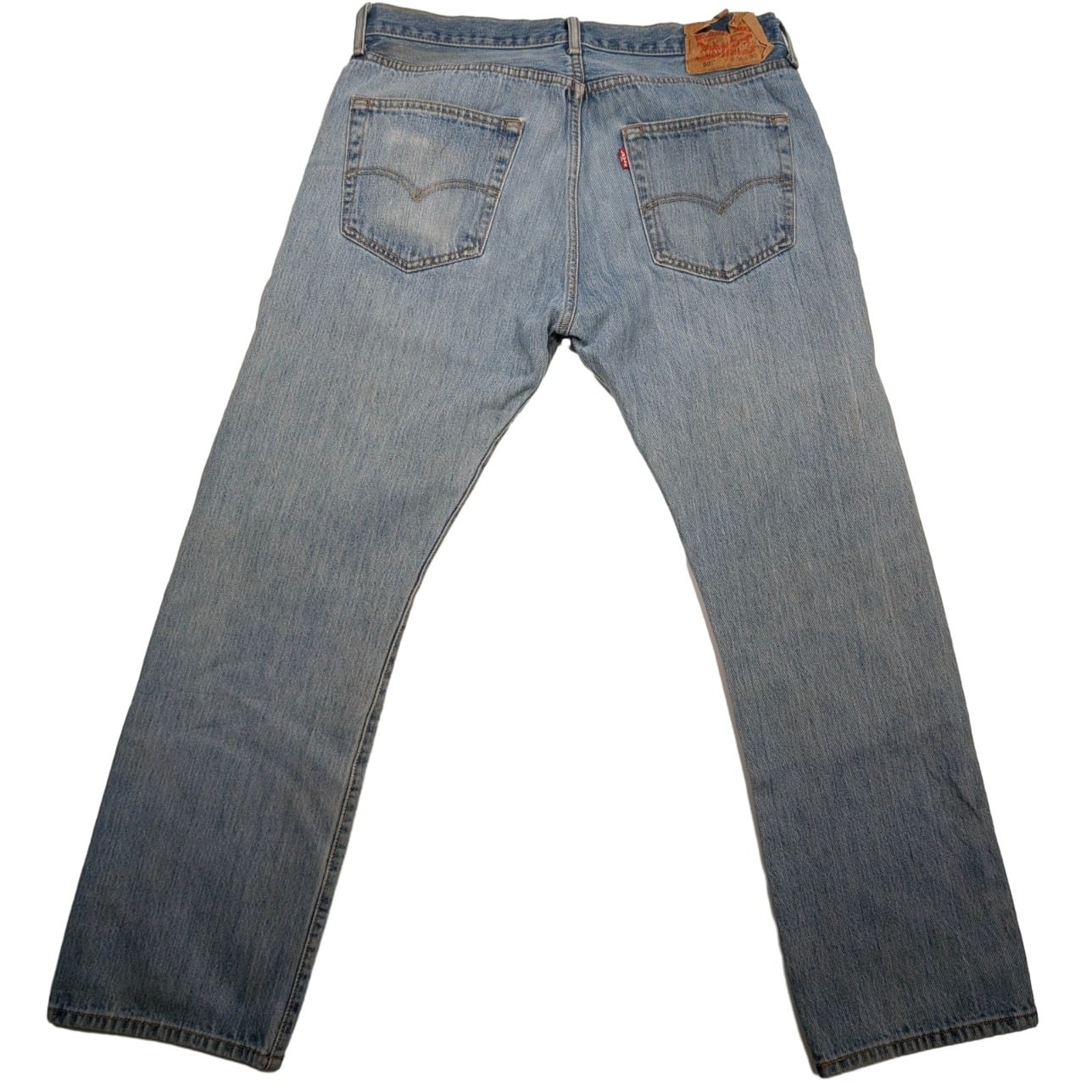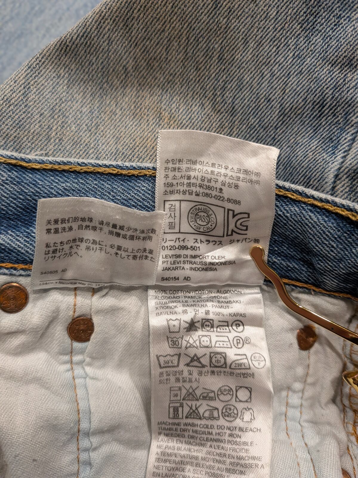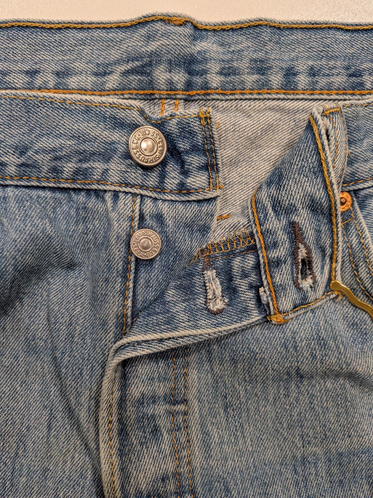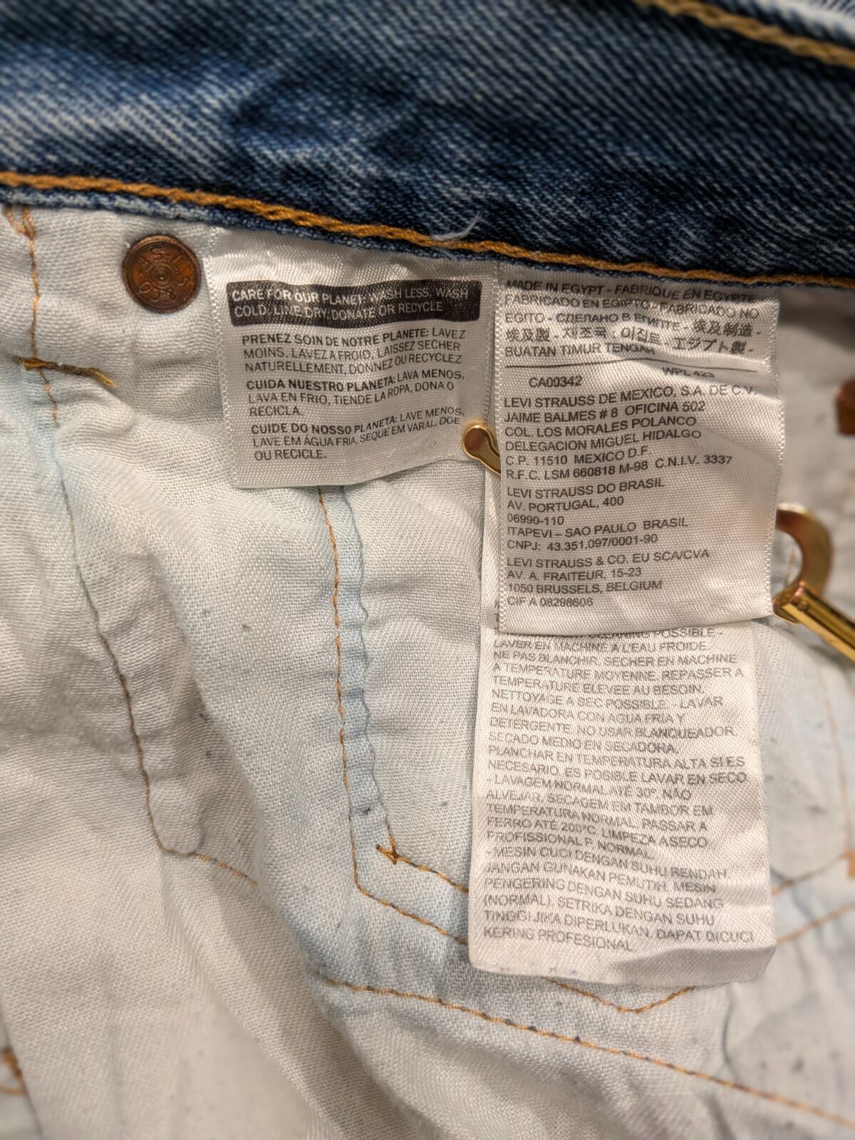 Levi'sの定番モデル「501」はワークウェア由来で、世代を超えてカジュアルの基本になっているジーンズ。この個体はバックパッチに"501"の表記と赤タブ、ボタンフライが確認でき、本来の501のディテールを備えています。内側のケアタグに"MADE IN EGYPT"の表記と多言語の洗濯表示があり、量産期の2000年代以降の生産と推定できる点が根拠です(刻印やタグ表記に基づく推定)。
