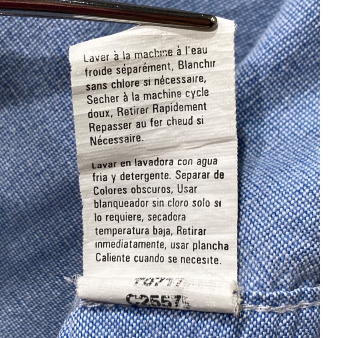 CHAPSのボタンダウンシャツは、プレッピーテイストとカジュアルウェアの中間に位置する定番アイテム。今回の個体はネームに「CHAPS EST.1978」と入り、内側タグに100% COTTON/MADE IN INDIAの表記、さらに小さなタグに「C2557」「409/2XL」といったコードが確認できるため、90s〜00s以降の量産ラインで作られたプロダクトと推定できる(推定はタグ表記に基づく)。胸ポケットのリース状刺繍やボタンダウン仕様など、アメリカントラッド寄りのデザインが押さえられた一着。