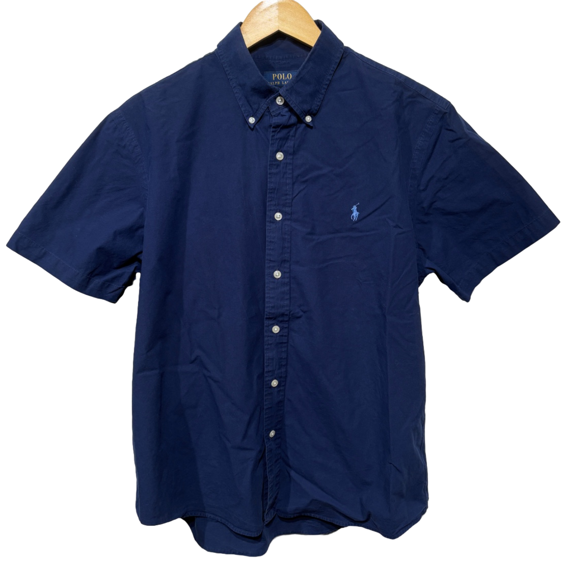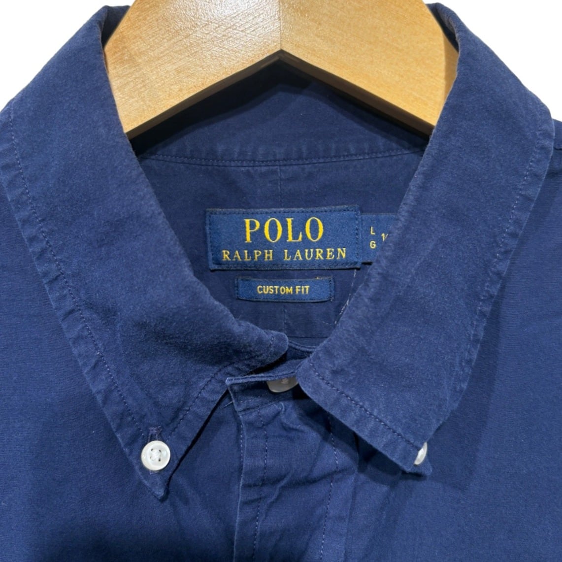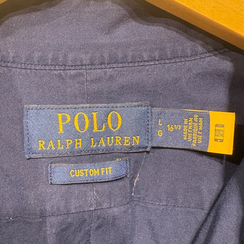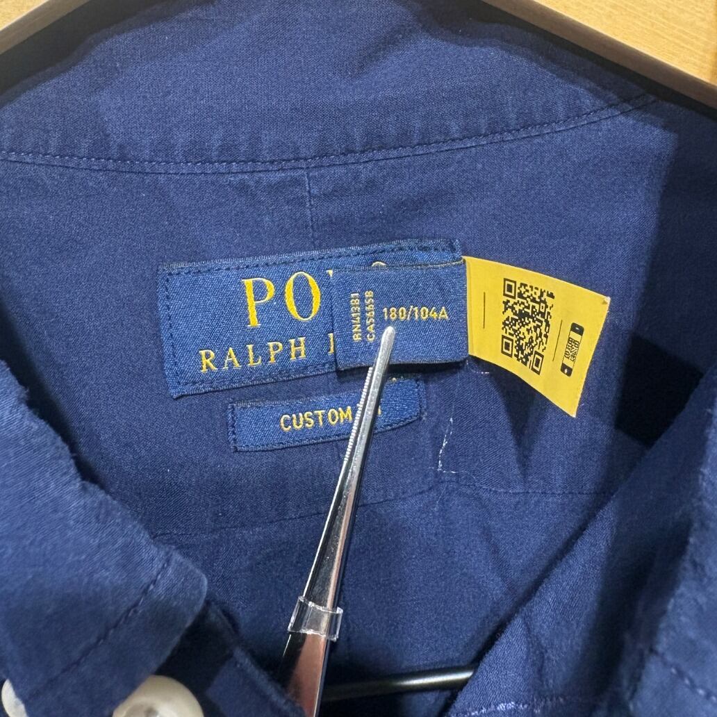ラルフローレンの定番ボタンダウンを夏向けに短袖で落とし込んだ一着。胸のポニーロゴ刺繍やボタンダウン衿といったディテールはアイビー/プレップ由来の定番デザインで、街使いからきれいめカジュアルまで幅広く使える仕様。タグの配色(ネイビーボディにイエローロゴ)と「CUSTOM FIT」表記、さらに生産国がMade in Vietnamである点から、製造時期は2000年代以降の量産期プロダクトと推定してます(単一の根拠のみでの断定は避けます)。