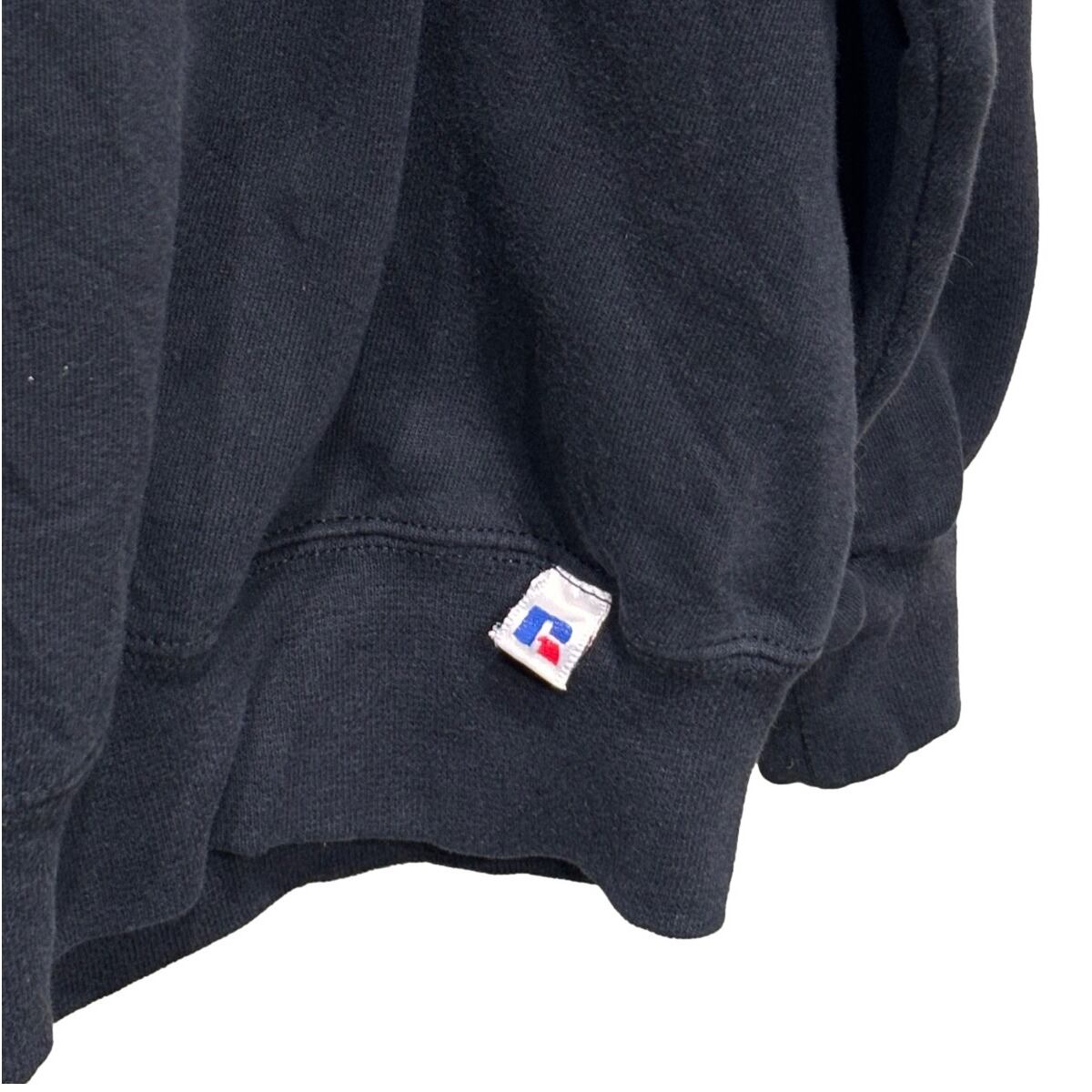 首元にVガゼット、裾にRussellの小さなピスネーム付きといったアスレチックブランドらしい作り。
