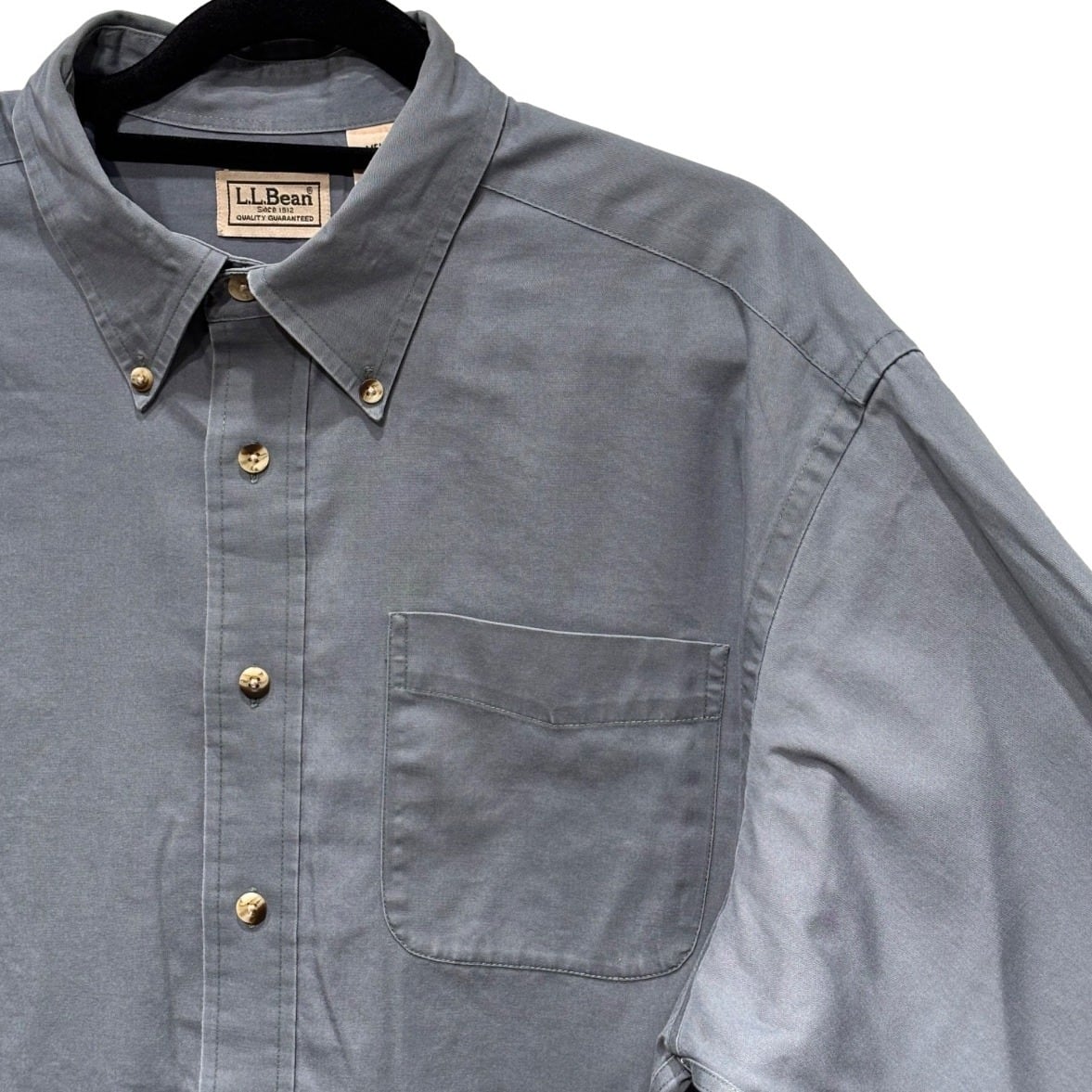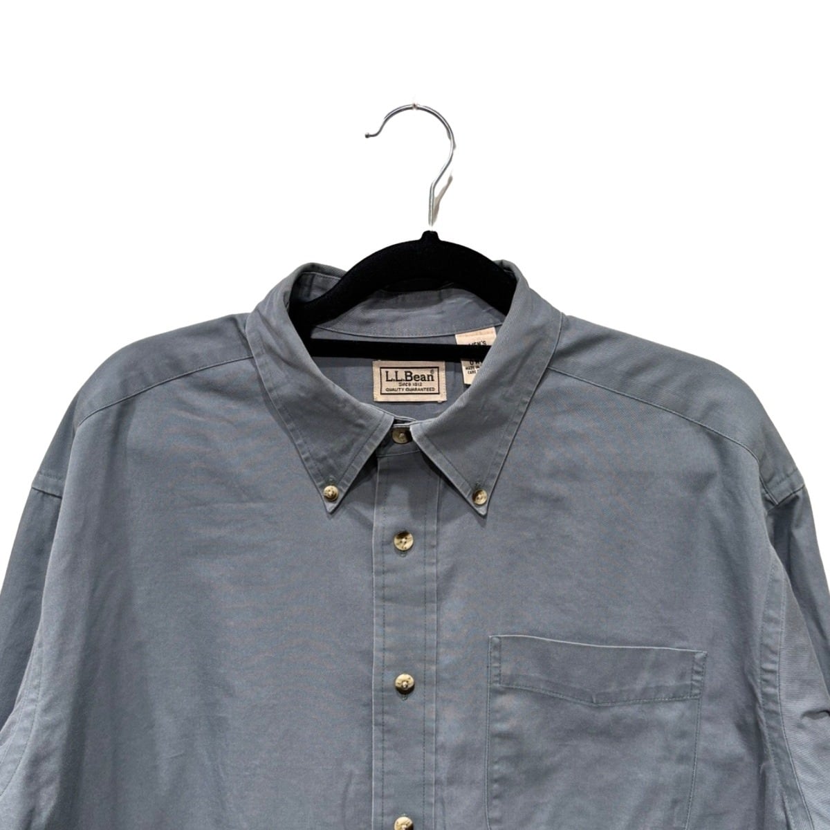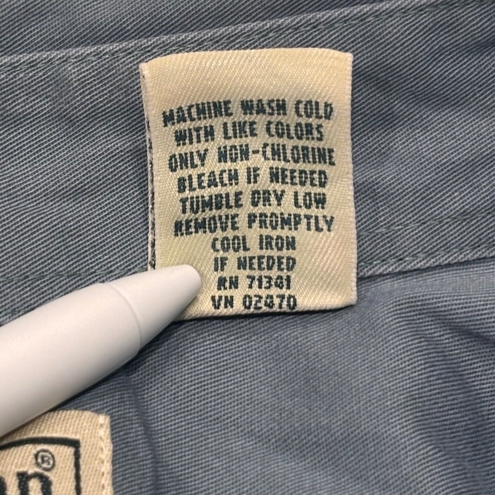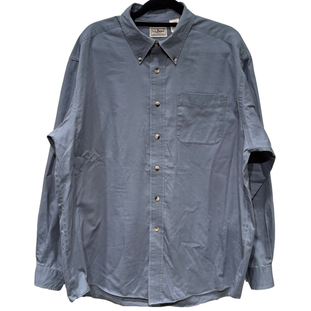 ボタンダウンシャツはワーク/アイビーの中間に位置するユーティリティウェアとして広く使われてきたアイテム。今回の個体はタグ表記に「MEN'S 100% COTTON」「MADE IN SRI LANKA」とあること、織りネームやケア表示のフォントと構成から、量産期に近い00s頃の製造と推定できる。コットンの中肉生地で洗いを経たような柔らかな風合いがあり、カジュアルなレイヤードやワークスタイルに馴染む一着。推定年代の根拠はタグの表記・生産国表記に基づく判断で、断定はできない点は留意のこと。